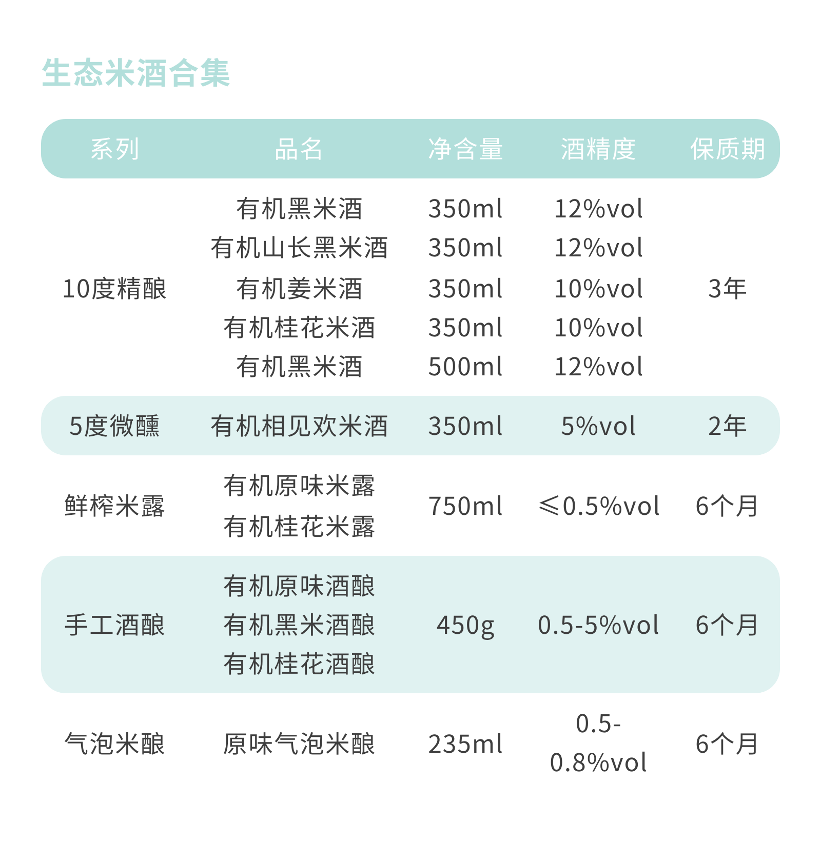 有机酒酿(醪糟) Organic wine 生产者:许学超 产地:安徽省黄山市黟县碧阳镇南屏村 生产许可证:SC11534102305187 种植方式:自产有机种植糯米,种植过程完全不使用农药化肥除草剂,零化肥、零农药、零除草剂; 加工方式:自然发酵;非遗酿酒师三十年手工艺;蒸米后陶坛陈养;不添加任何化学添加剂,防腐剂。 储存方式:阴凉干燥处,避光保存。 保质期:6个月 温馨提示: 1,醪糟已灭活,青瓶底沉淀物为大米原浆,属于正常现象,可以放心饮用; 2,过量饮酒,有害健康,驾驶前请谨慎饮用,孕妇与儿童不宜饮酒。 3,如不容易开盖,可用勺子起一下盖子,听到气体放出来的声音然后一拧就开了。 4,采用机器碾米,每批次的麸皮保留程度不一,产出的醪糟颜色也会有差异,属于批次加工差异的正常现象哟 |