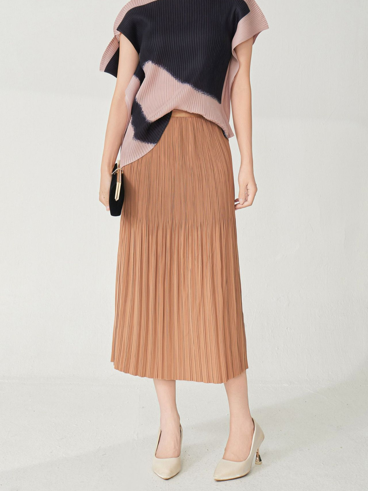 「自」全新升级【铂金会员220/天猫289/差价69】(53923)洛诗琳高级感褶皱半身裙2025夏季松紧腰a字中长款气质百褶裙