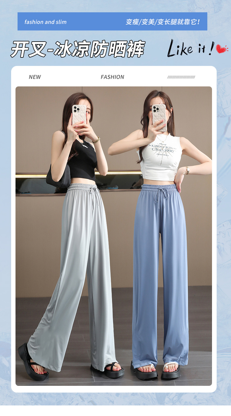 【好看百搭,冰丝顺滑凉感满分!】冰丝阔腿裤防晒遮肉防蚊显高休闲裤女夏季薄款,宽松直筒凉凉防蚊小个子系带防晒裤-lm!