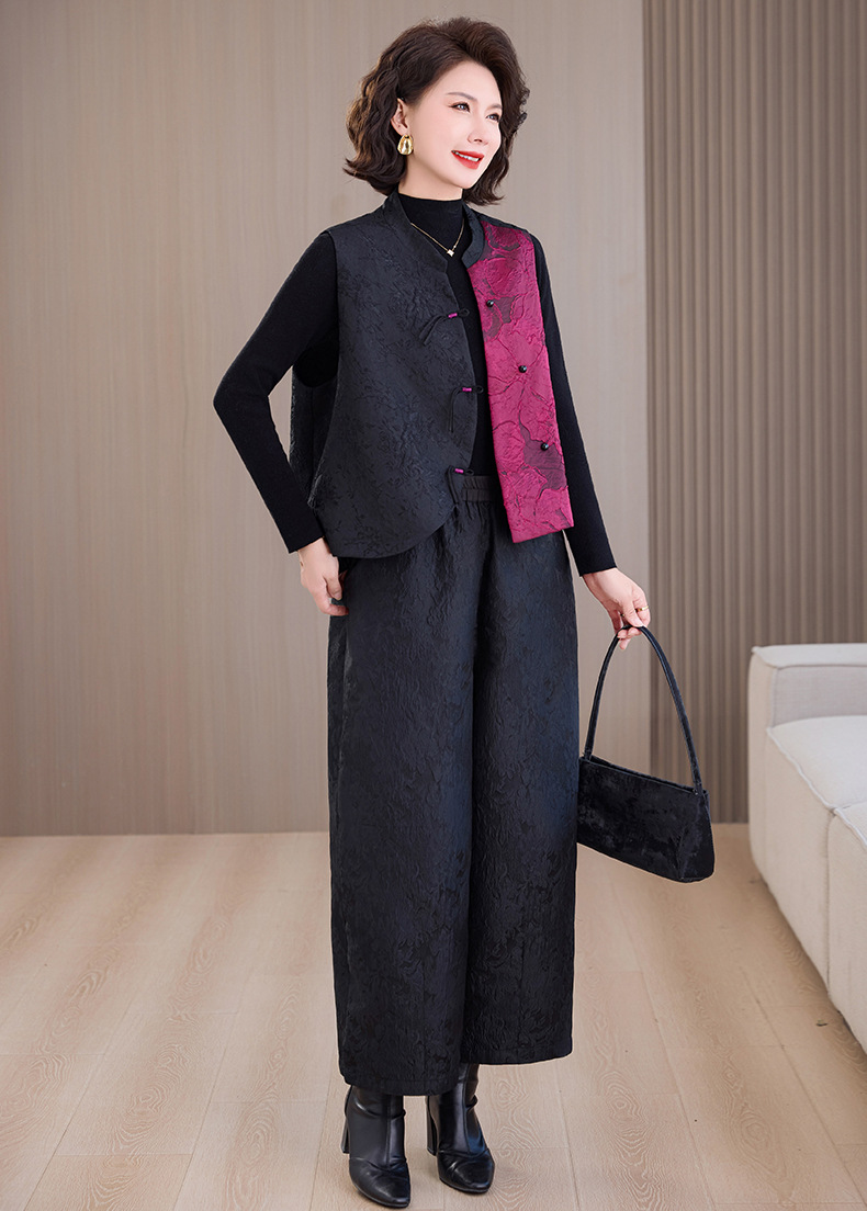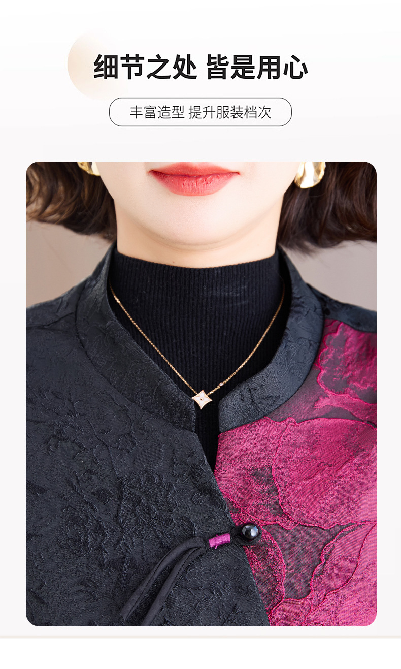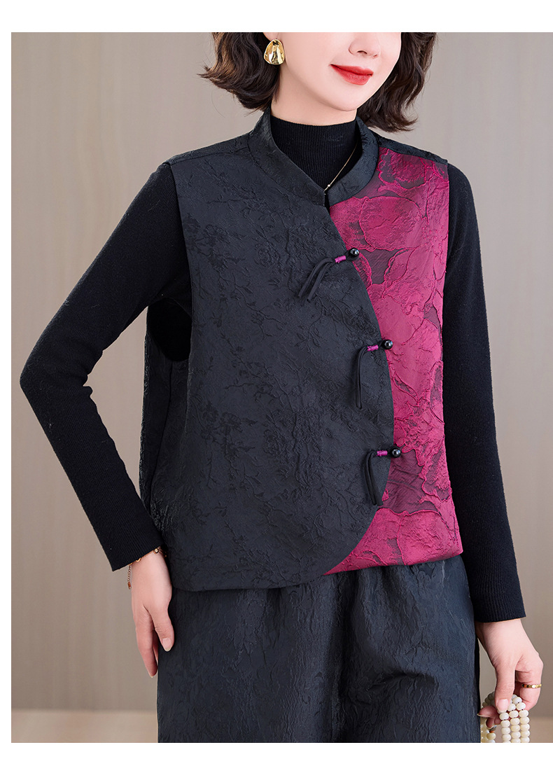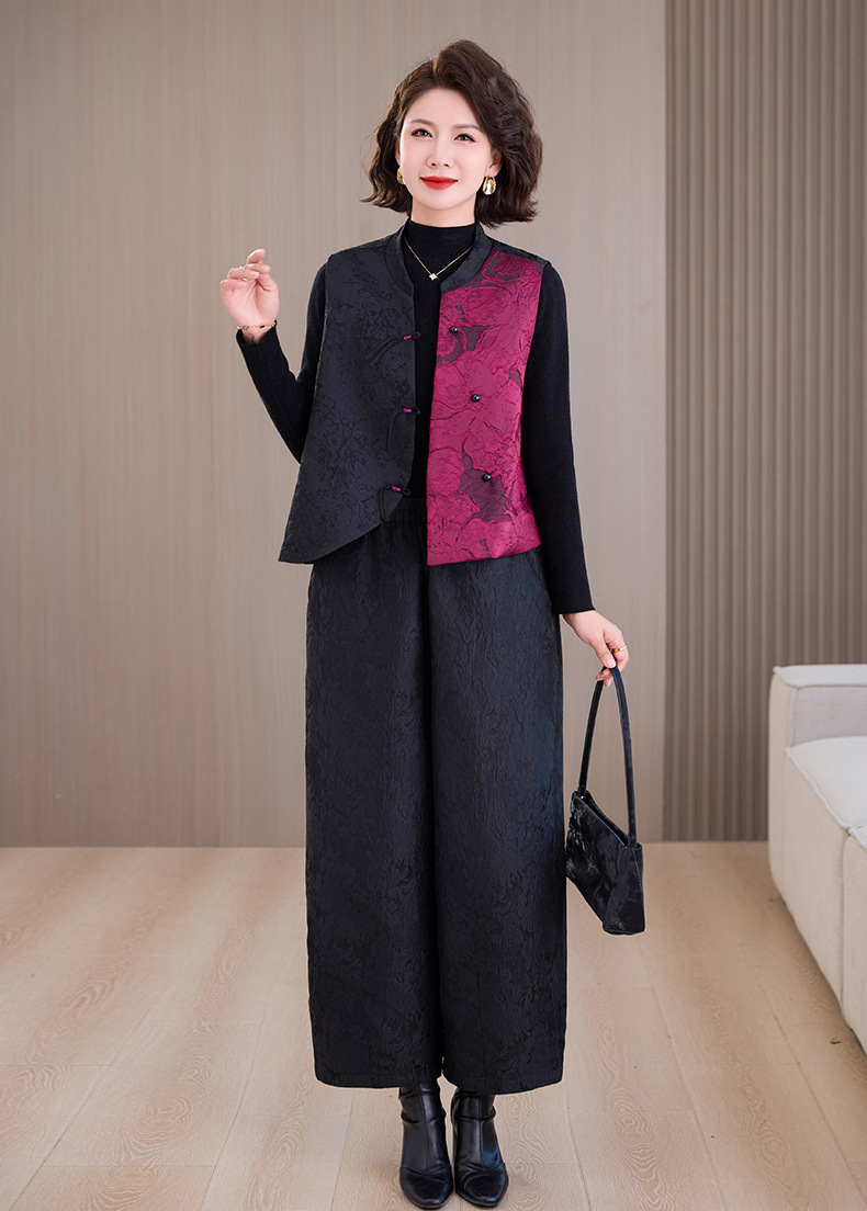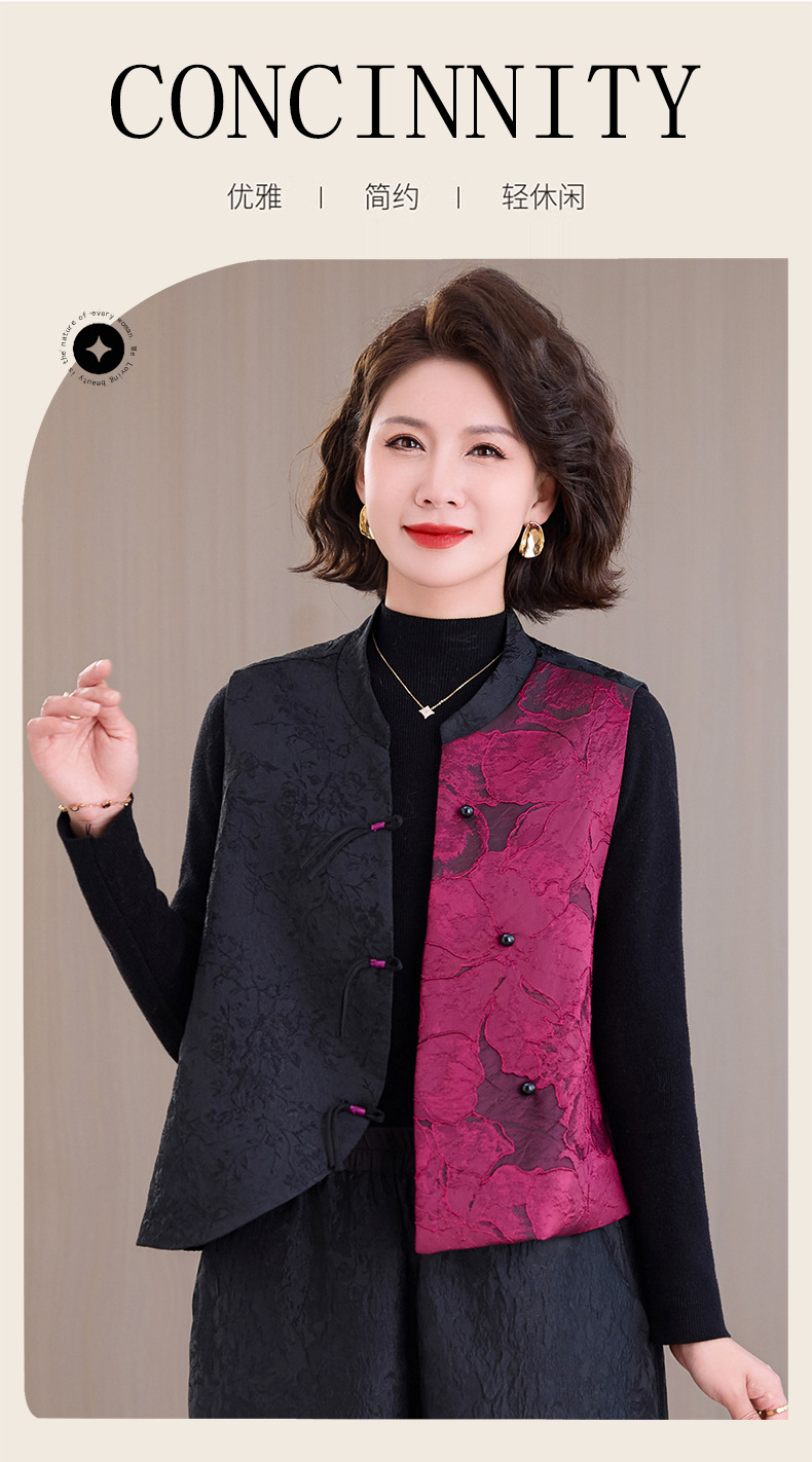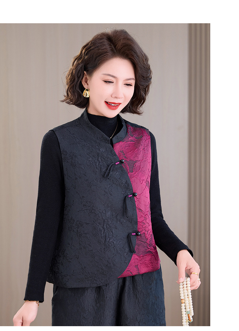 中年妈妈复古提花秋冬新款马甲背心女士立领改良斜襟盘扣上衣套装