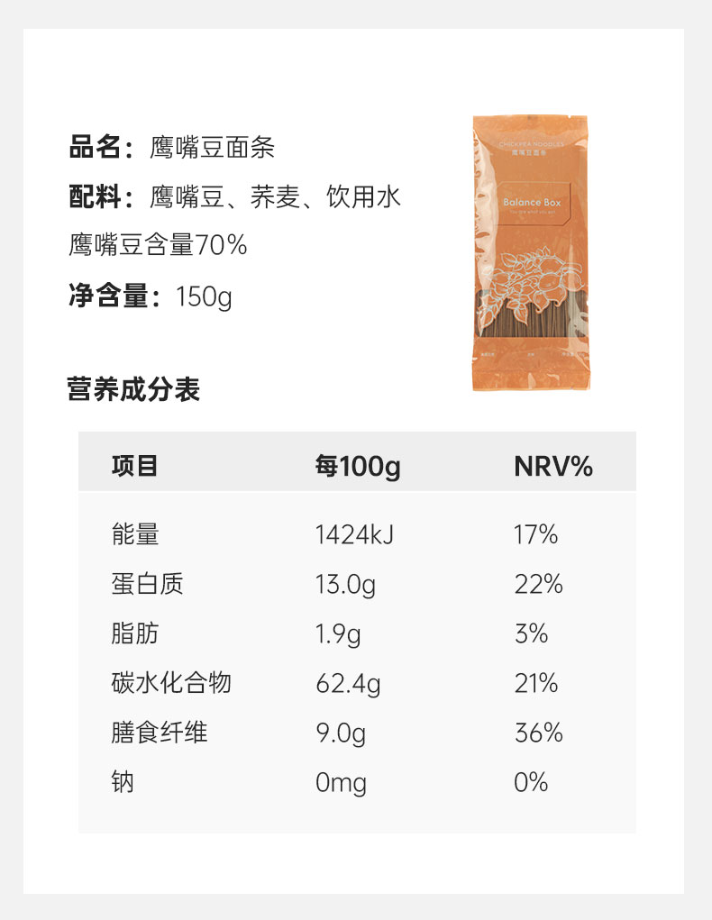 【欧米甄选—均衡小站】鹰嘴豆荞麦面条150g*4袋-会员专享