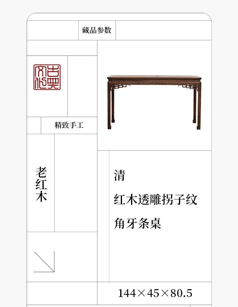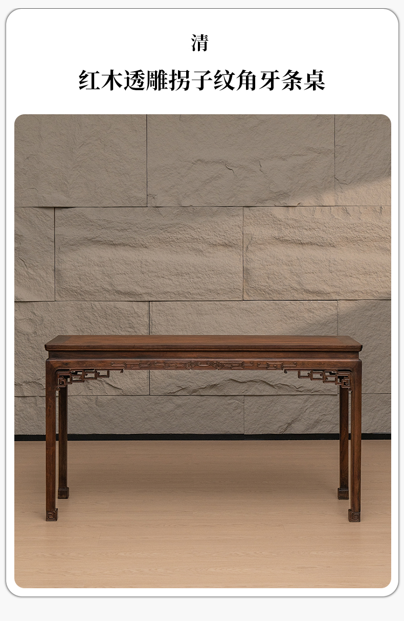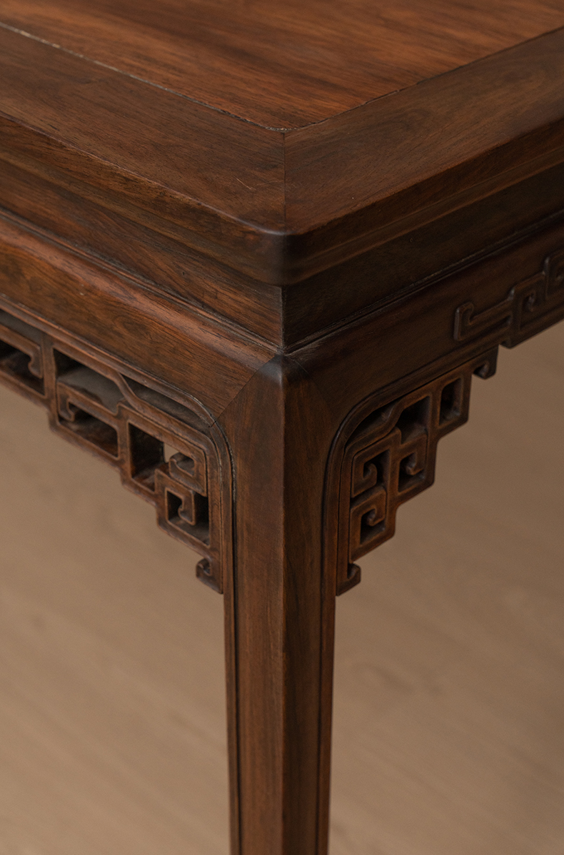 清 红木透雕拐子纹角牙条桌
