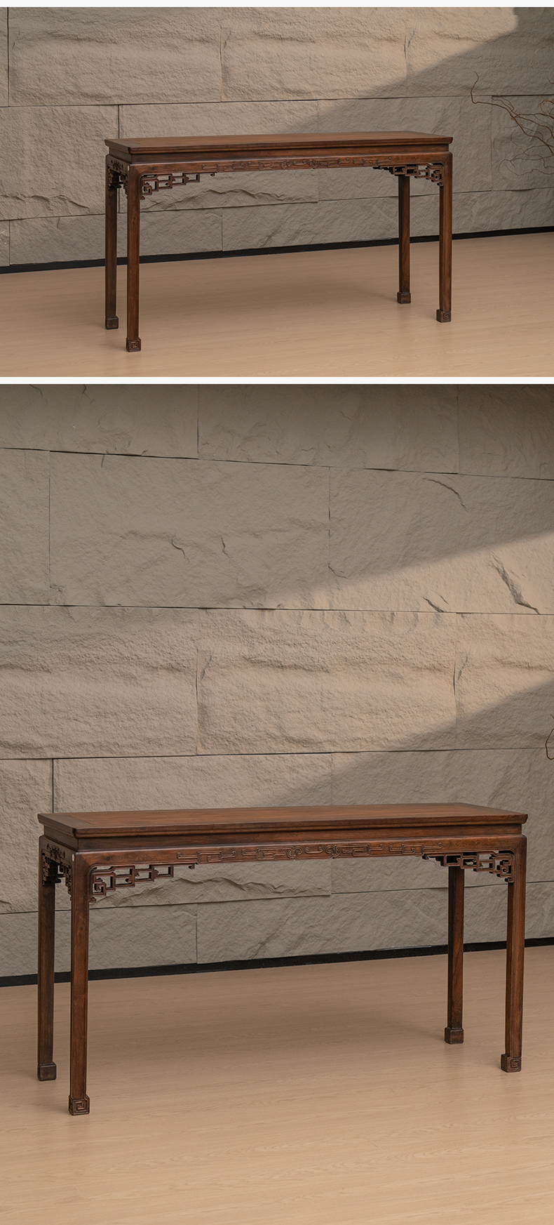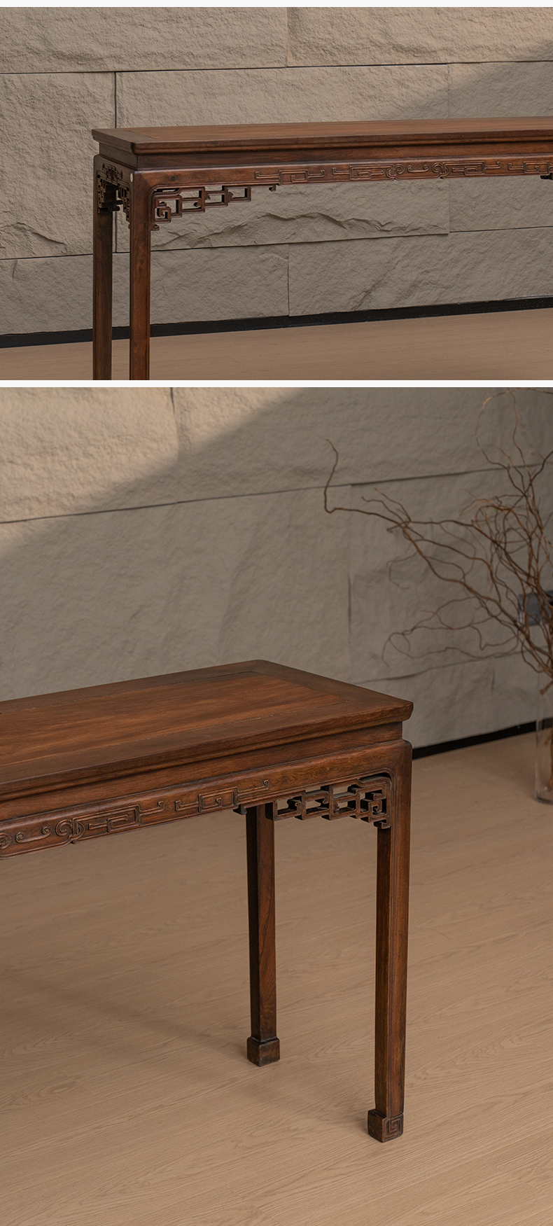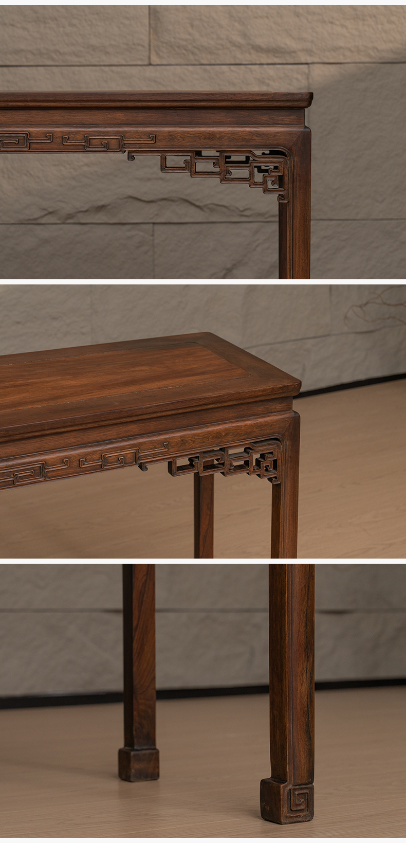 清 红木透雕拐子纹角牙条桌