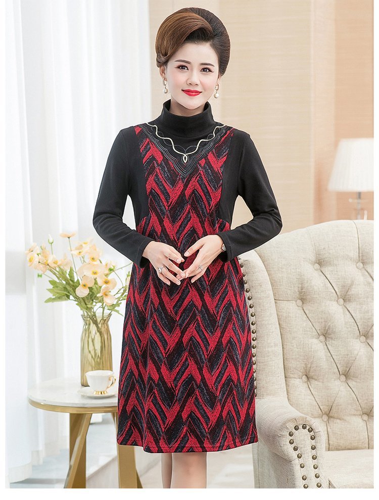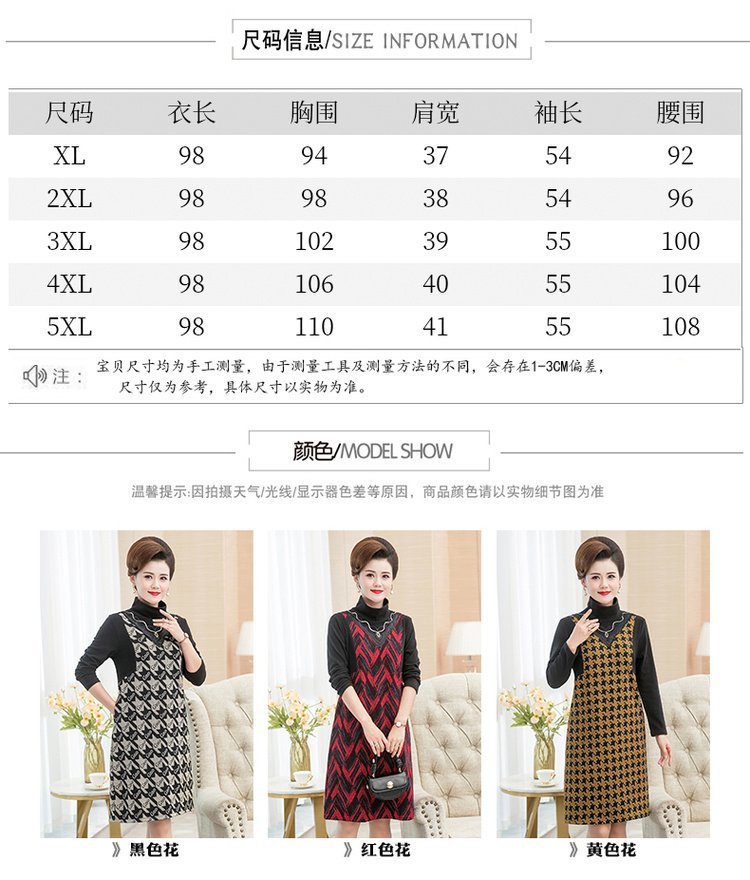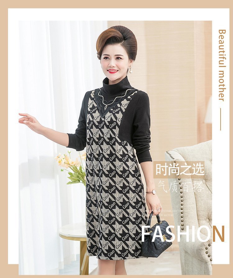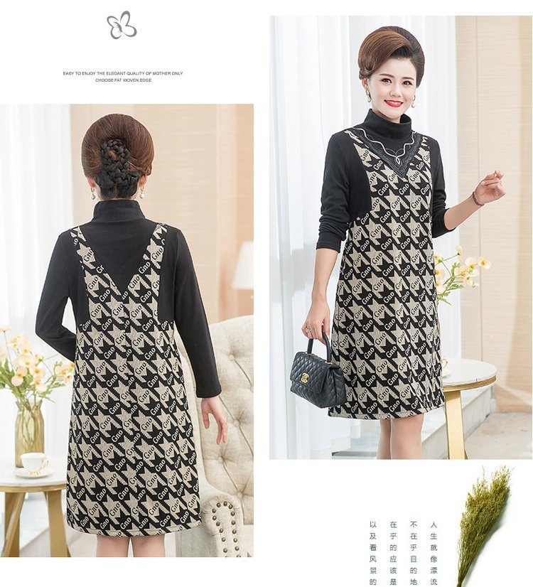 妈妈时尚加绒假两件打底裙宽松半高领打底裙 ZQ