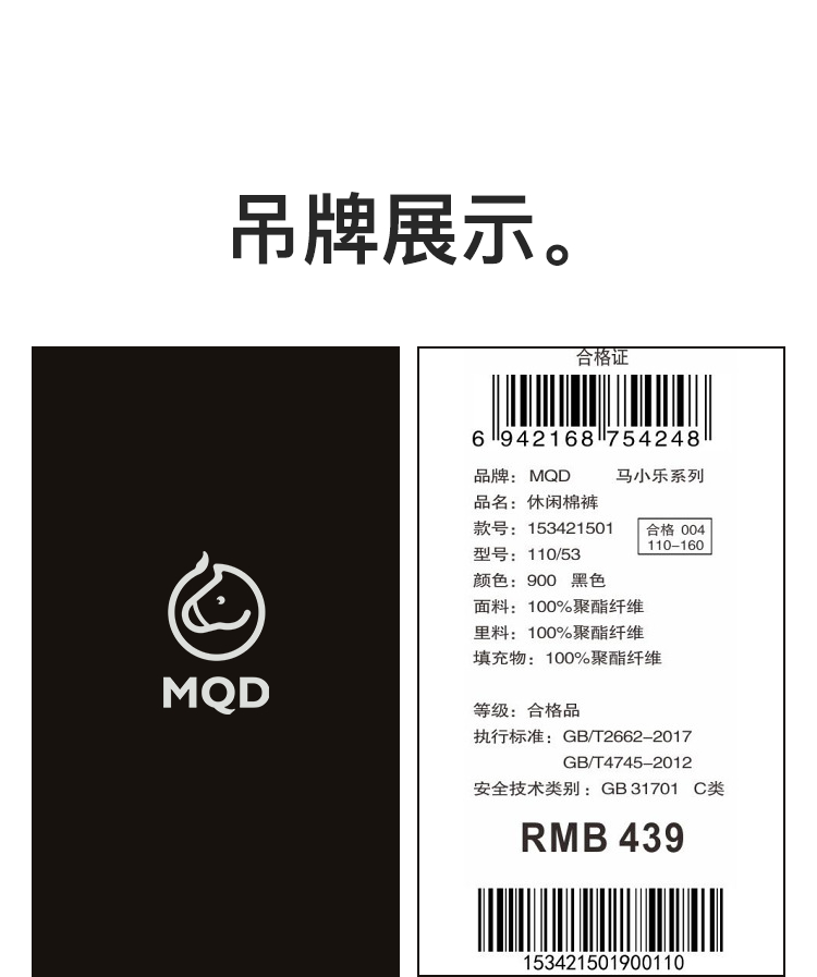 【秒】【专柜同款】【三防】MQD童装男童冬新款休闲棉裤儿童加厚裤子
