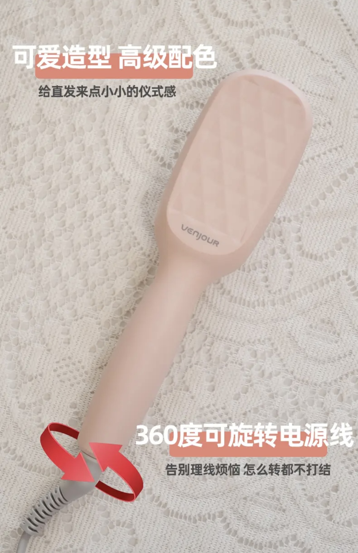 滋养发丝 定型不伤发 100-155摄氏度 出门在外 发型全靠它了!操作特别简单,梳一梳就行!然后就很顺滑不毛躁了!嘎嘎好用!!好用真的是不用多说🌀 ❇️护发不伤发,脱发星人的救星。小姐姐必须人手一个! 细节做的非常好,不想洗头用她三分钟搞定!禁止🚫上 淘宝 阿里 拼多多 投诉不撤