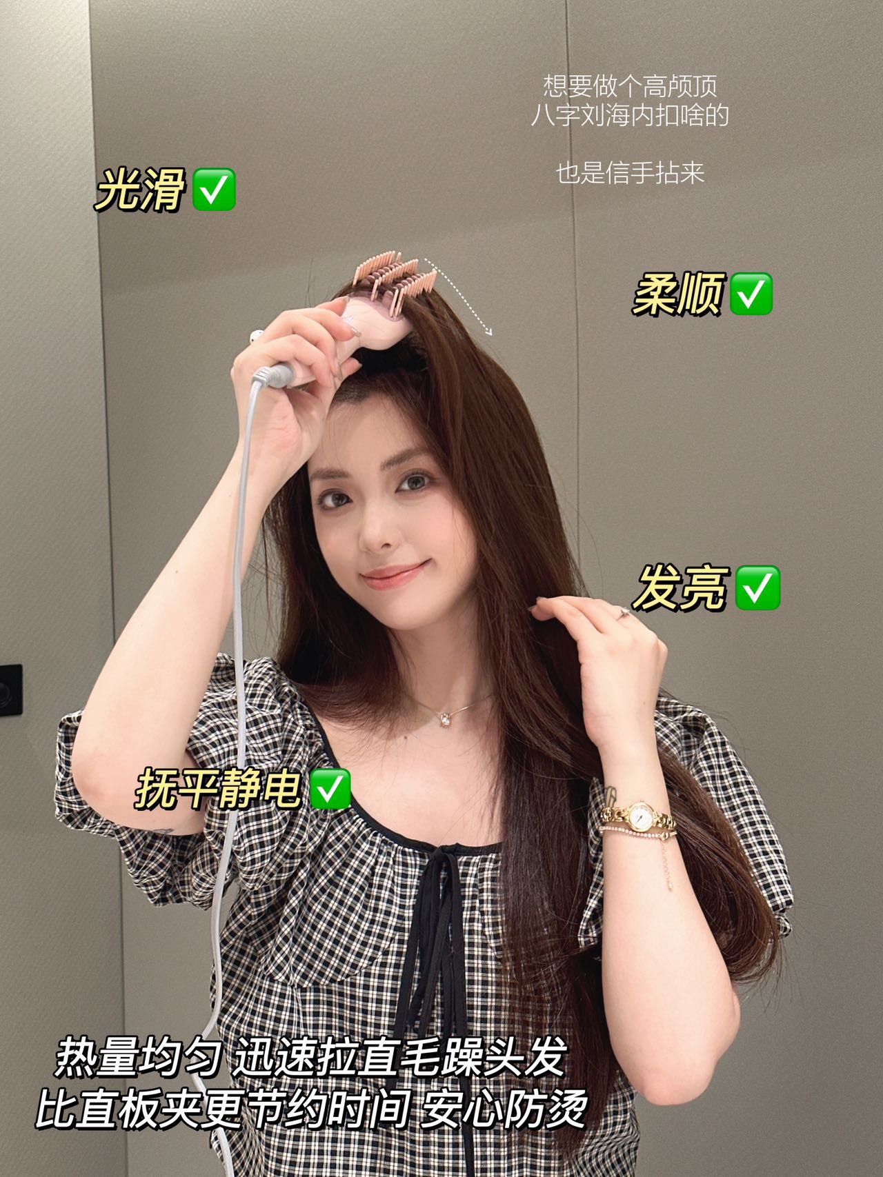 美美出门就靠它喽! 想要做个高颅顶八字刘海内扣啥的!也是信手拈来!对于早八人来说妥妥的就是一个神奇!对学生党也是相当的奈斯!还可以轻松搞定氛围感高颅顶页出差旅行放在收纳袋里,走哪带哪已经是离不开的程度啦!更贴合头皮流畅自然直接打造高颅顶氛围感 养发更护发 柔顺发丝的同时还能锁住水分。