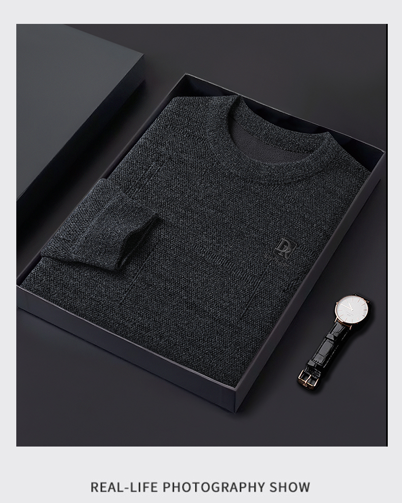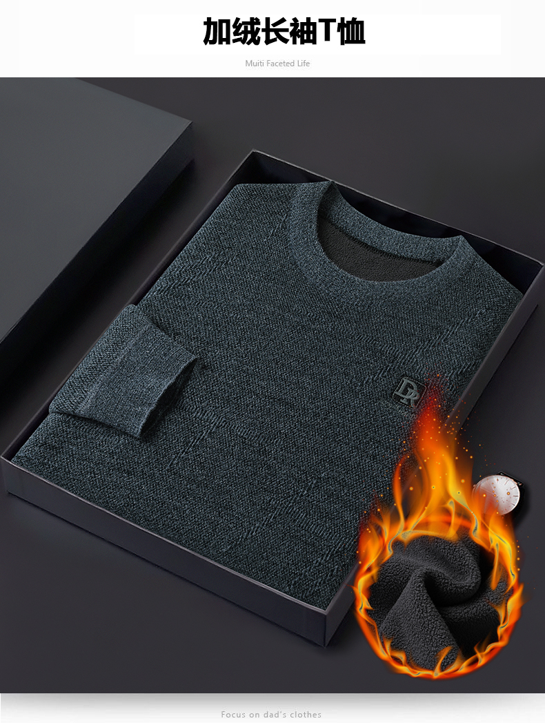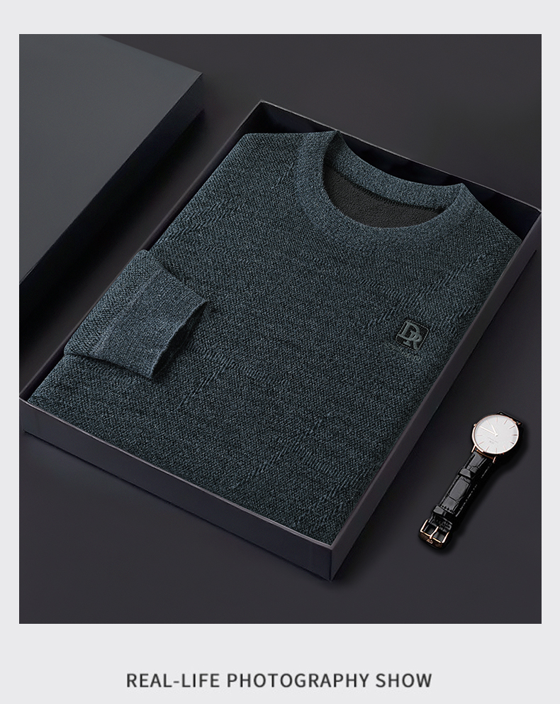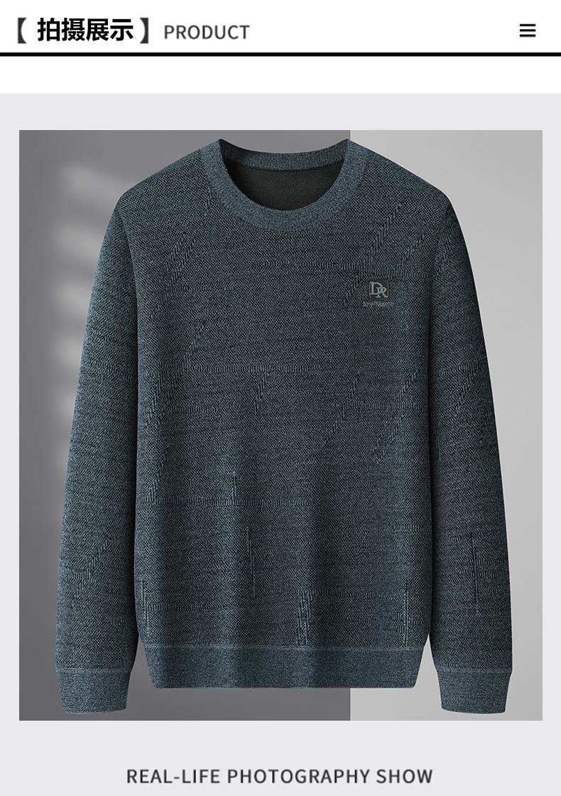 【加绒】【新款DWP】大依优型大码加绒卫衣圆领长袖加肥加大休闲运动上衣男打底衫胖子
