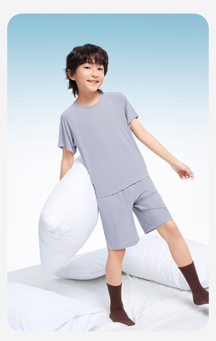 【7A抗菌家居】【天然润肤】【小程序专享】男童短袖短裤套装吸湿透气睡衣夏季新款安奈儿童装JB421877