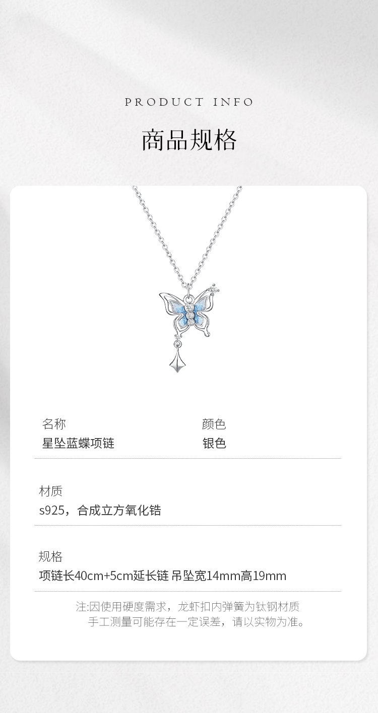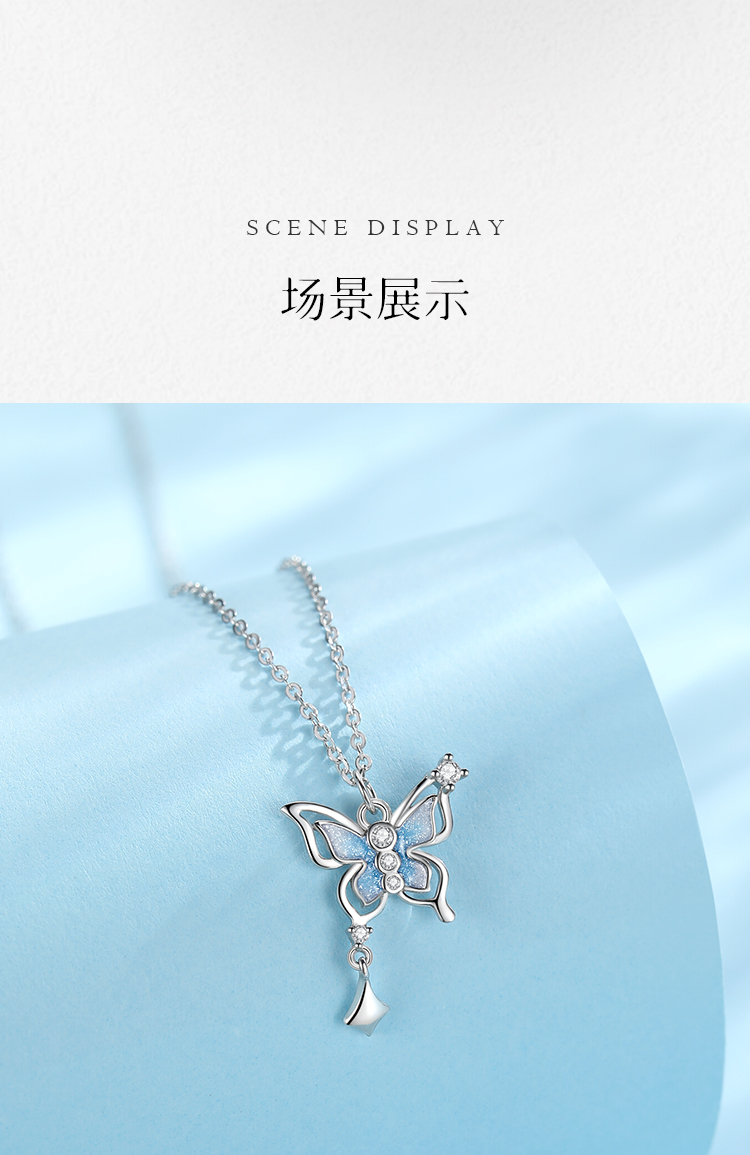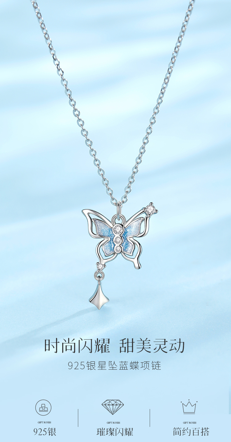 Winy s925银星坠蓝蝶项链送女朋友/老婆/闺蜜生日节日礼物