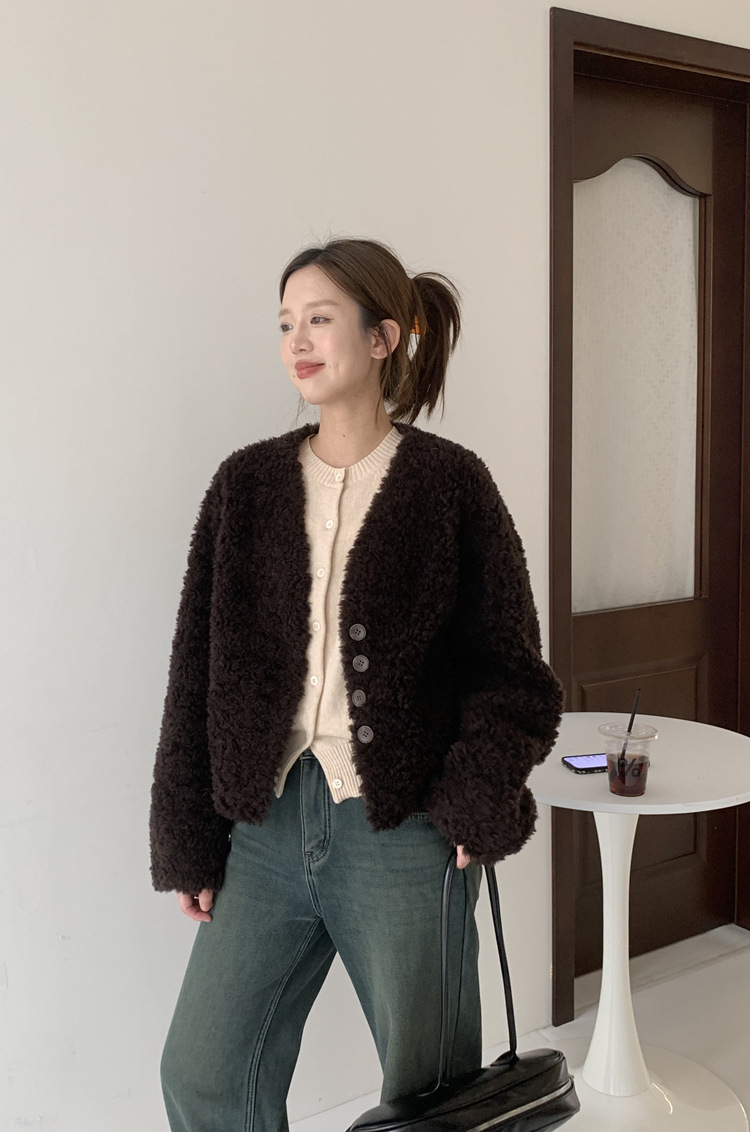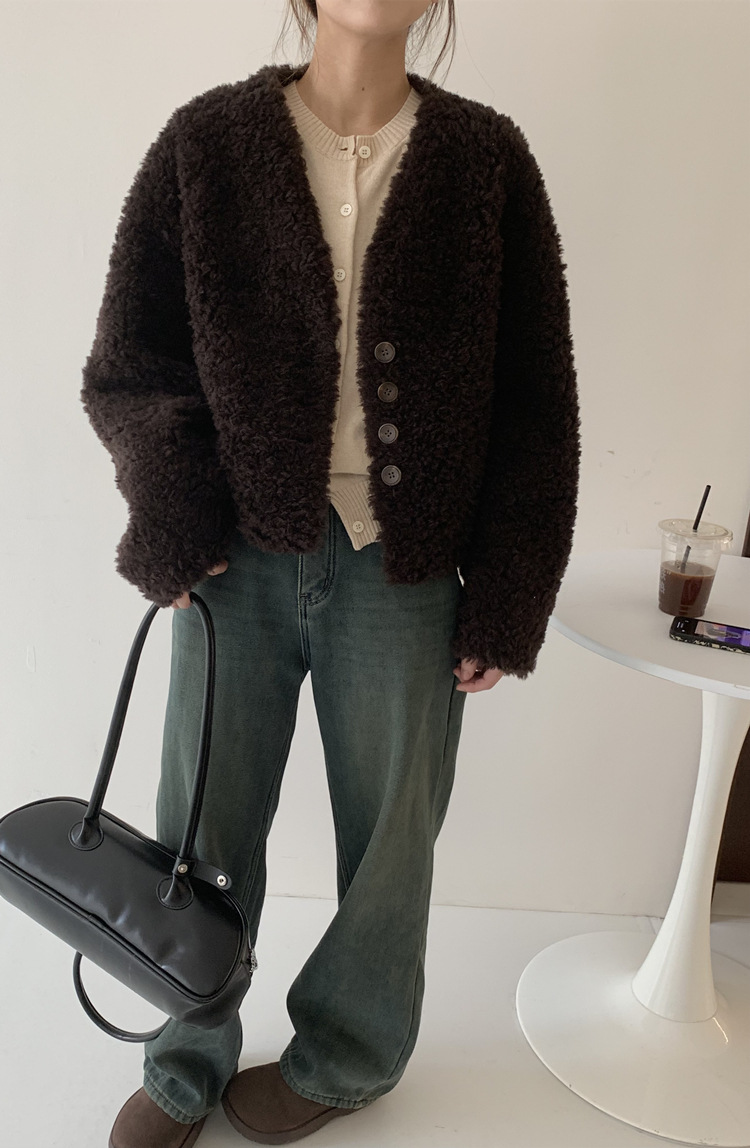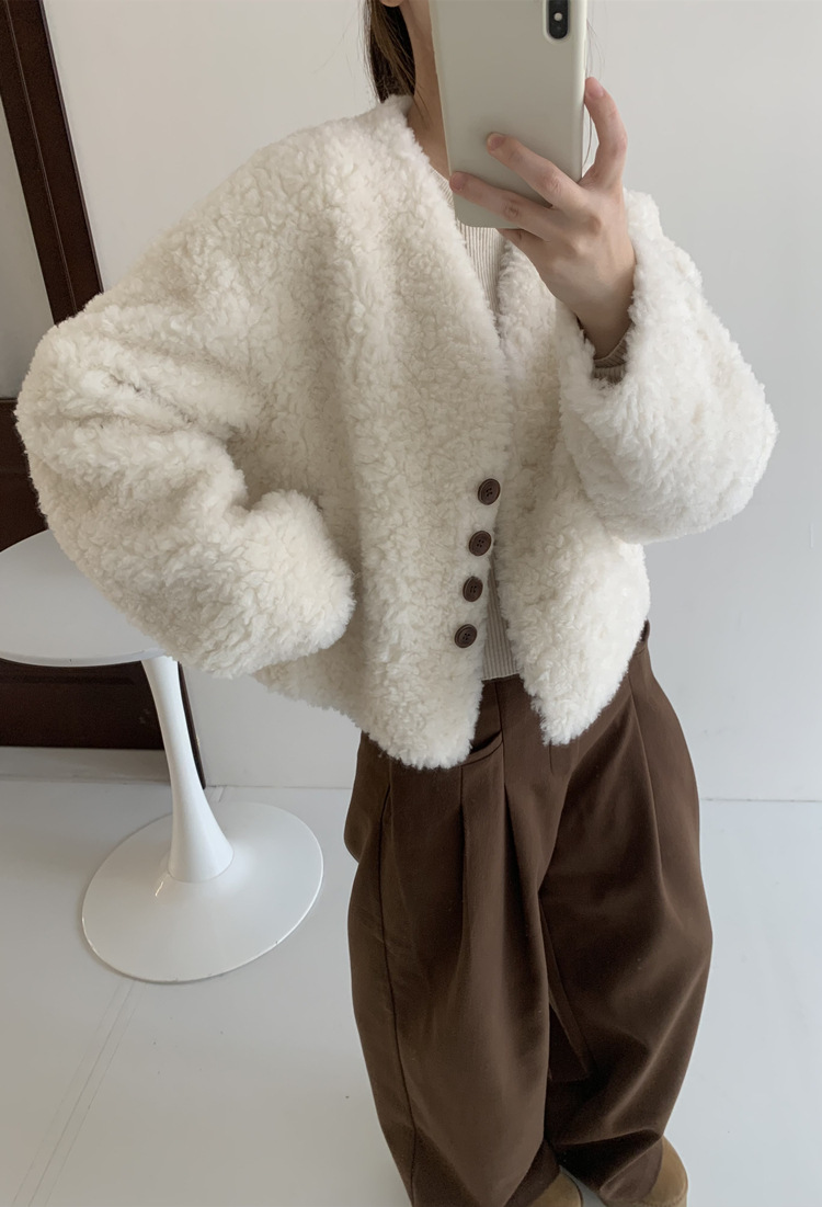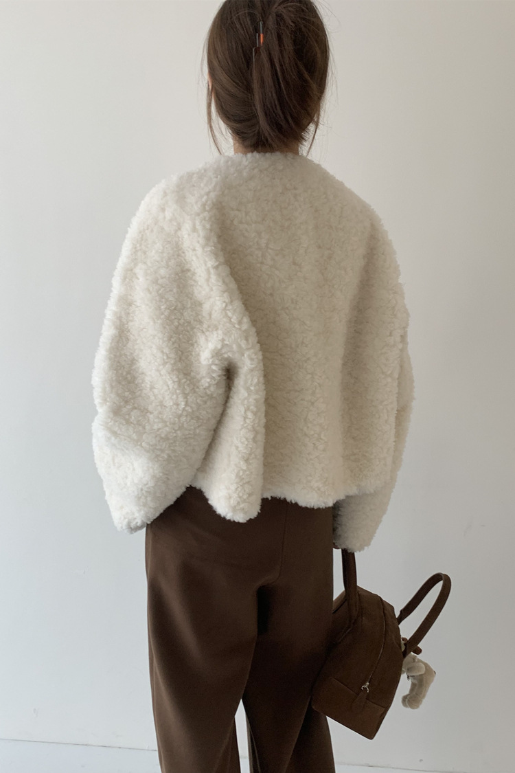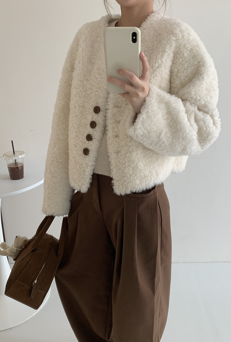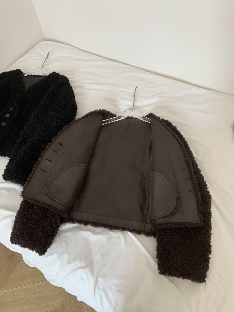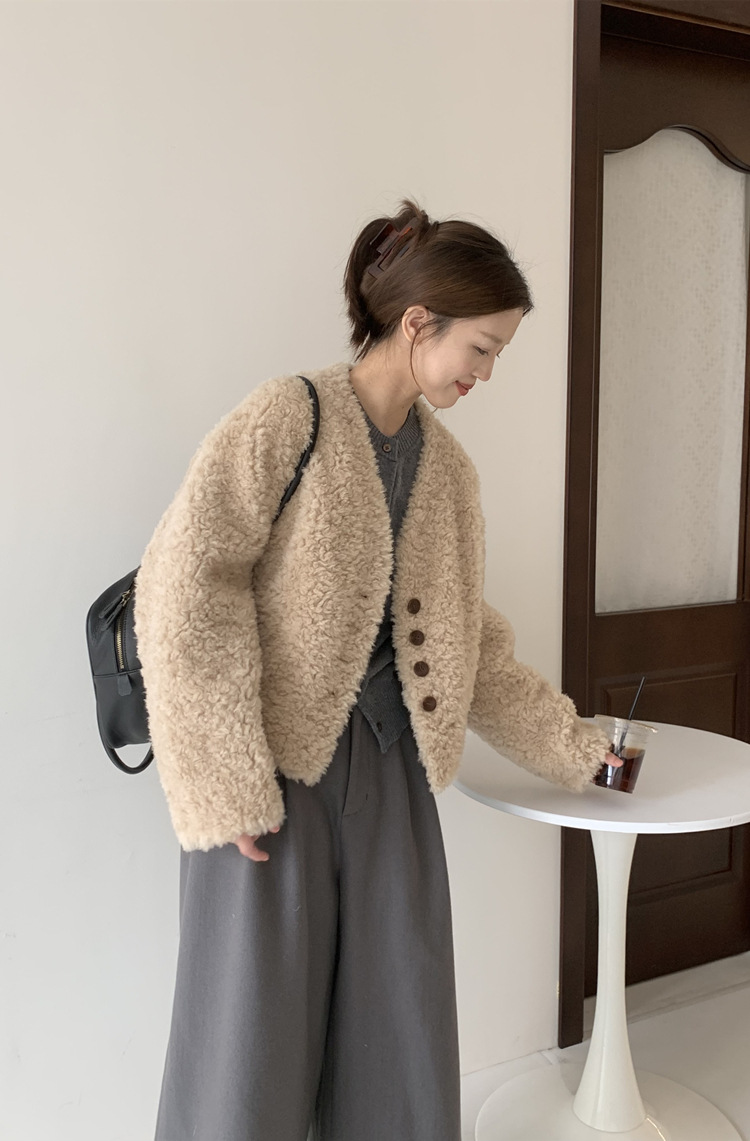 丁摩100绵羊羔毛韩版2025冬季新款羊剪绒皮毛一体皮草外套女v领短款ALW2511-5