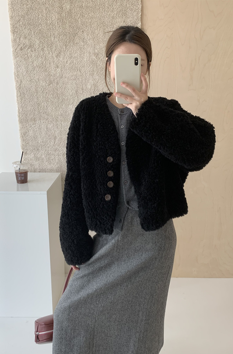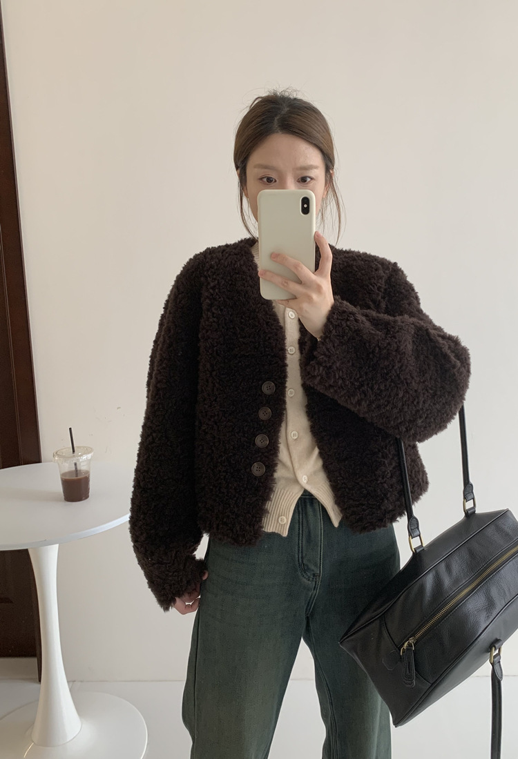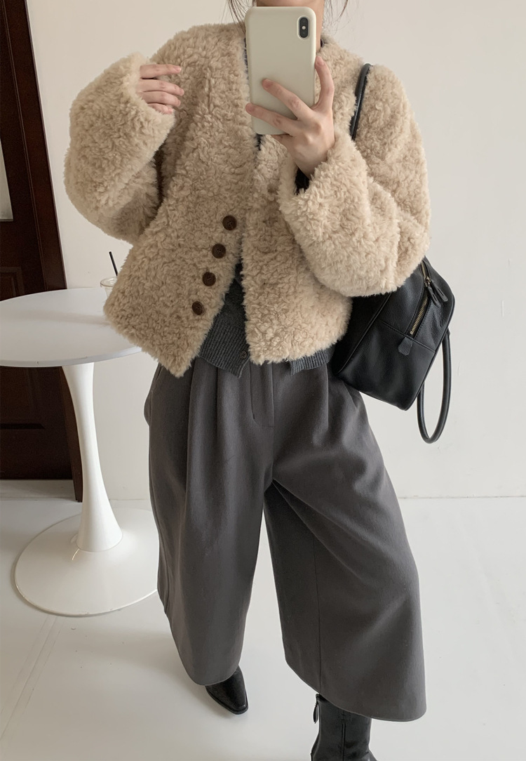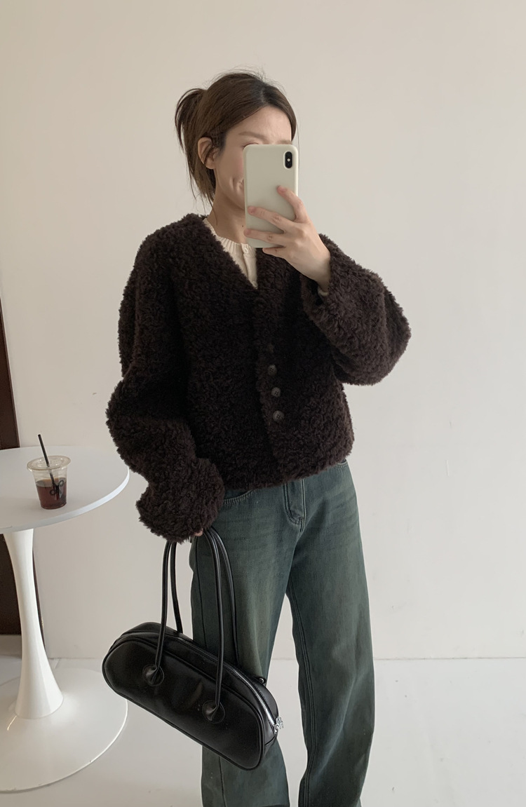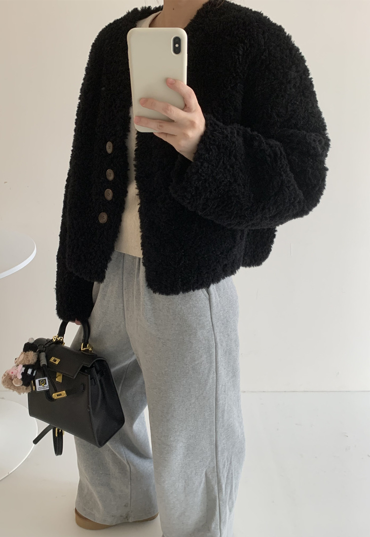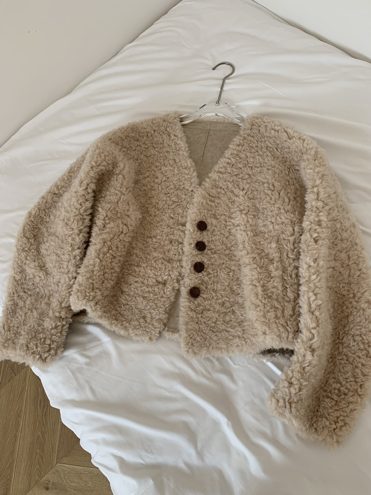 丁摩100绵羊羔毛韩版2025冬季新款羊剪绒皮毛一体皮草外套女v领短款ALW2511-5