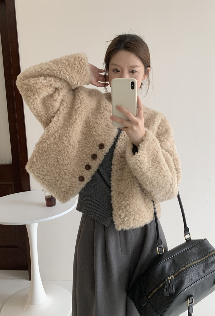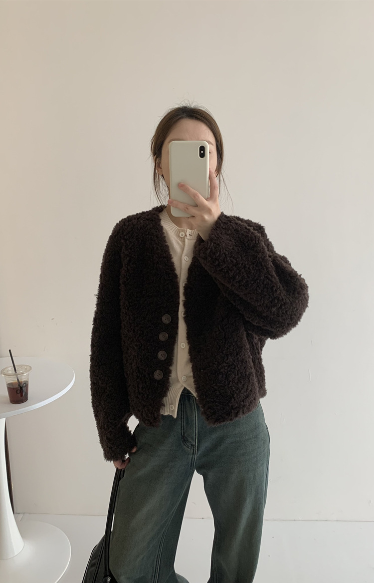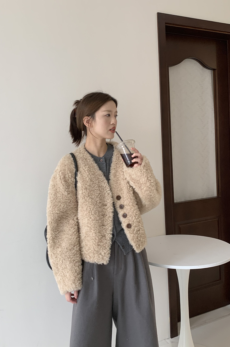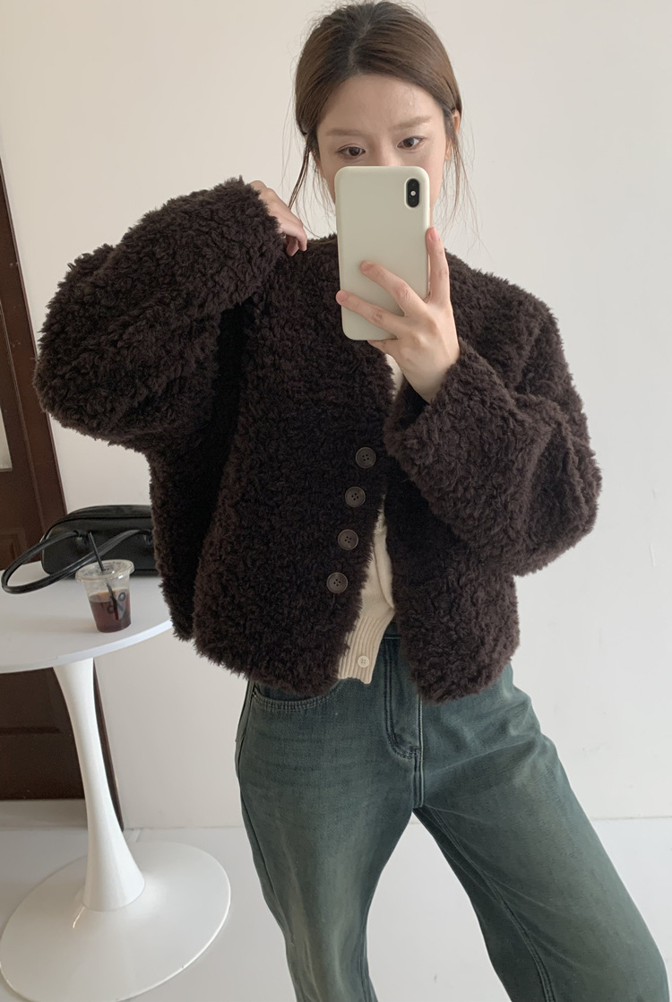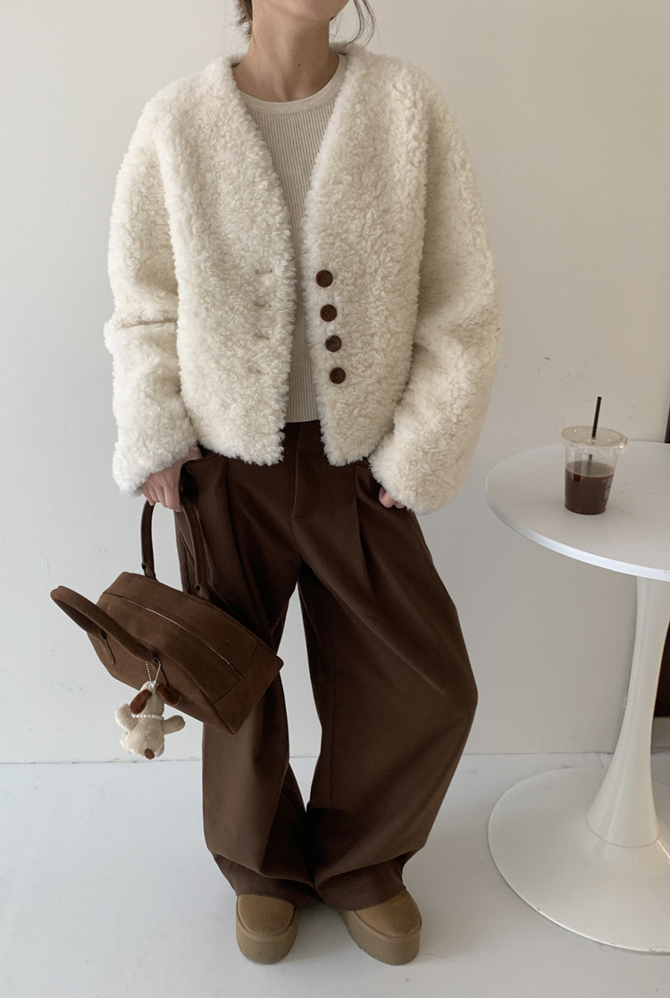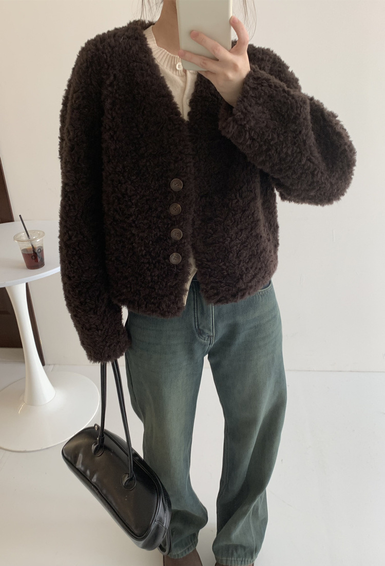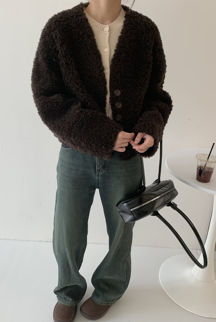 丁摩100绵羊羔毛韩版2025冬季新款羊剪绒皮毛一体皮草外套女v领短款ALW2511-5