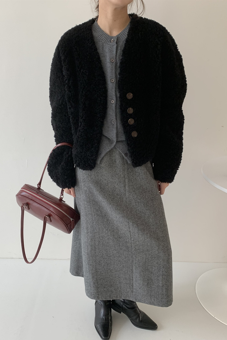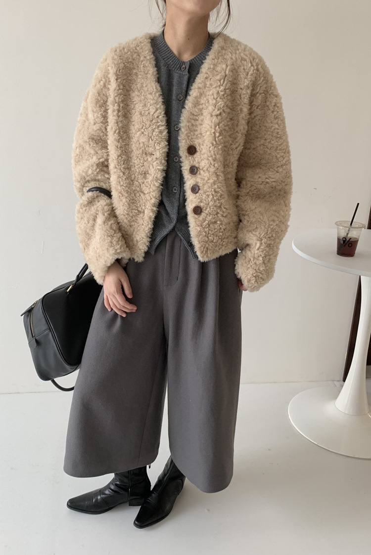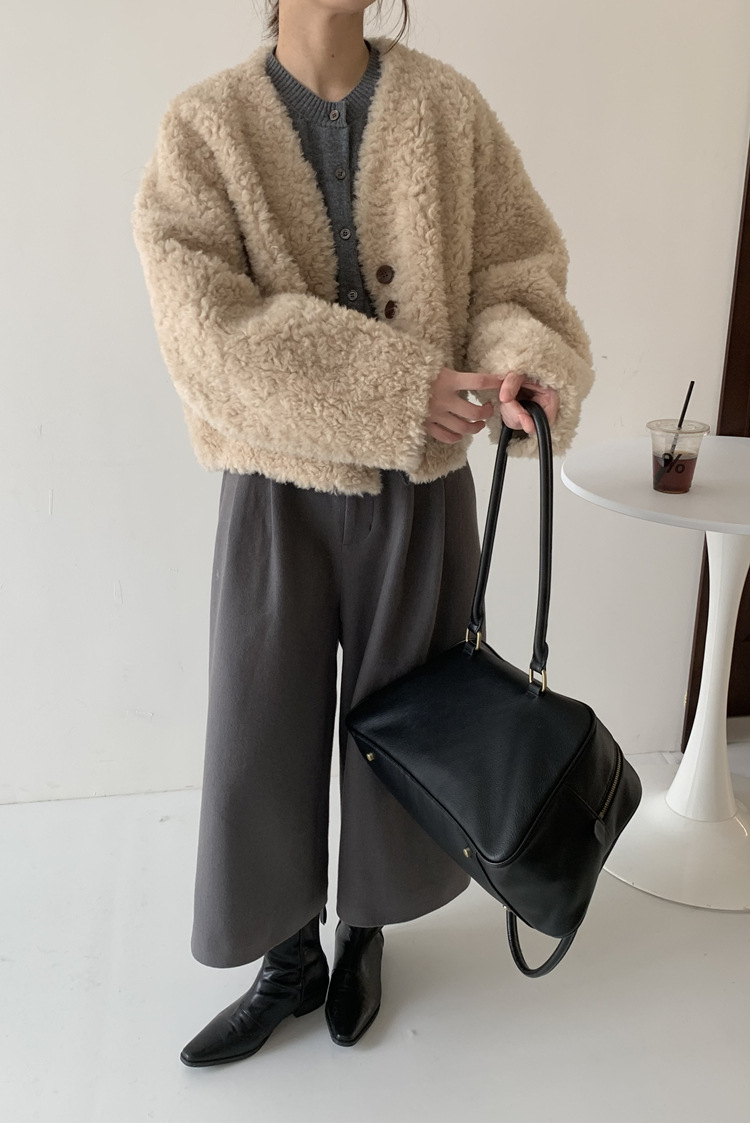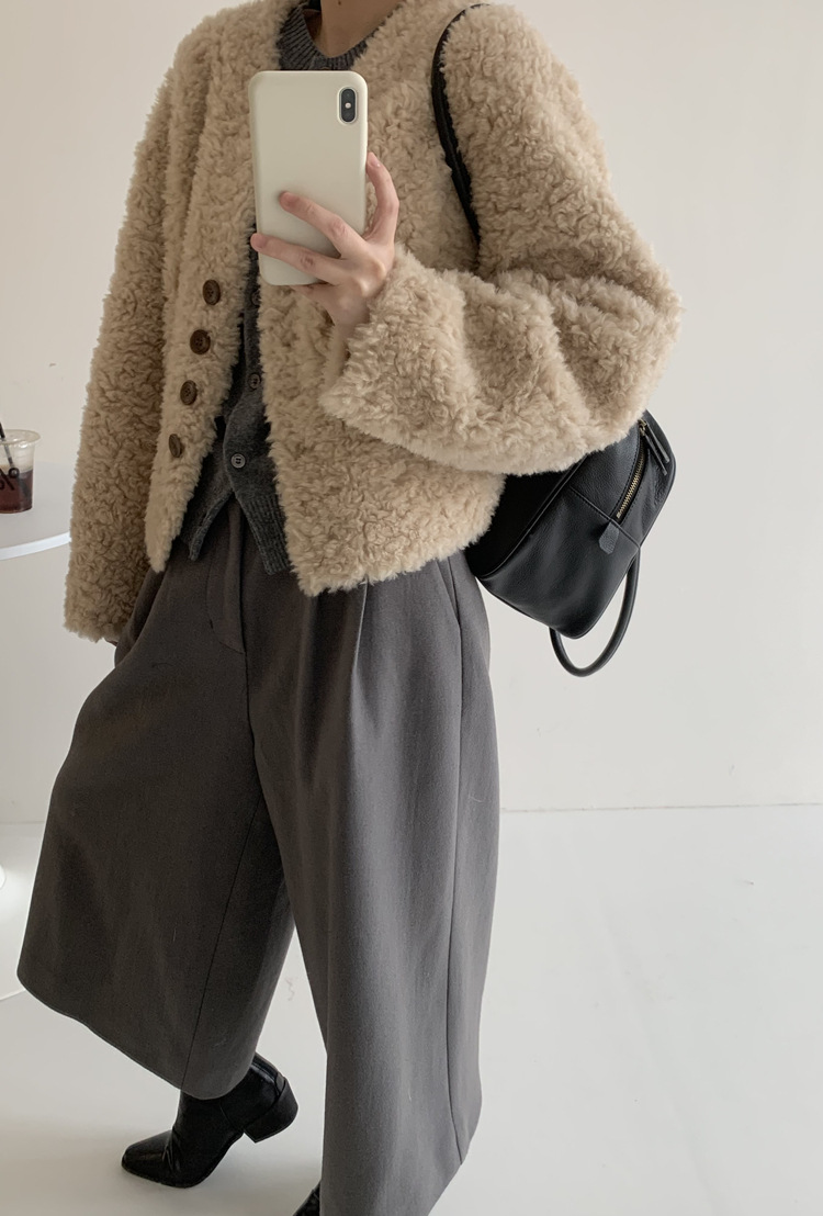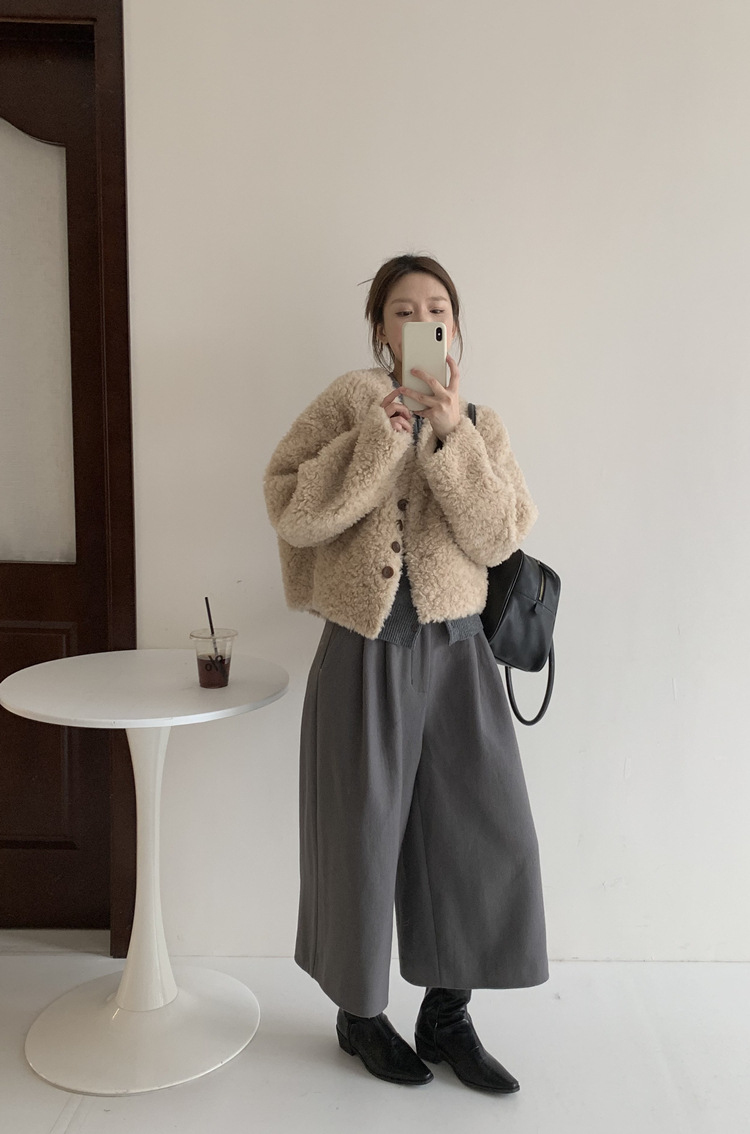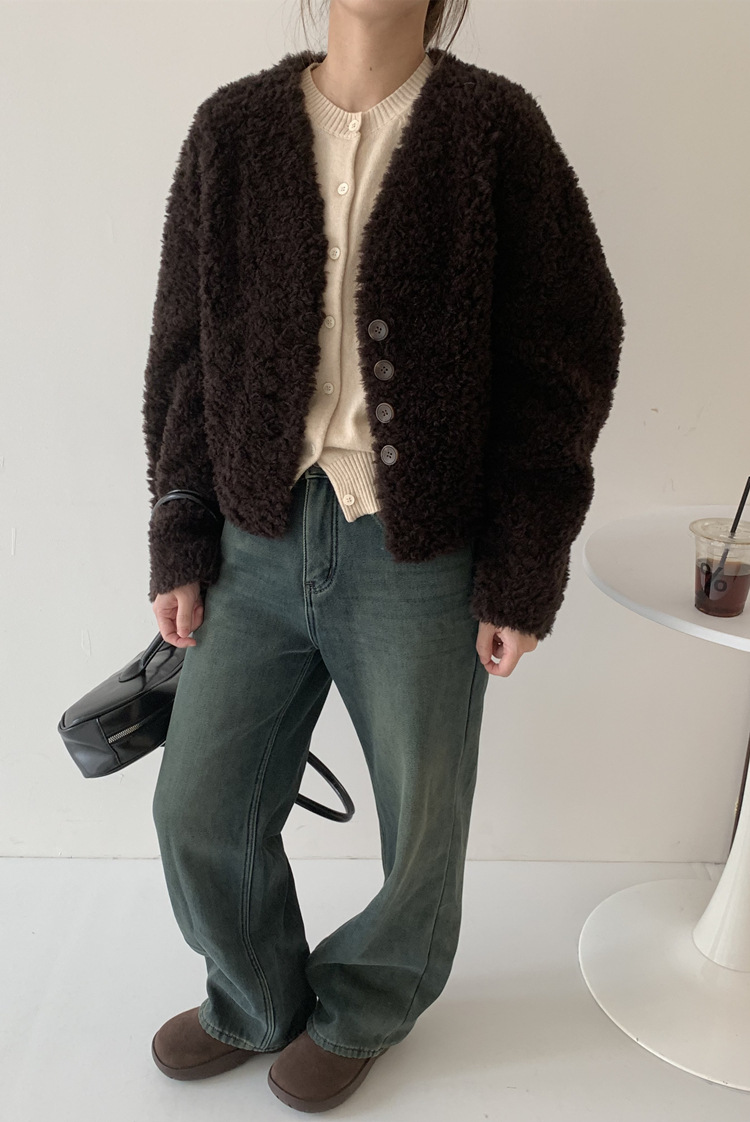 丁摩100绵羊羔毛韩版2025冬季新款羊剪绒皮毛一体皮草外套女v领短款ALW2511-5