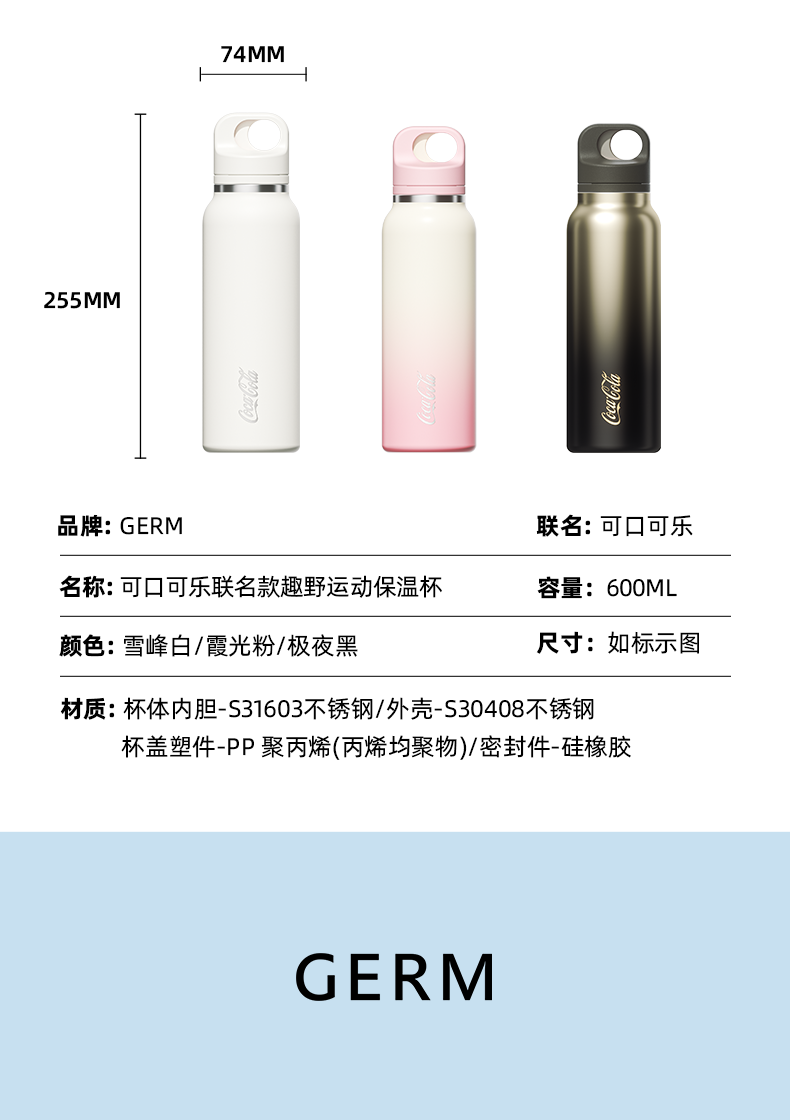 GERM可口可乐趣野运动保温杯600ml极夜黑
