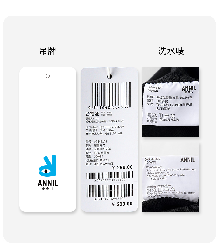 【实体店同款】女童全腰针织夹裤冬季新款安奈儿童装XG546177