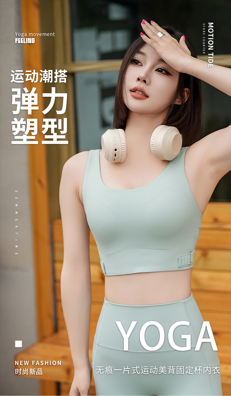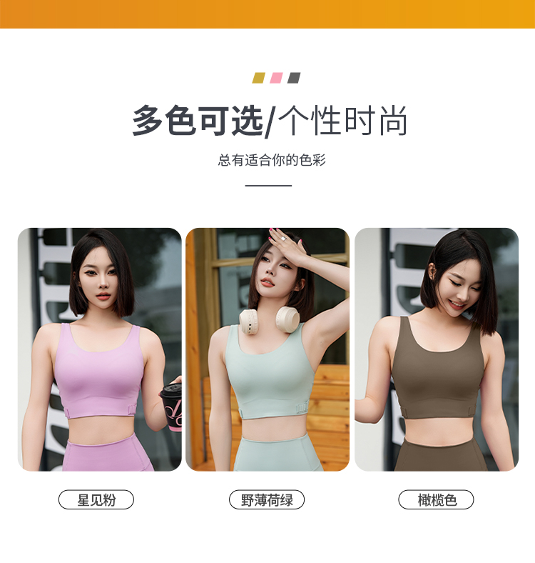 跃牌【周游世界系列】 一体式运动内衣女高强度防震聚拢跑步健身文胸bra普拉提瑜伽背心 BR1525