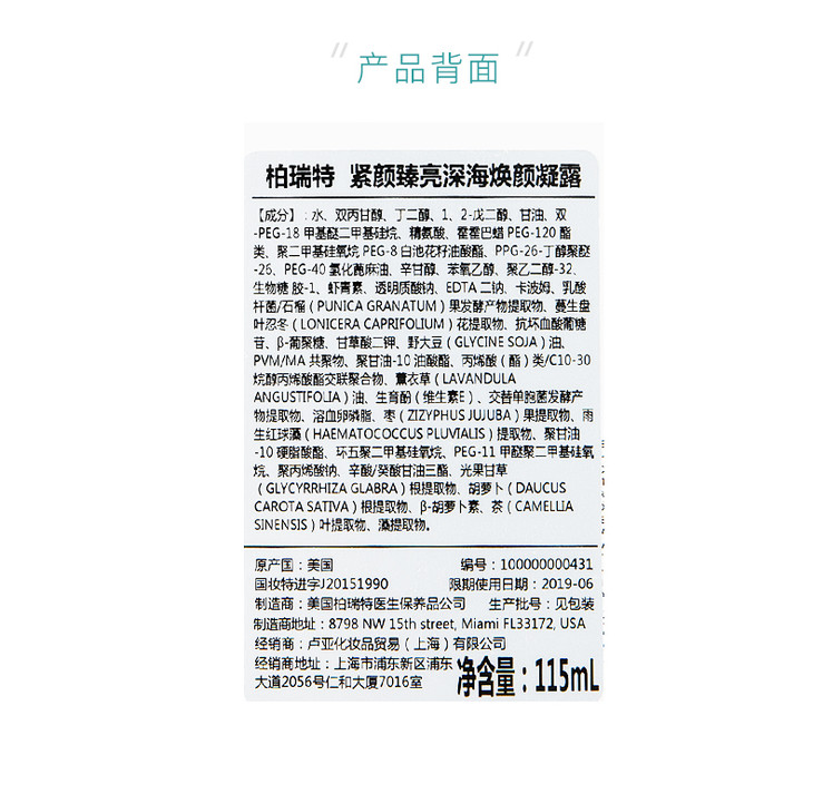 柏瑞特紧颜臻亮深海焕颜凝露20ml(赠品)