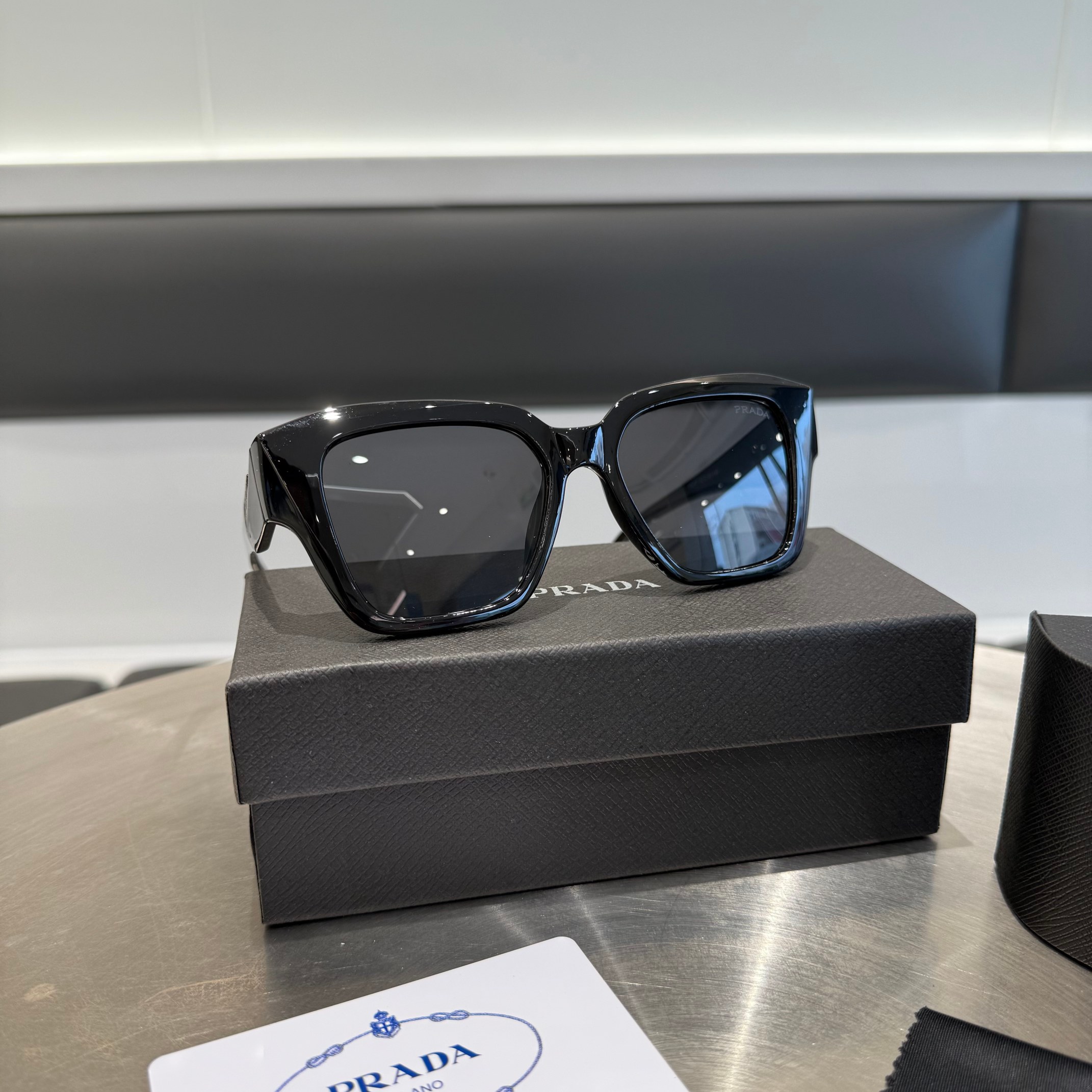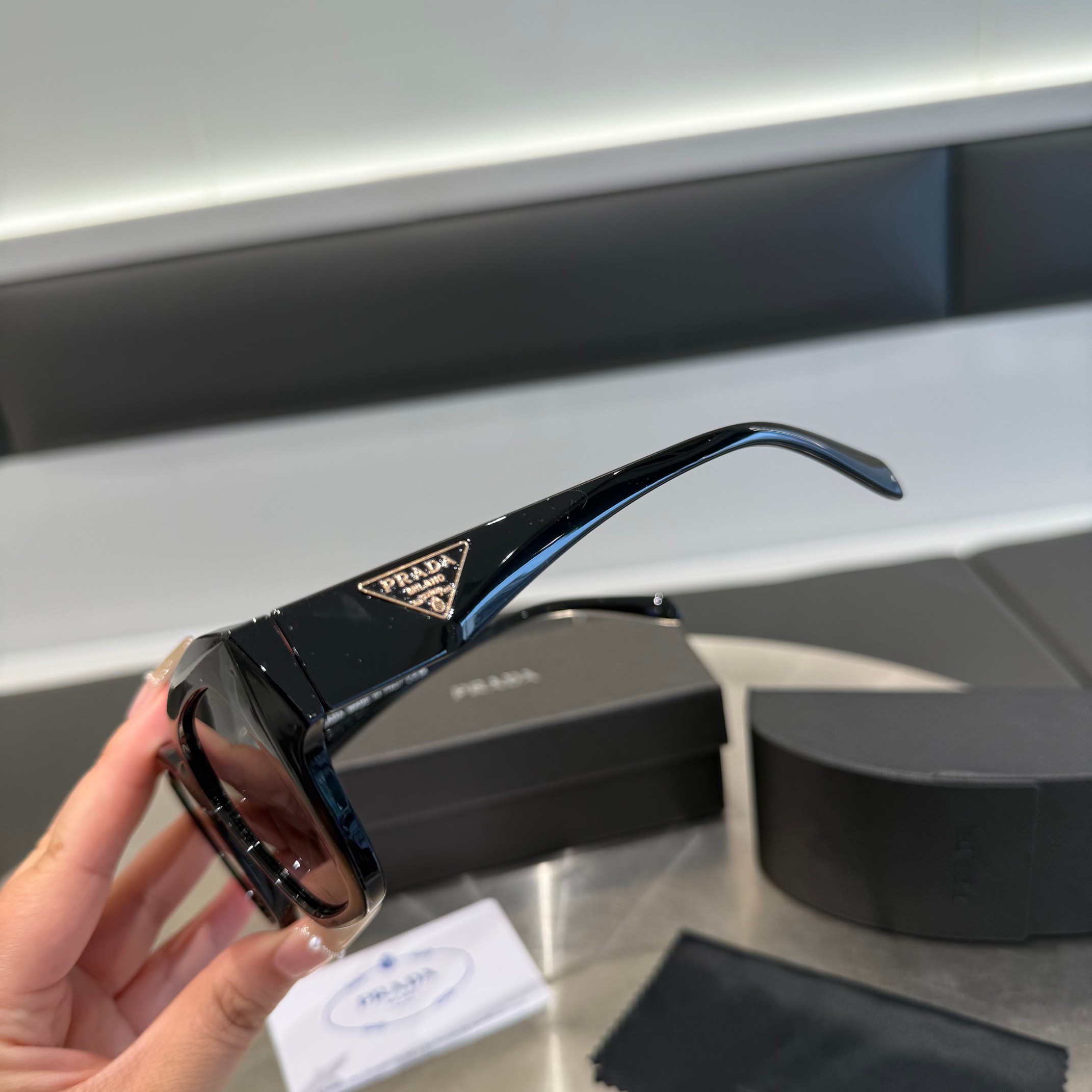 PRADA普拉达墨镜,偏光太阳镜~高定版本,配全套专柜包装,镜片是高清防紫外线的,开车度假日常佩戴都是完美选择,超轻镜架不压,绝对是小哥哥们的必备单品