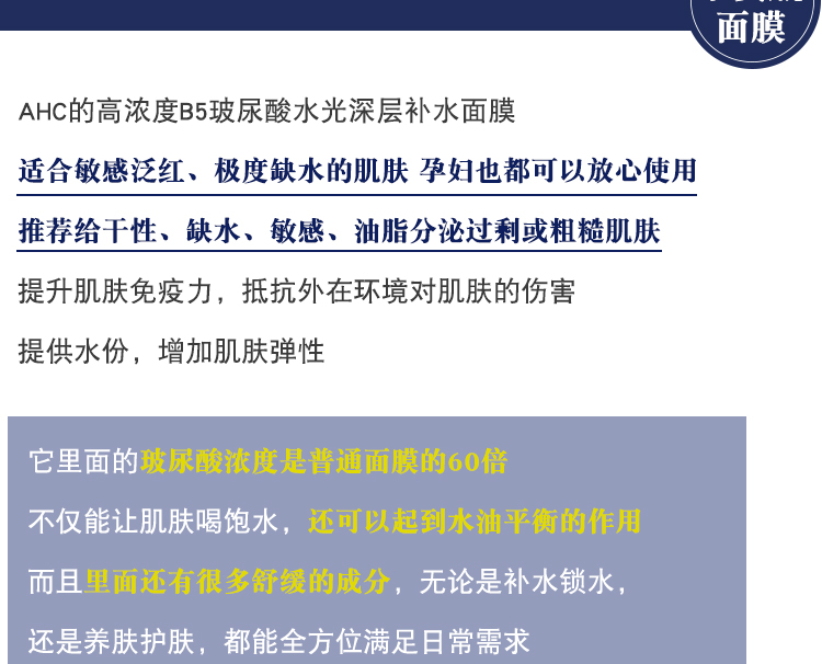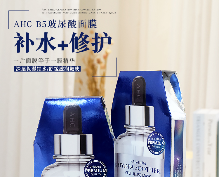 【门店直发】韩国AHC面膜第三代高浓度B5玻尿酸精华液保湿补水舒缓修护5片/盒