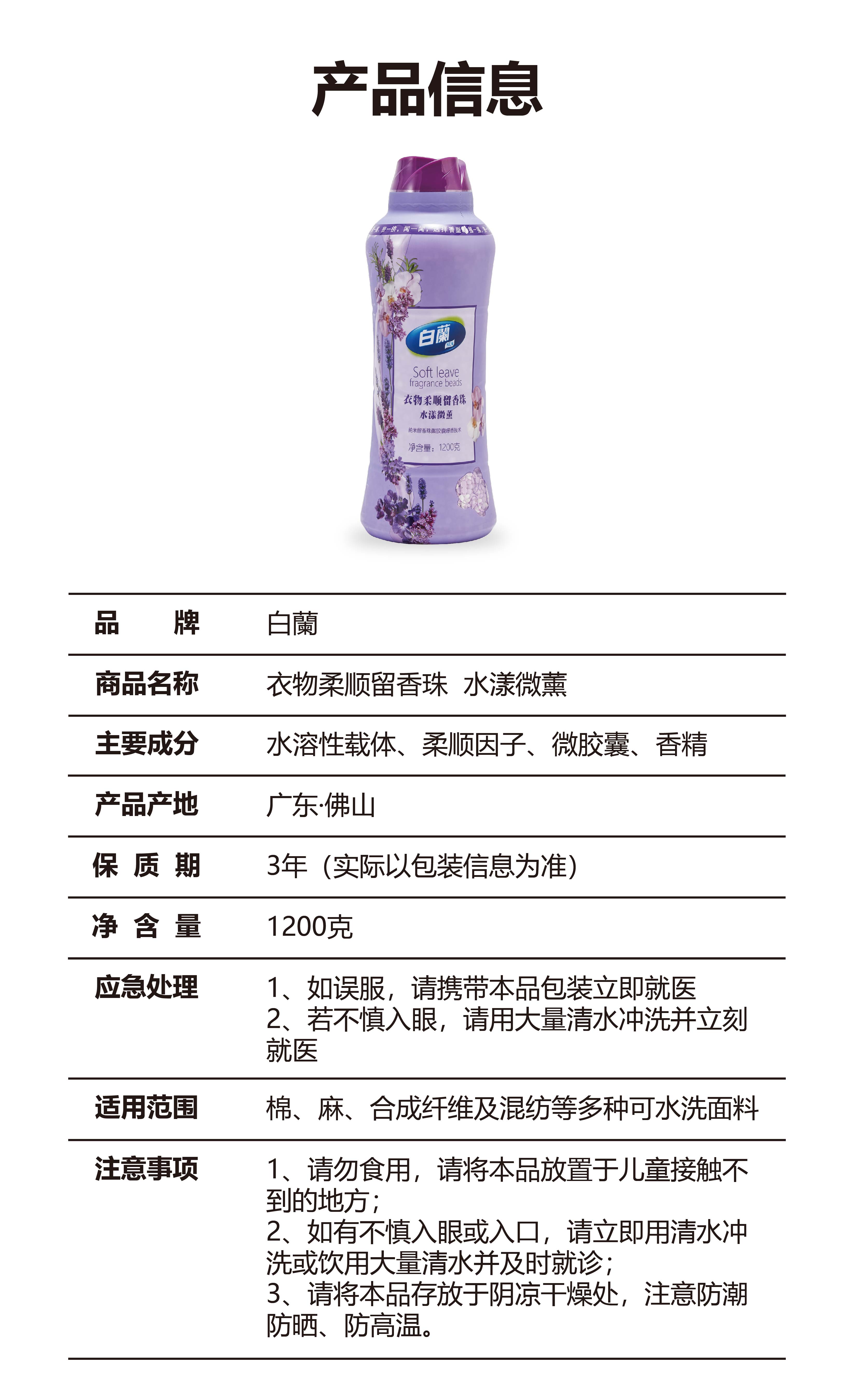 白蘭衣物柔顺留香珠(水漾微薰衣)/1瓶(1200g)限用日期:28年10月补单专用