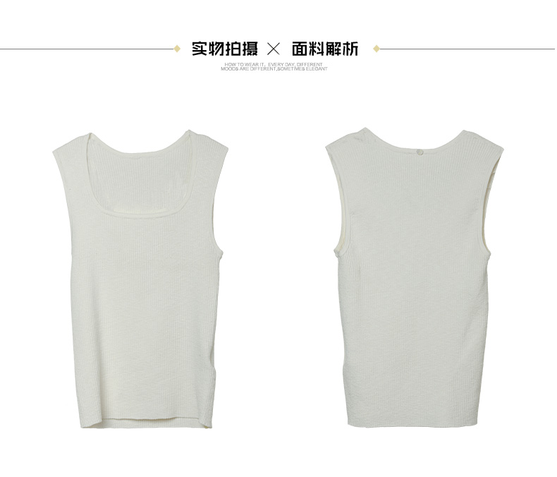 米白色坑条针织背心女 2026 新款 方领宽肩带显瘦内搭 小个子百搭无袖打底衫