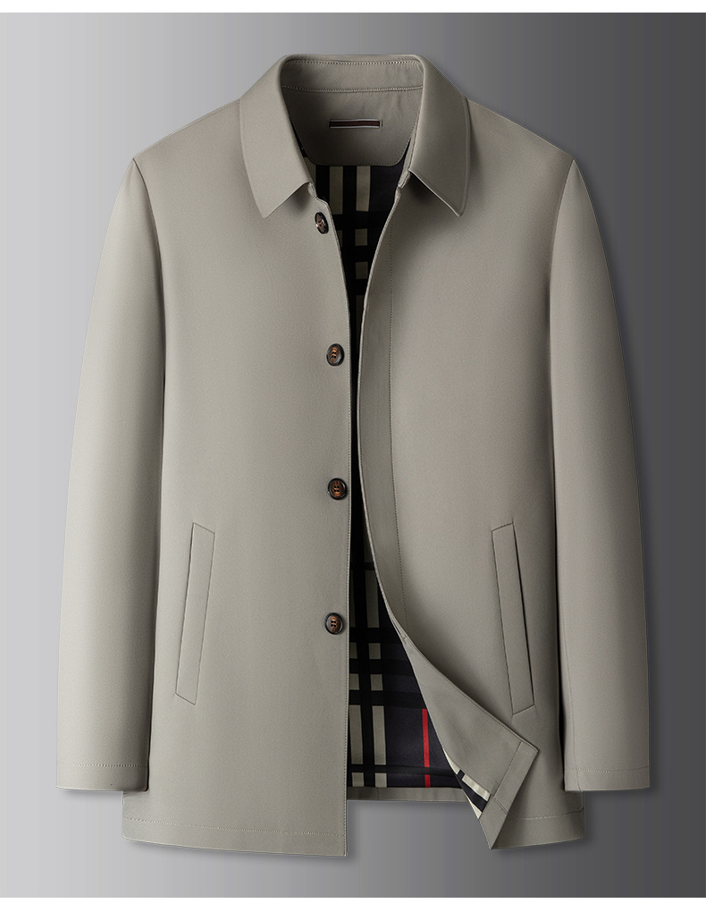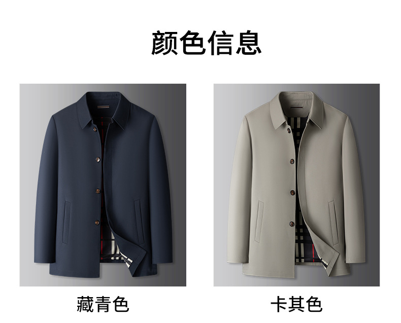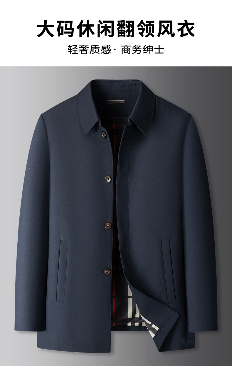 【DKP】大依优型大码外套男士春秋季新款商务休闲风衣翻领夹克男士轻奢加肥大码行政外套中长款