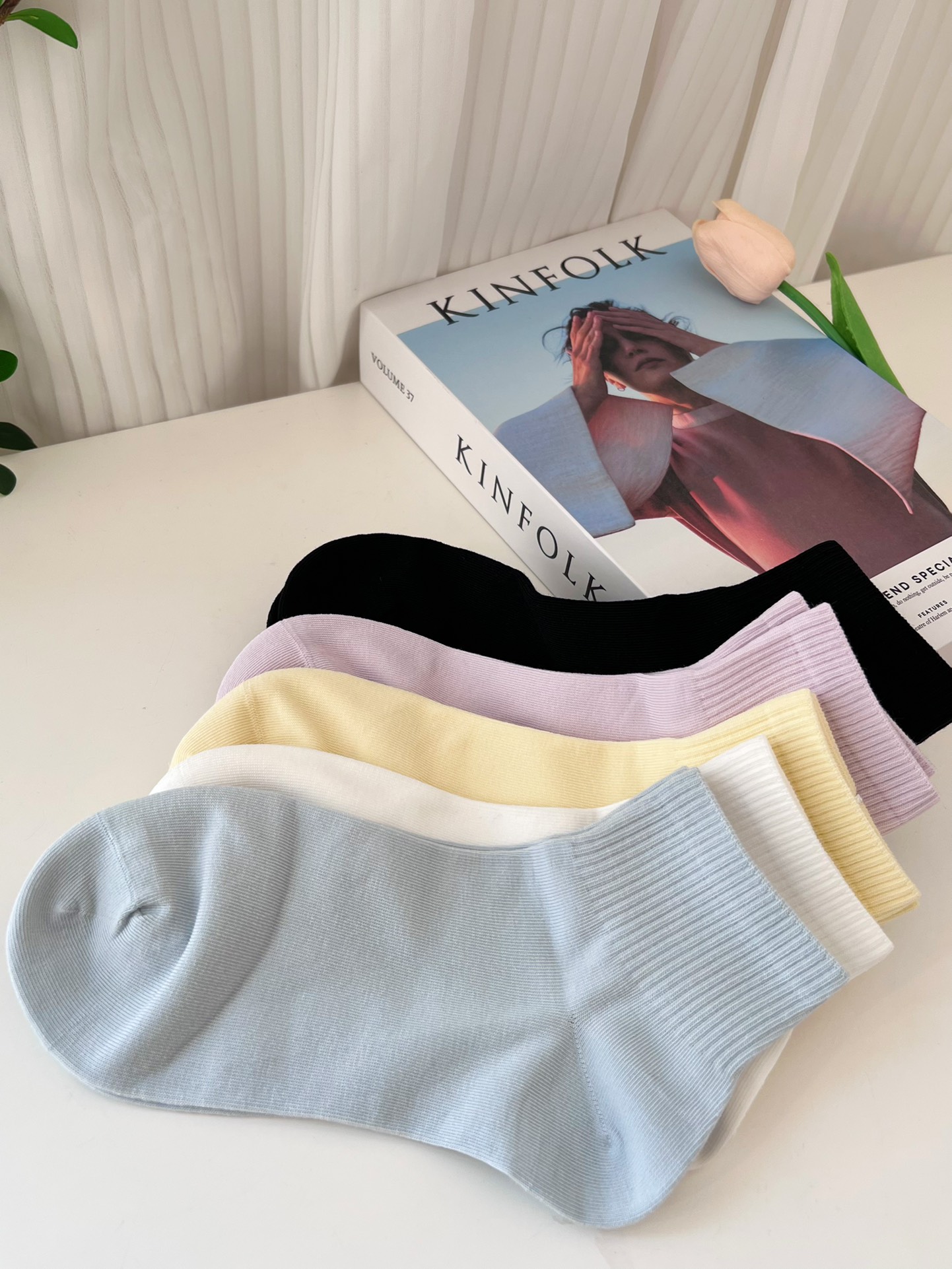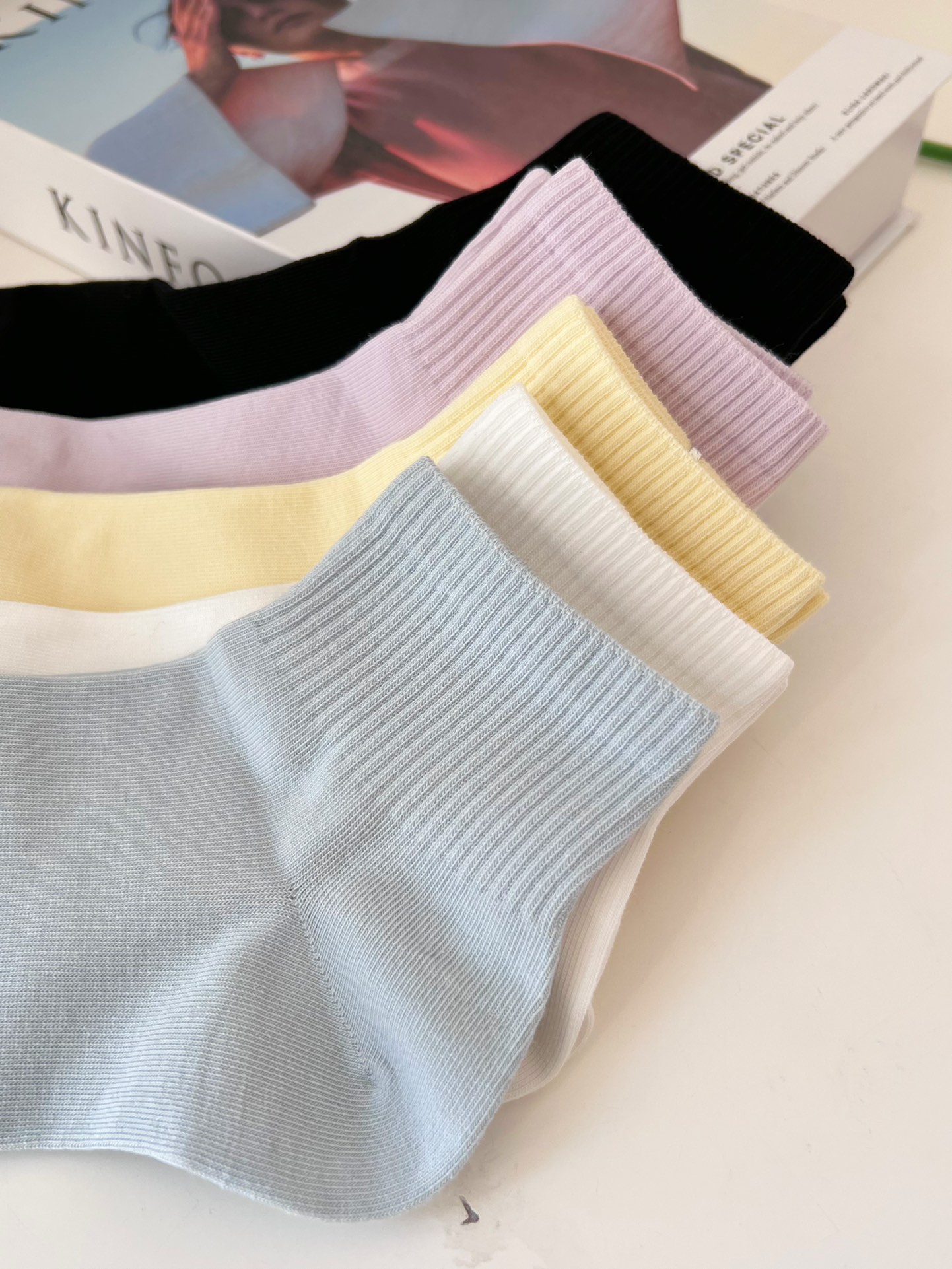 30一包(一包5双不同色)艾 爱M粗罗纹口低筒纯色极致抗起球百棉女袜到货!7A级抗臭抗菌女袜!无敌百搭耐看!袜筒:不易脱落松垮,不紧绷,贴合性好。袜跟:不掉跟!新疆长绒棉,面料舒适,贴合脚步。袜头:一体机 手工对目缝合,舒适不硌脚。大货均码:脚码数在36到41码都可以穿,大货5个色: 图片所示!
