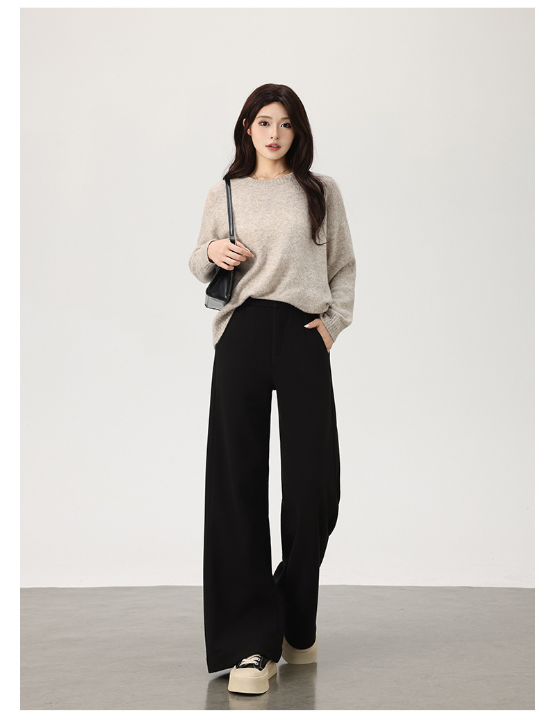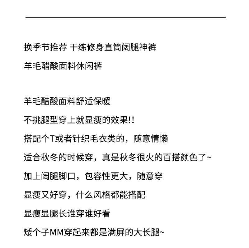 丁摩 高腰直筒裤女加绒加厚休闲醋酸羊毛阔腿裤1177