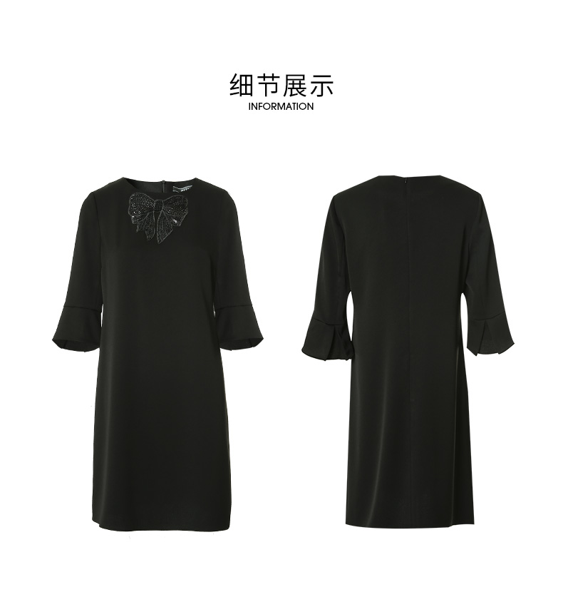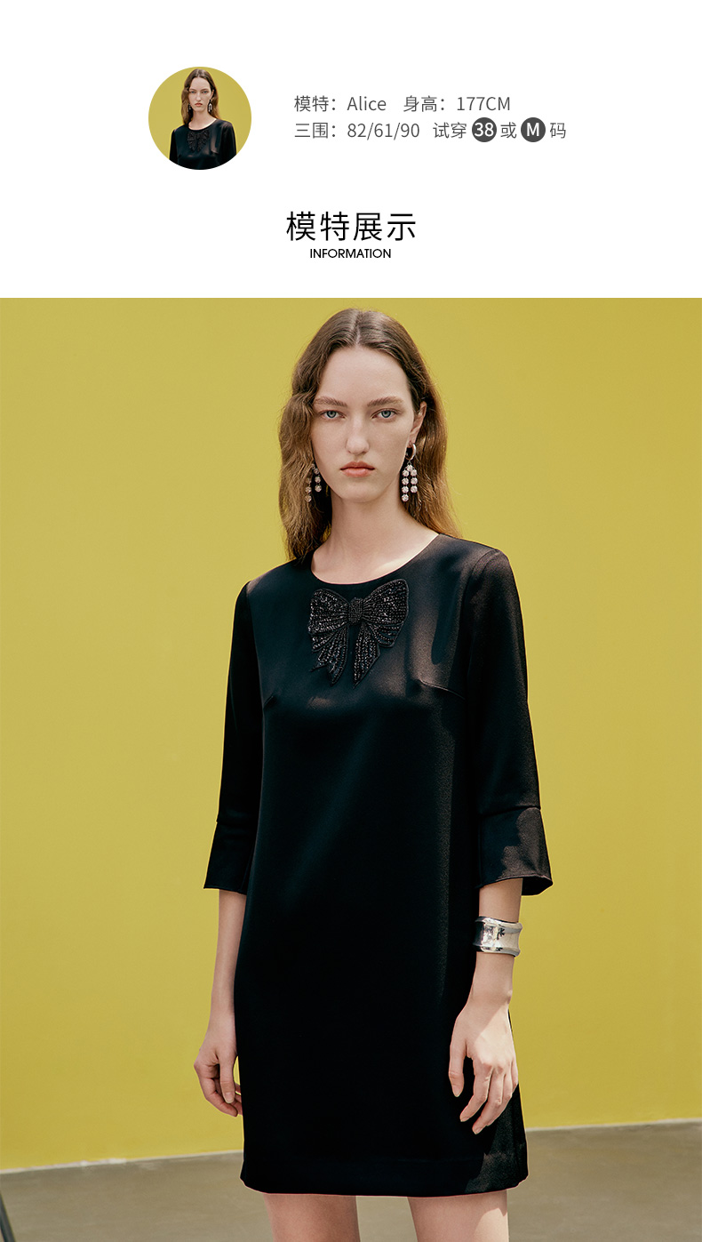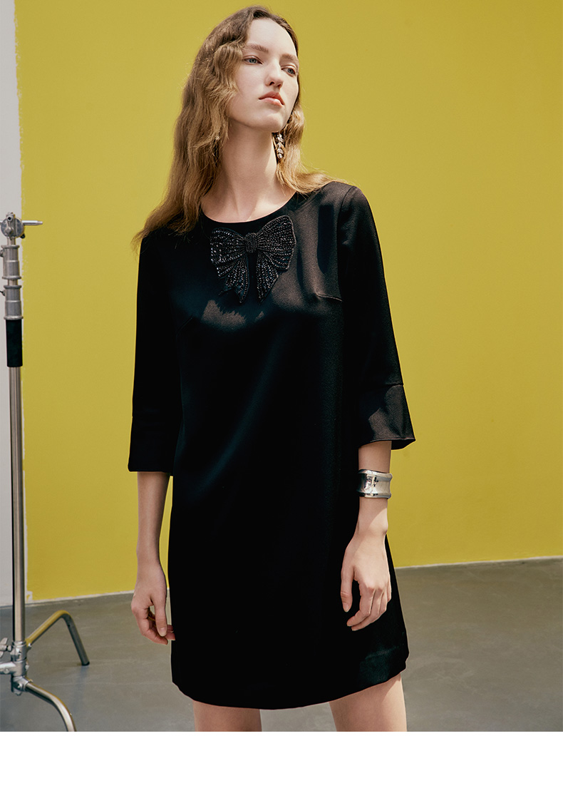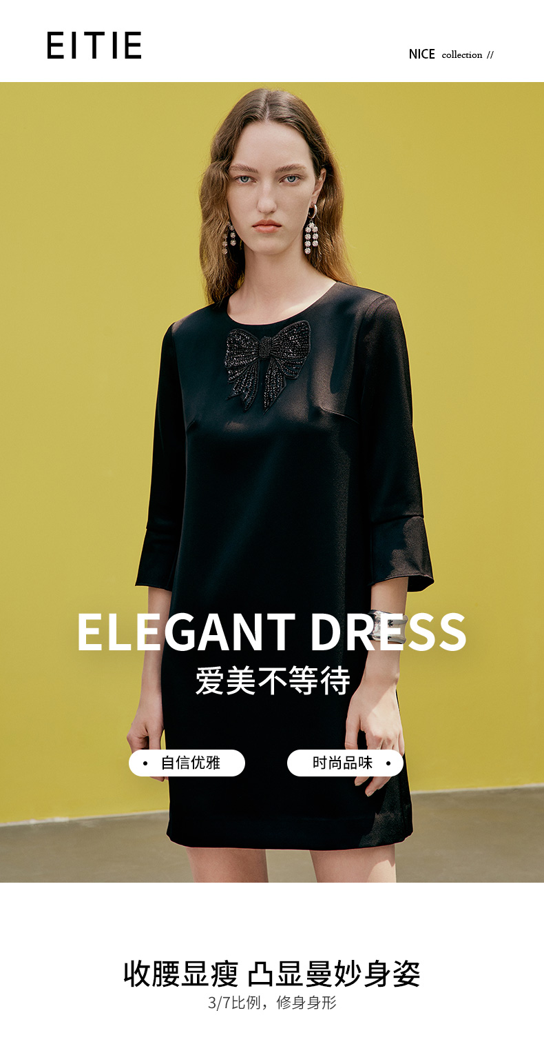 EITIE爱特爱春季新款蝴蝶结胸口图案设计连衣裙7307009