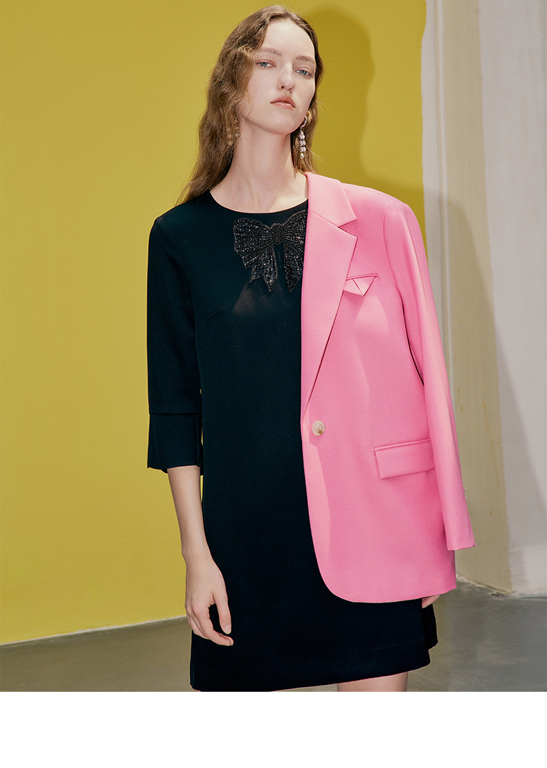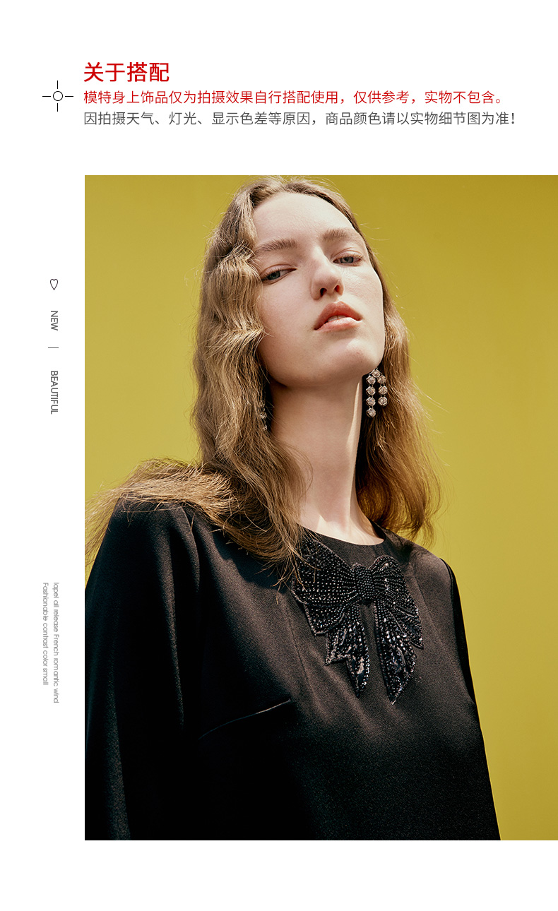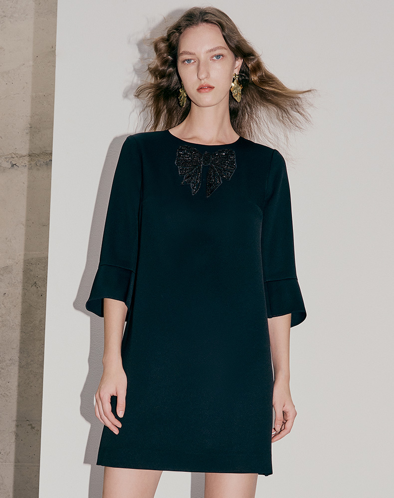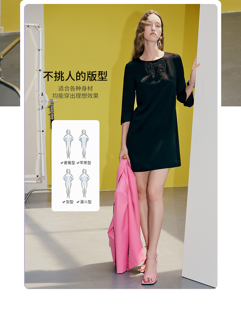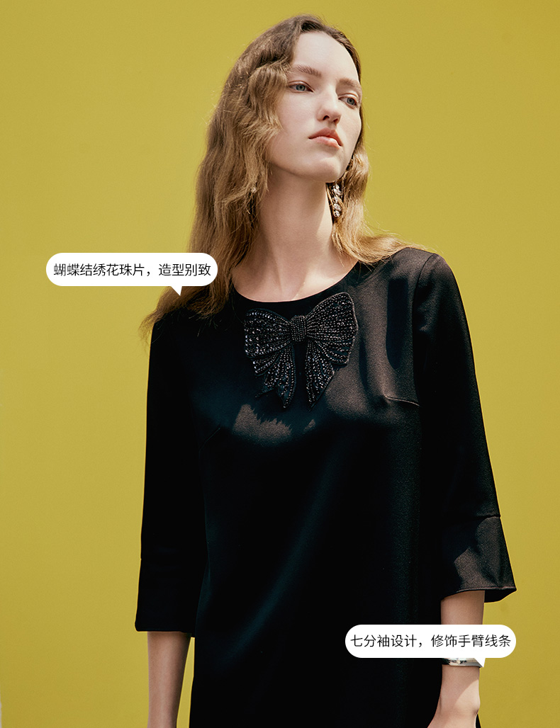 EITIE爱特爱春季新款蝴蝶结胸口图案设计连衣裙7307009