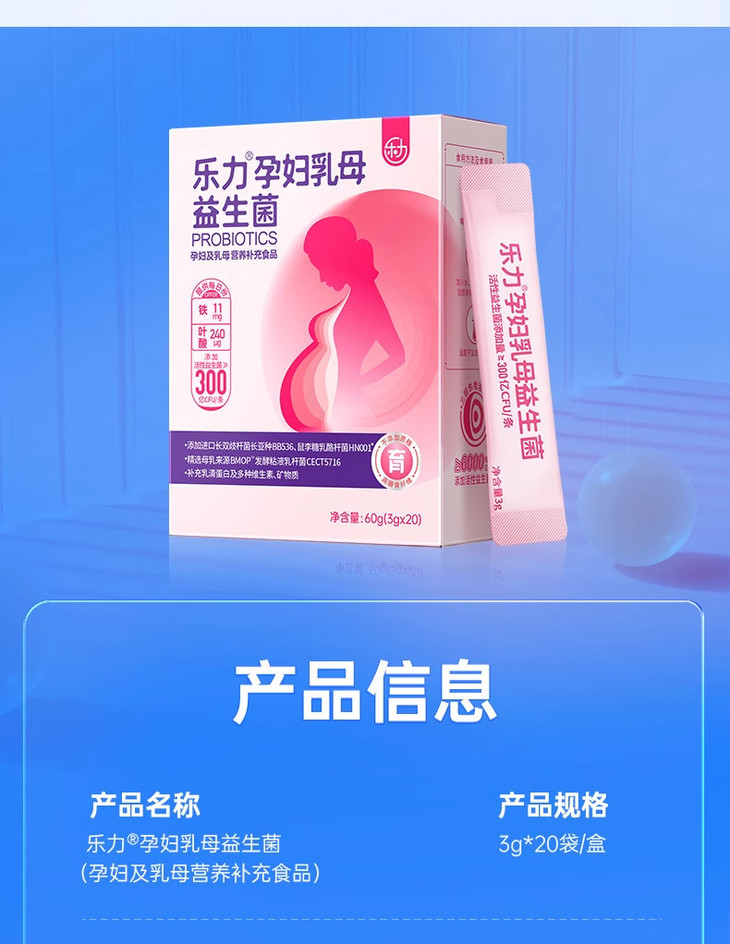 乐力孕妇乳母高活性益生菌肠胃肠道调理铁叶酸维生素矿物质营养儿童菌肠道肠胃活菌宝宝高活性益生菌