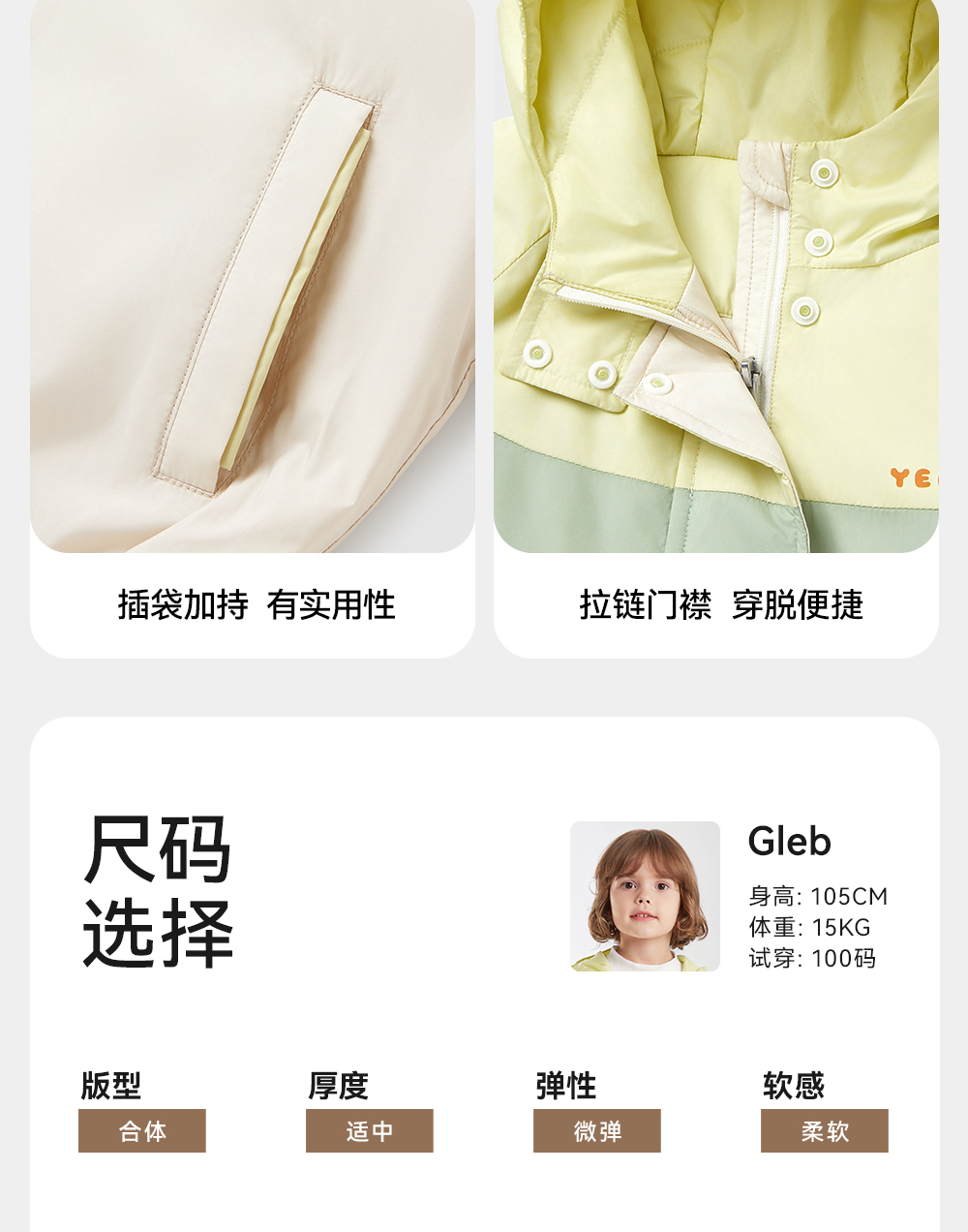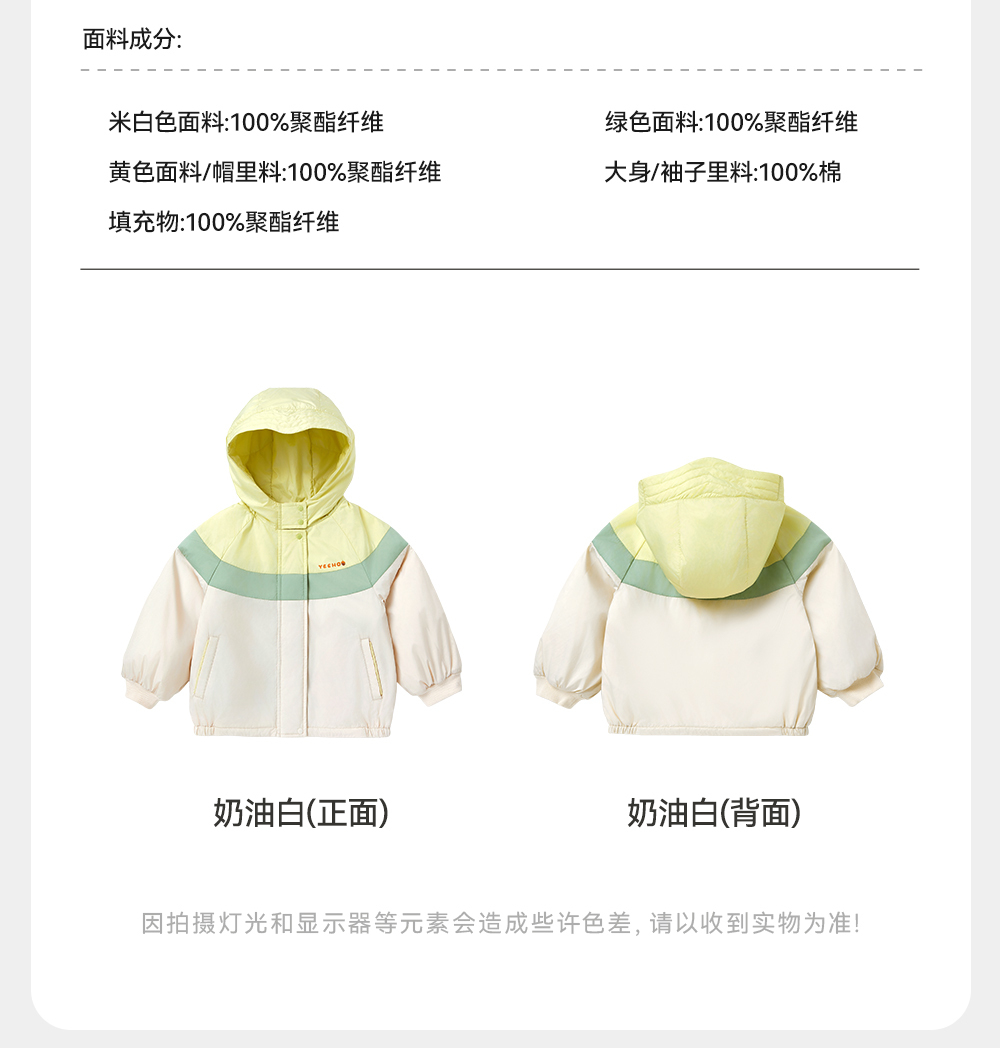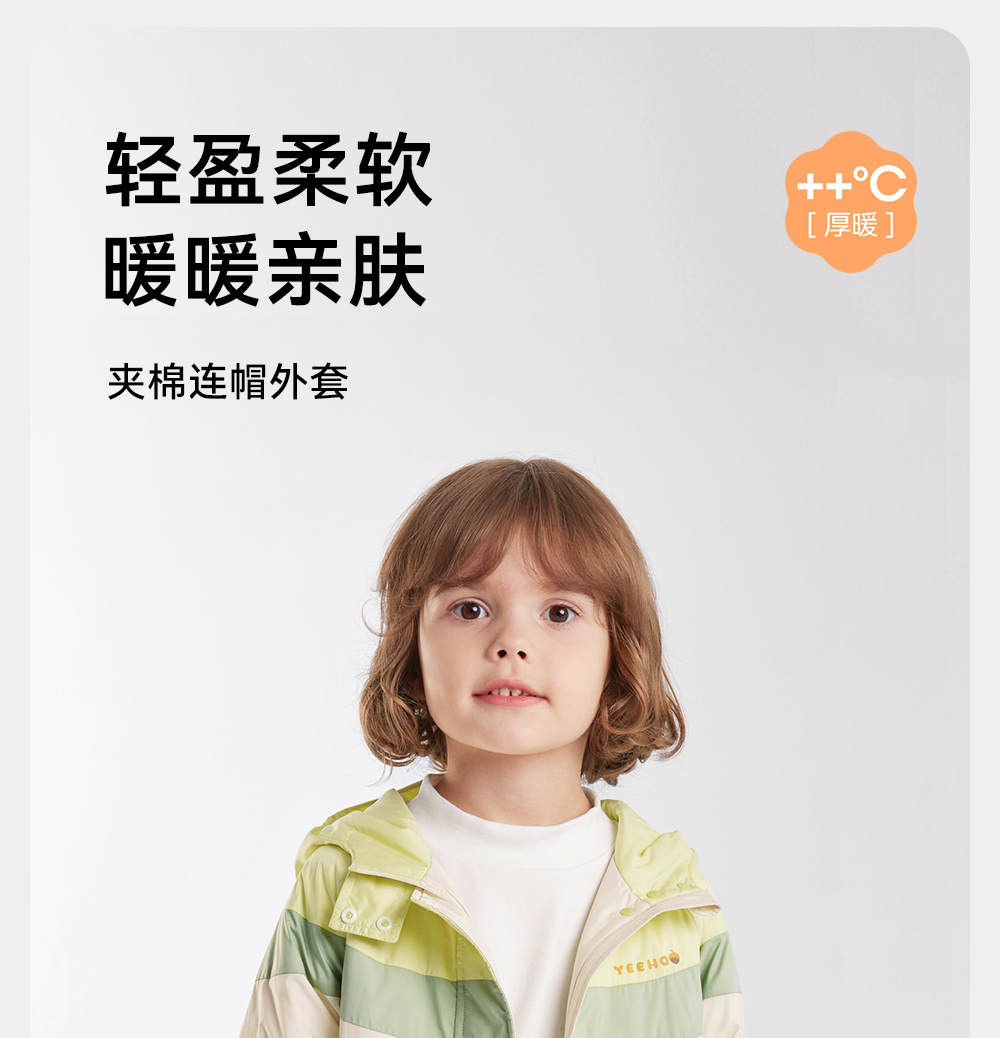 【商场同款】英氏儿童夹棉连帽外套长袖秋冬男童外套新款外套