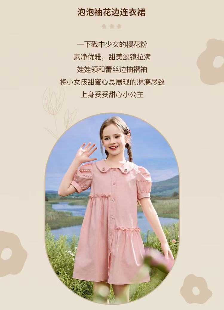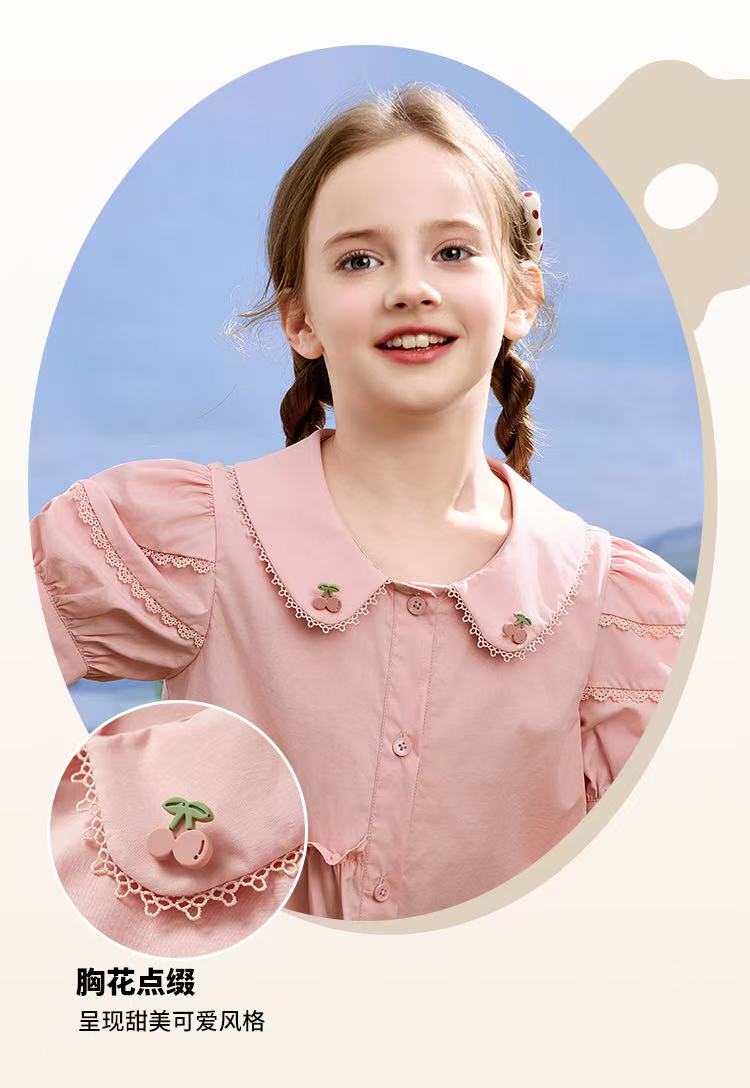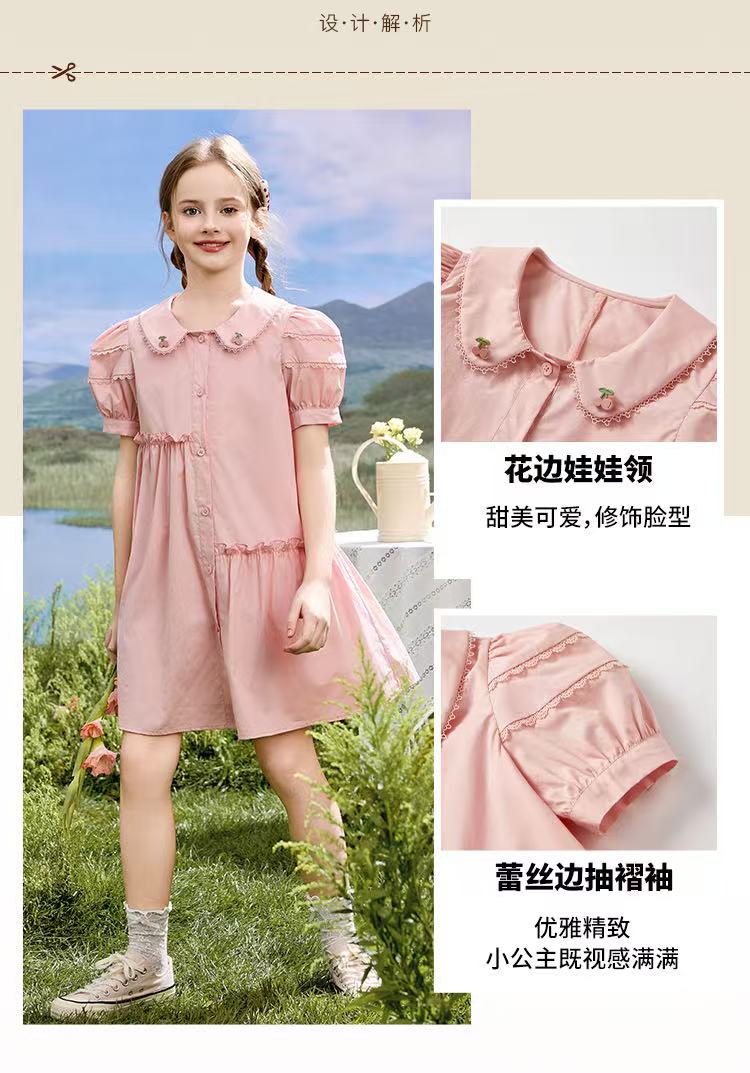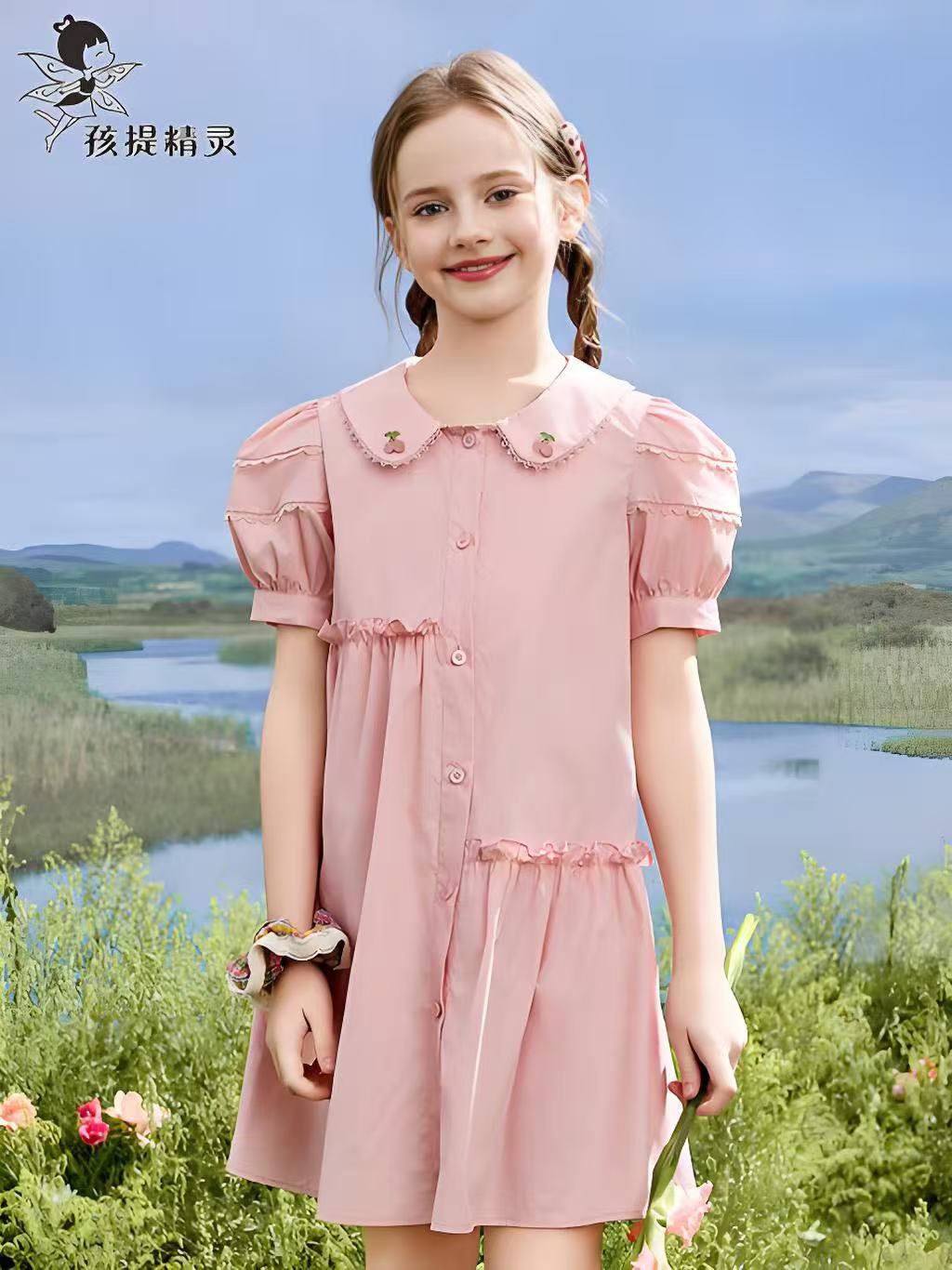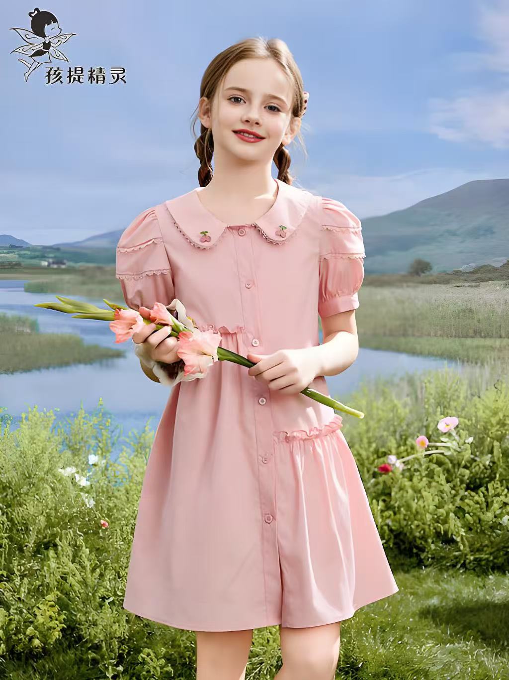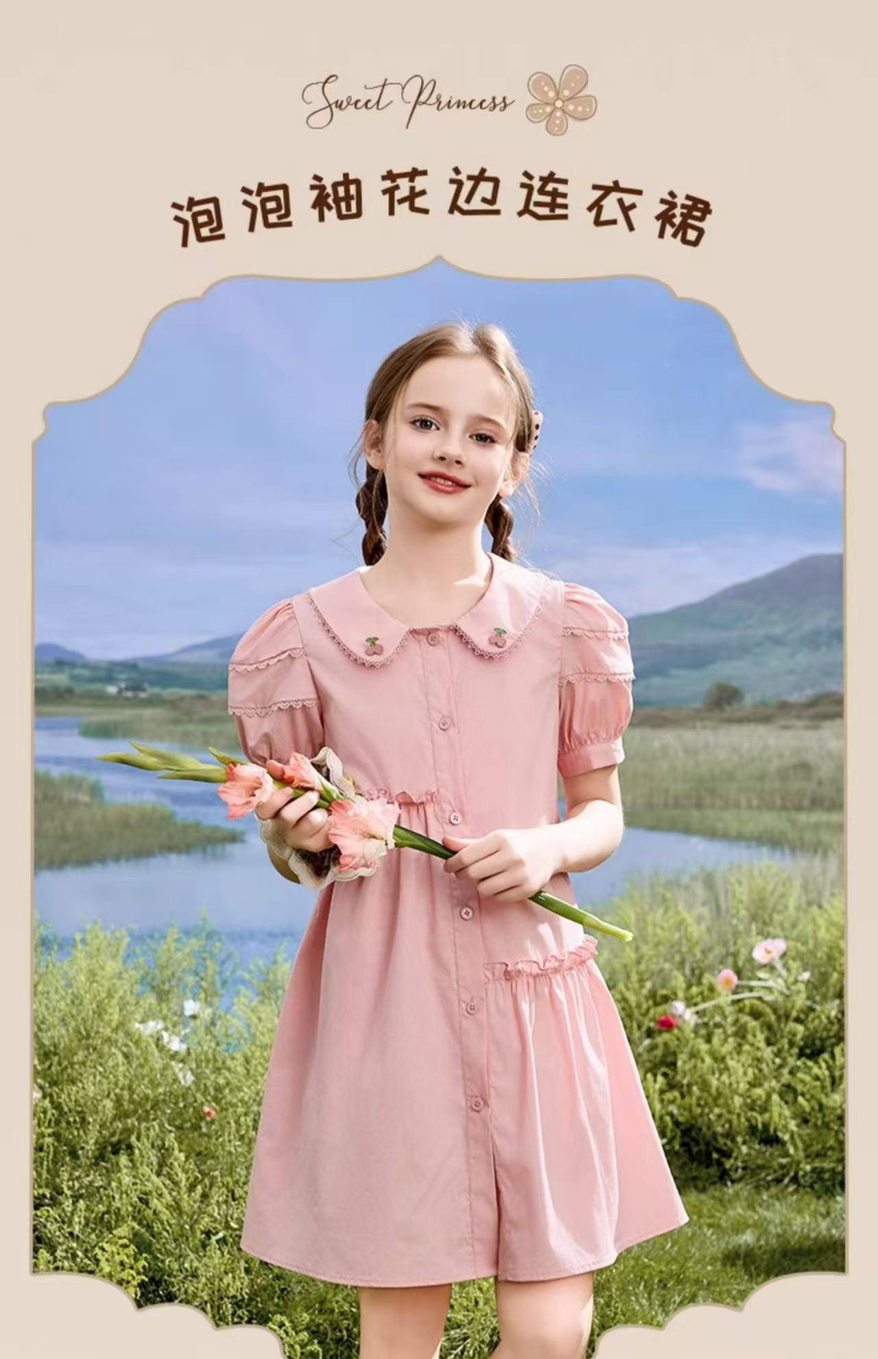 【孩提精灵】2102 粉色花边翻领童连衣裙-喜出