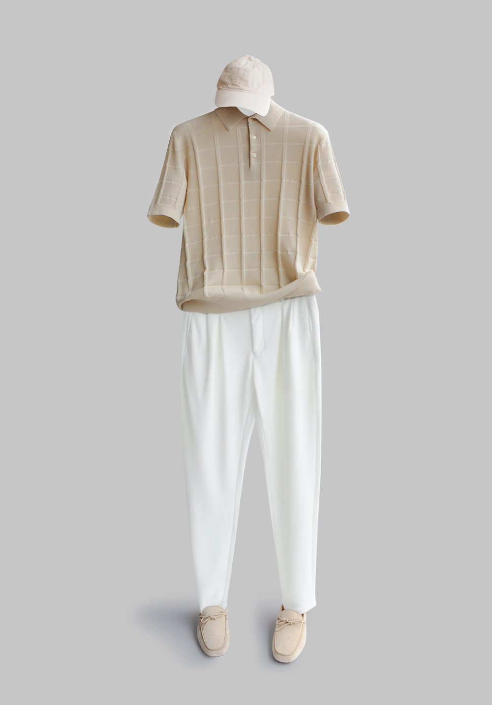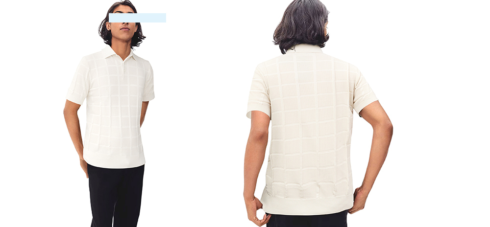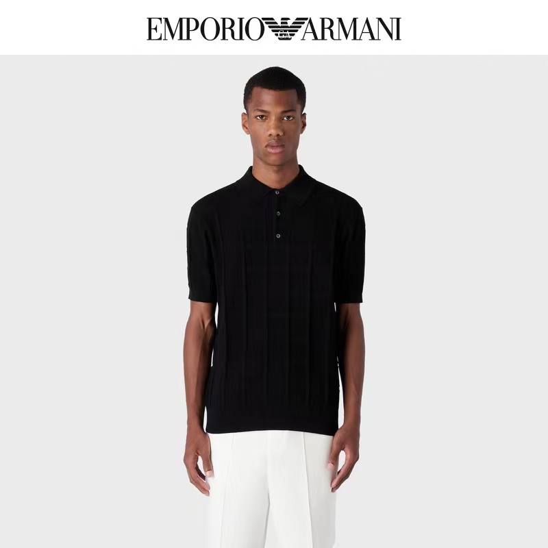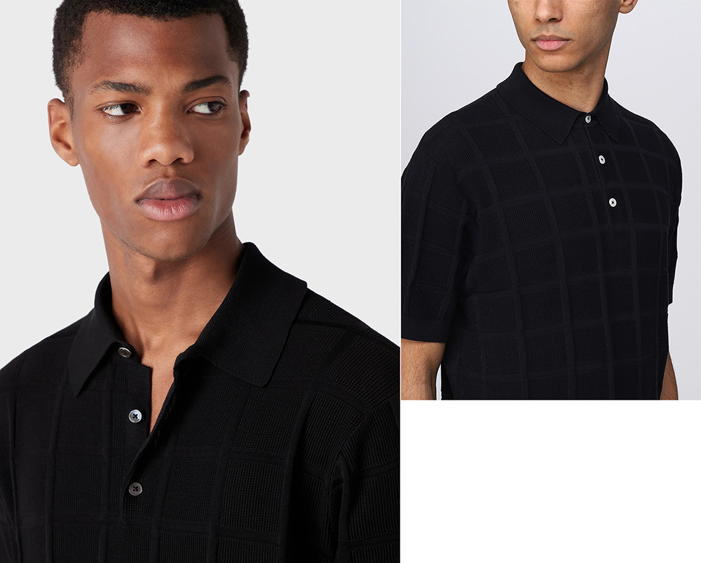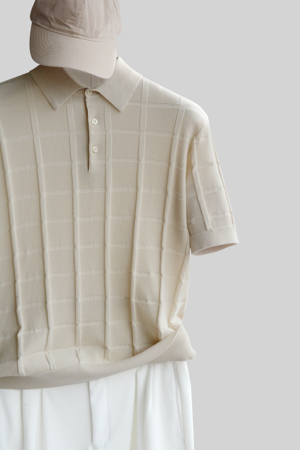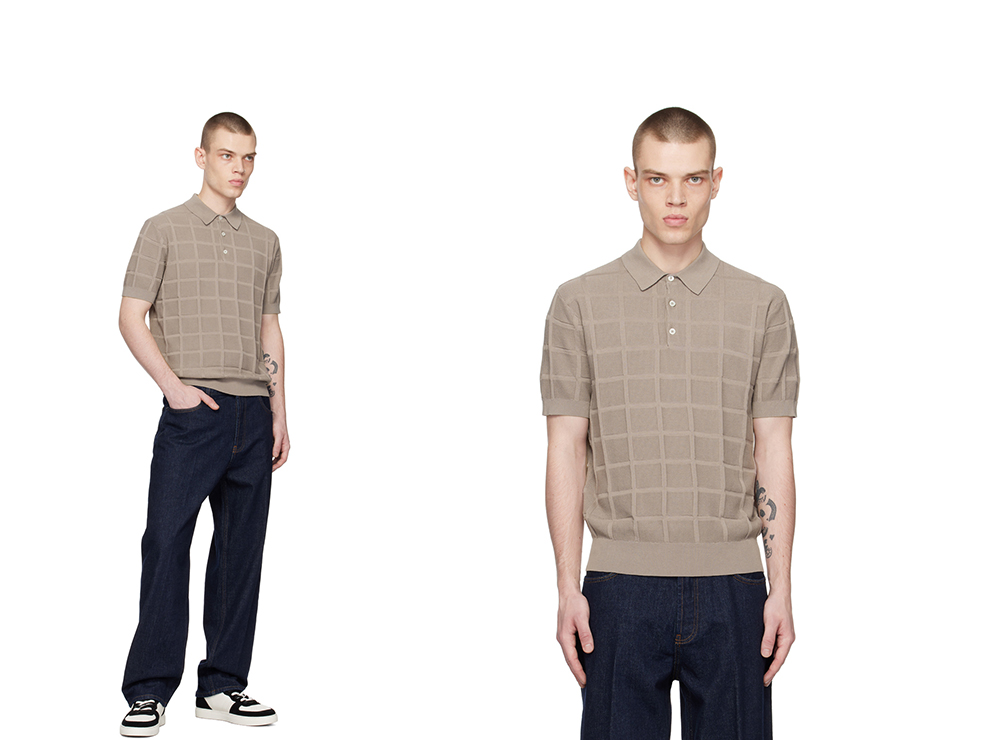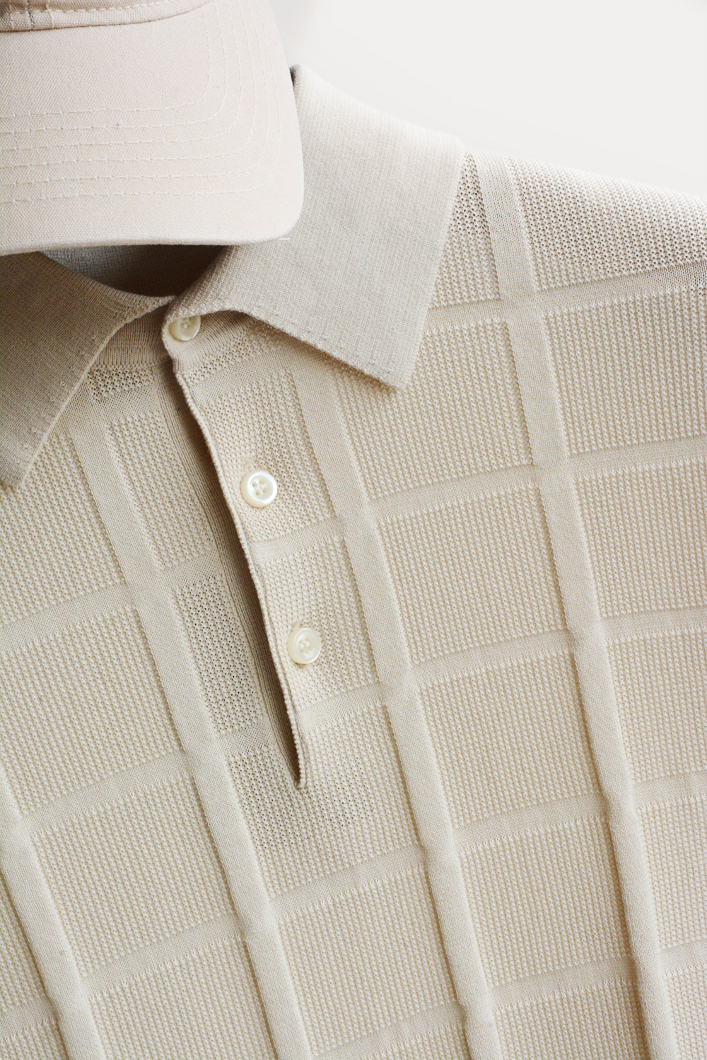 半开襟Polo版型,袖口、下摆与领口处的细致罗纹,