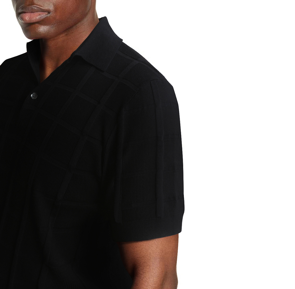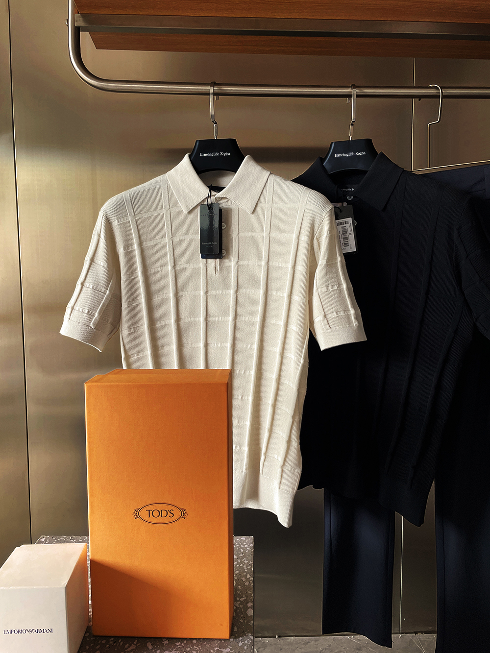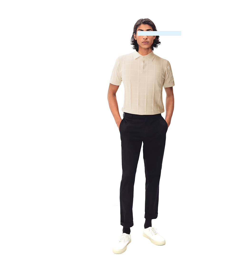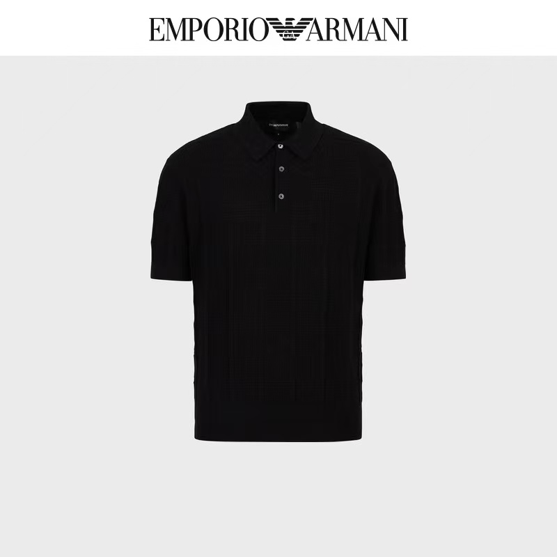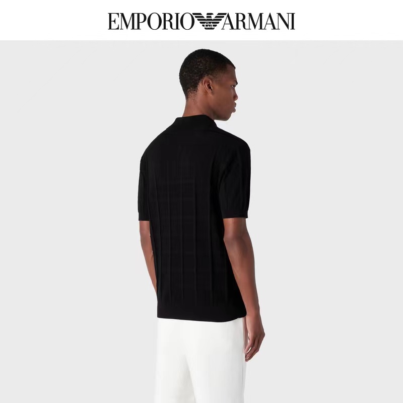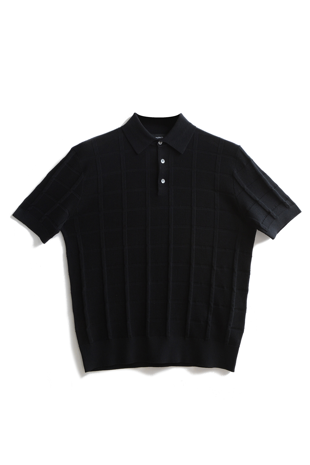 半开襟Polo版型,袖口、下摆与领口处的细致罗纹,