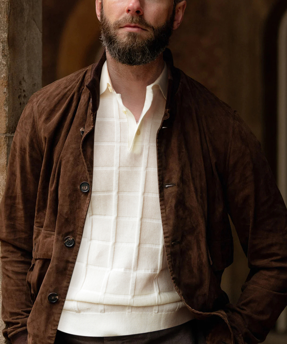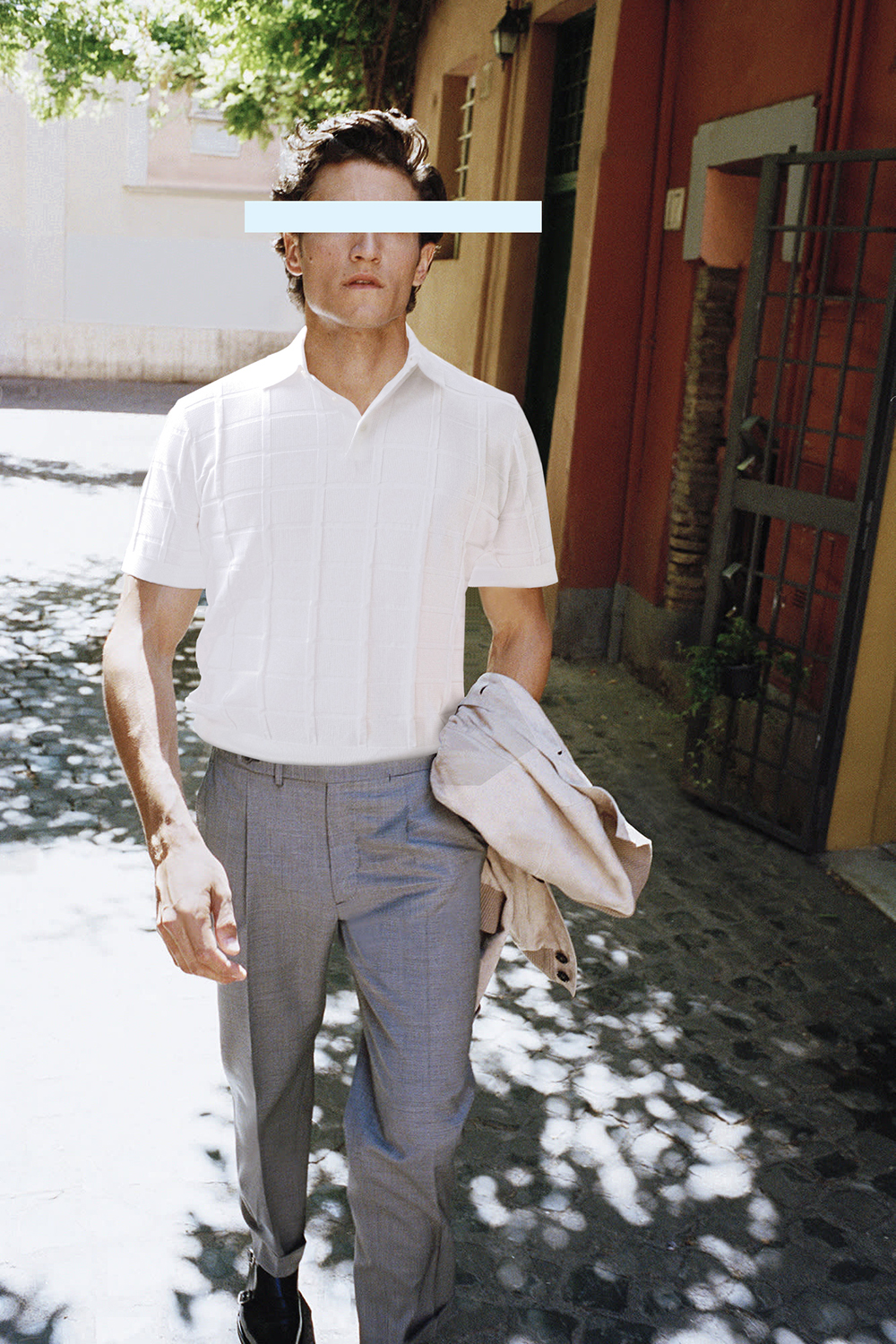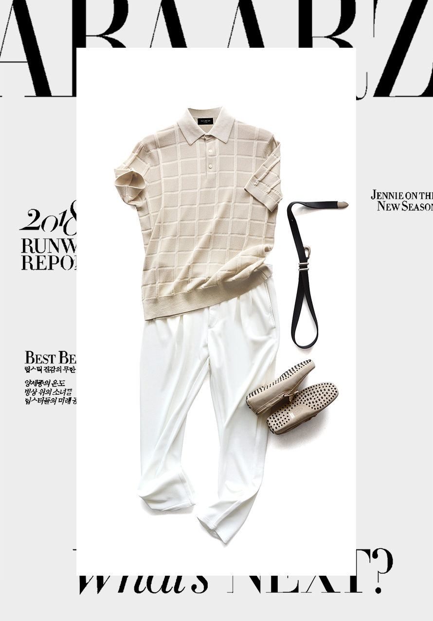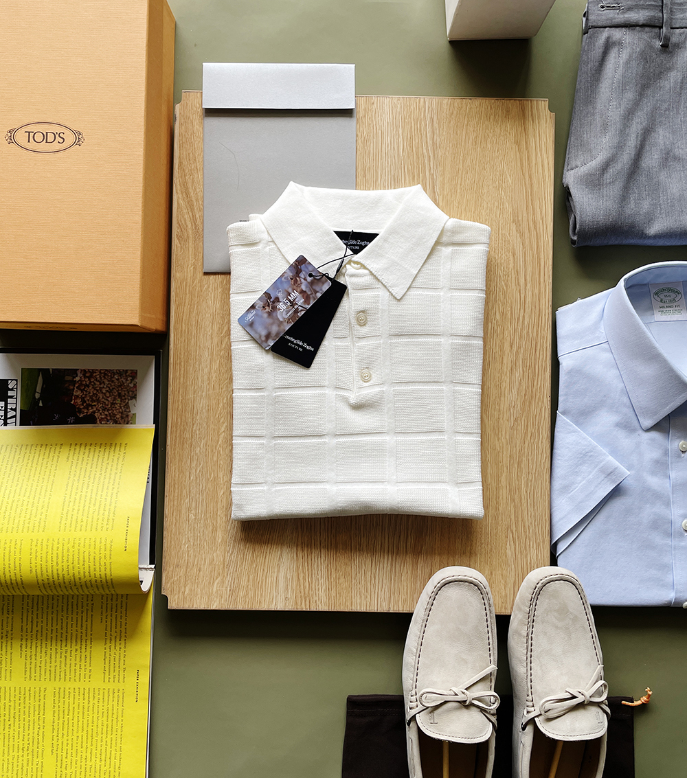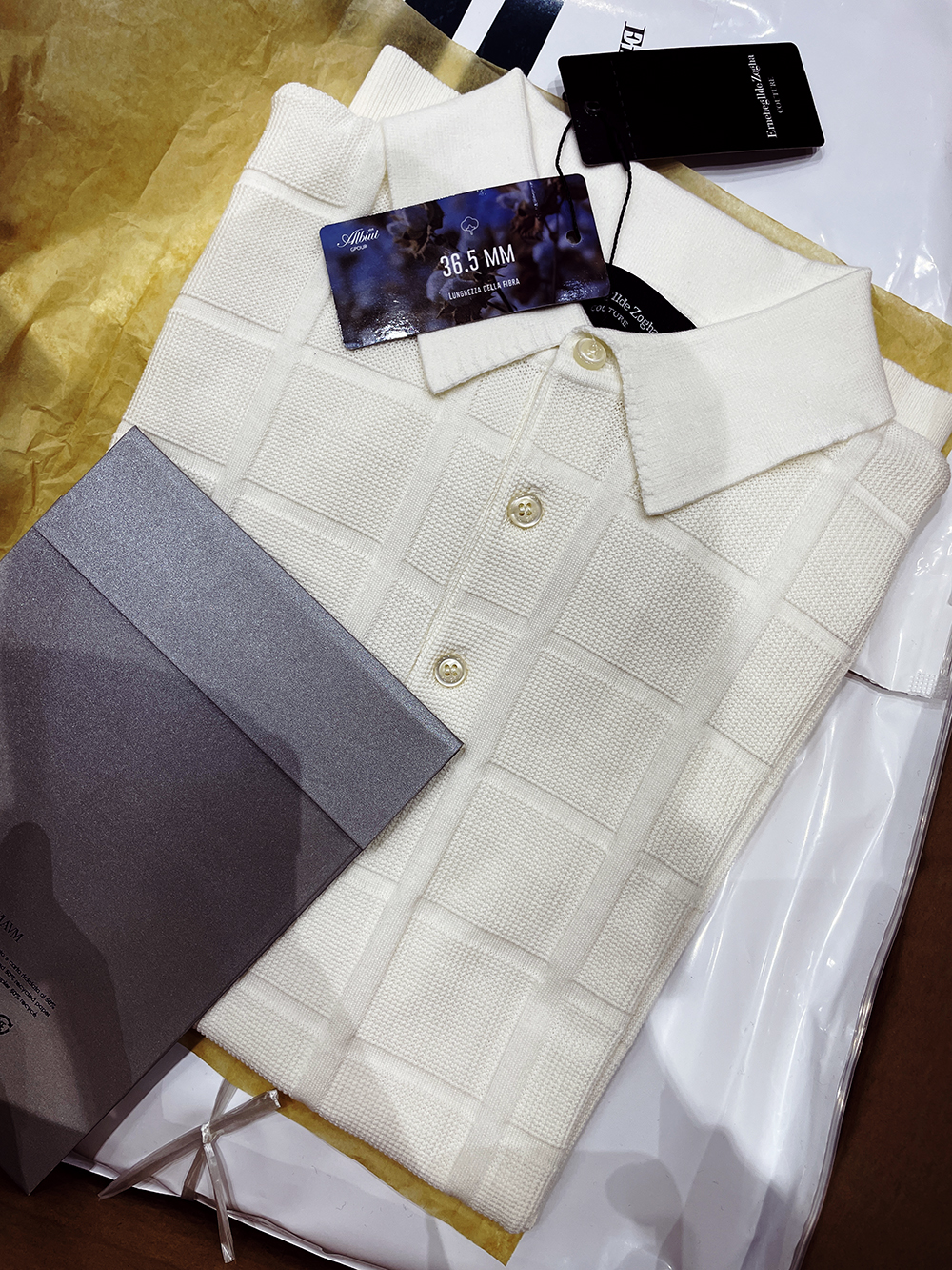 半开襟Polo版型,袖口、下摆与领口处的细致罗纹,