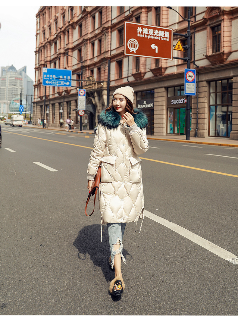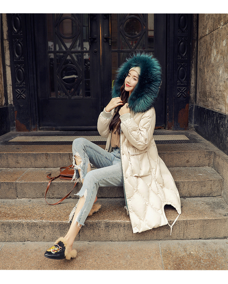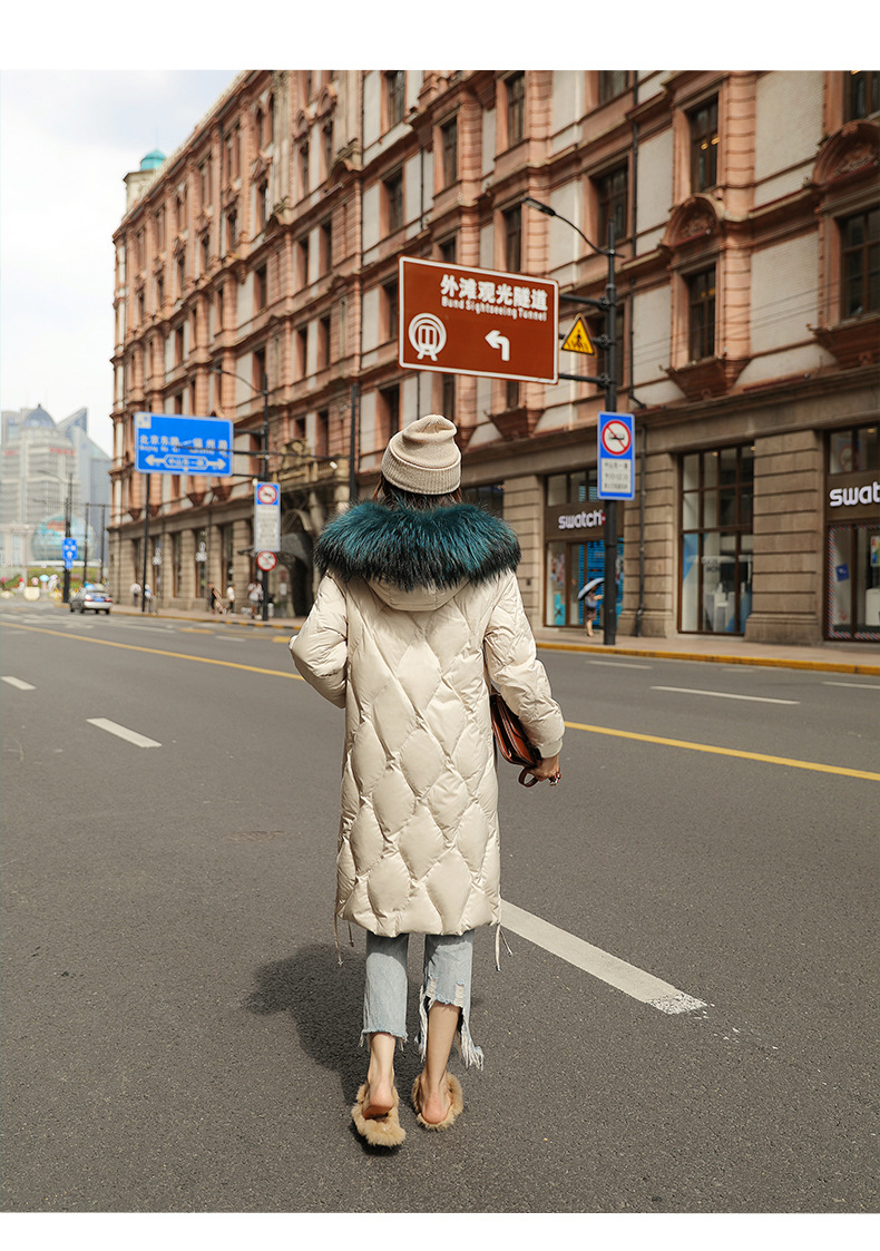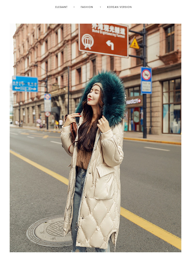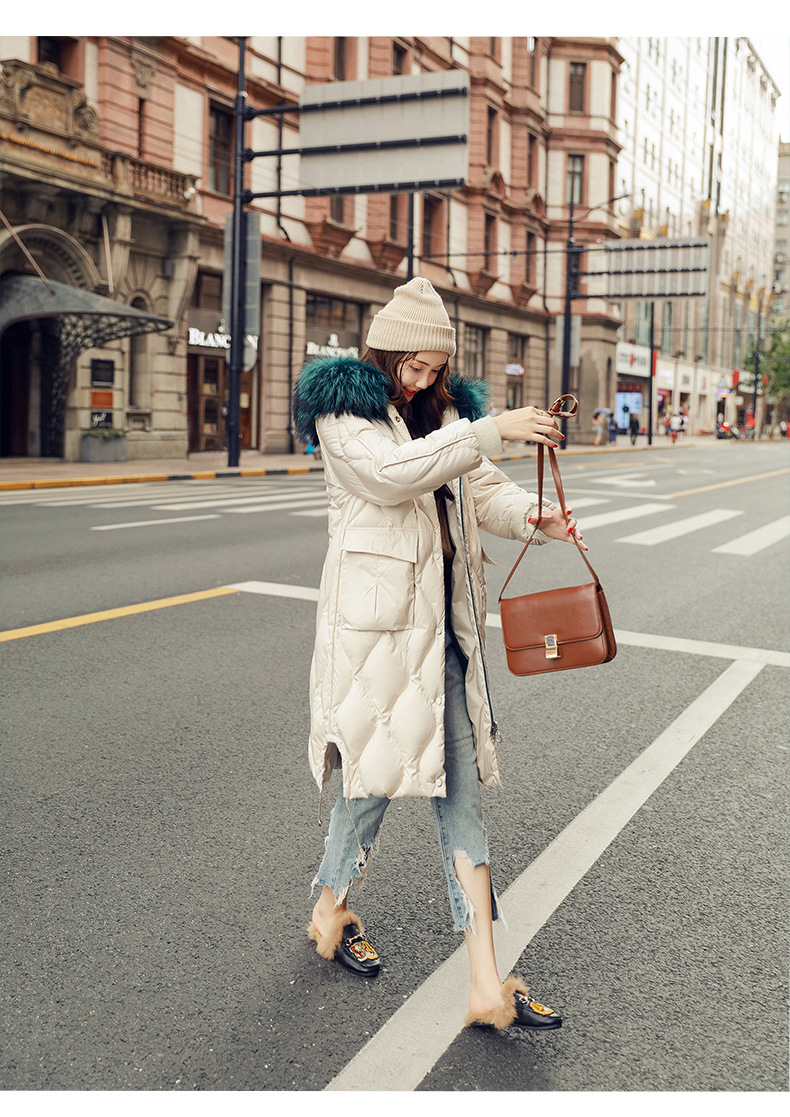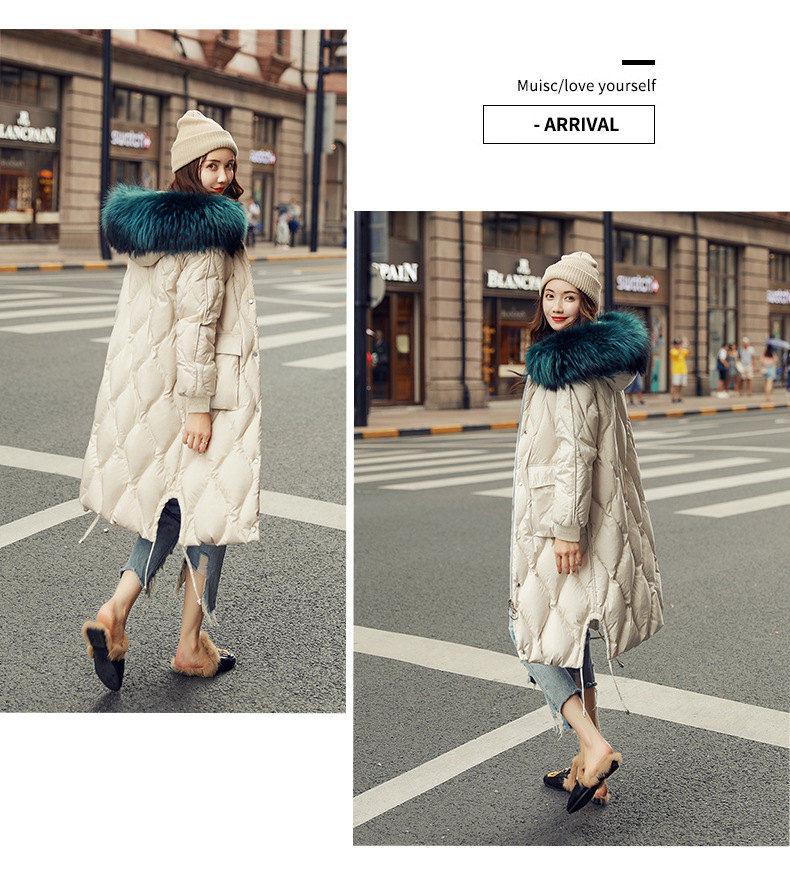 XH-冬季新款修身显瘦中长款加厚保暖白鸭绒外套