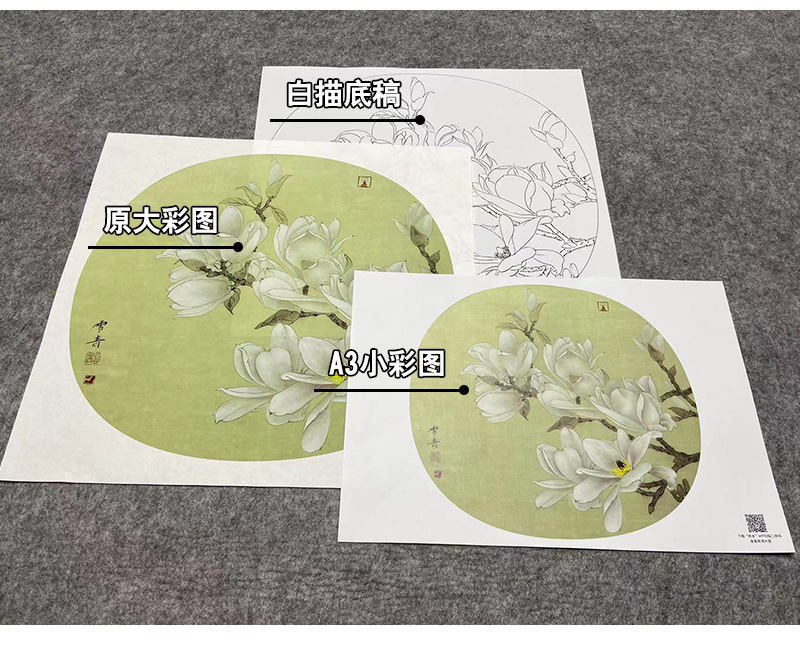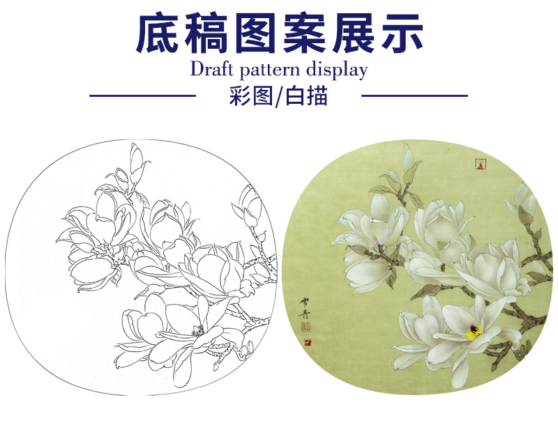 【大彩图】龚雪青工笔画白描底稿小品《玉兰花》临摹勾线花鸟线稿XQ13
