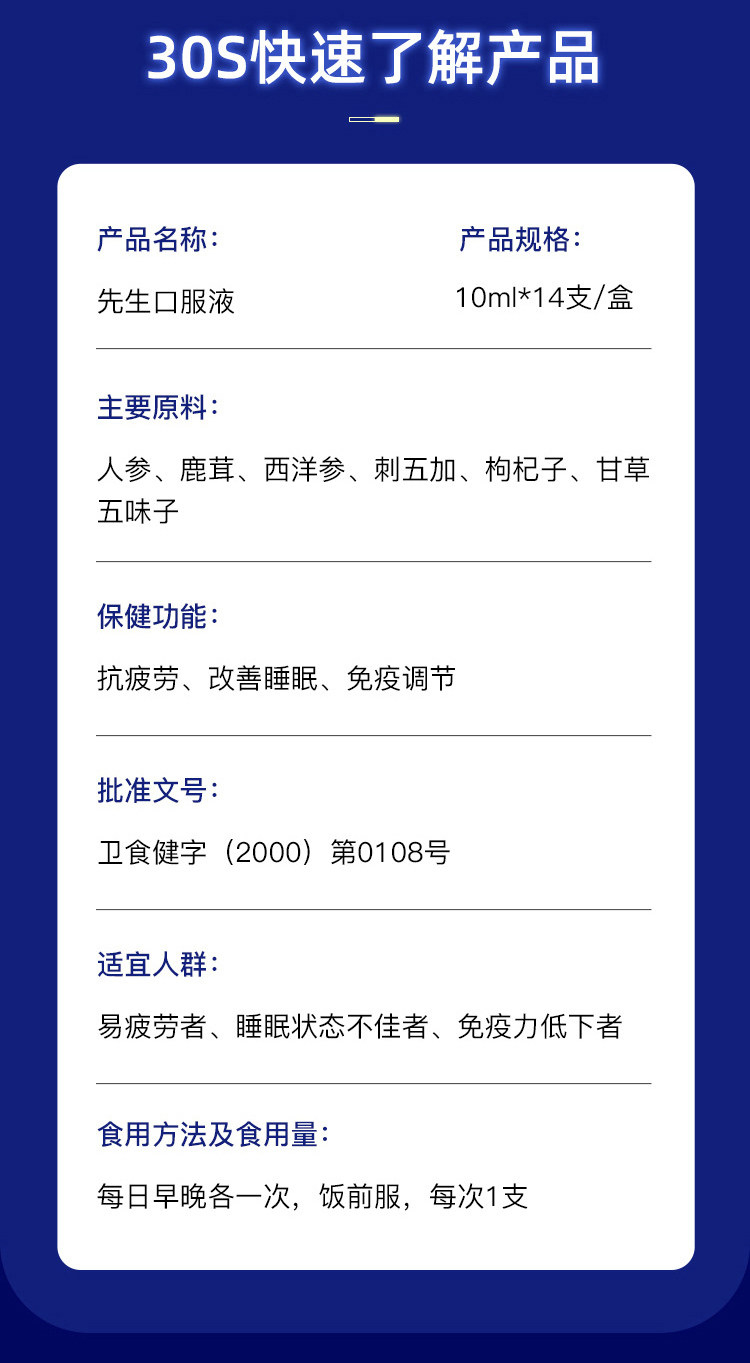 【抗疲劳 改善睡眠 免疫调节 蓝帽认证】振东集团五和医养堂先生口服液 始建于1996年 1盒【14支】