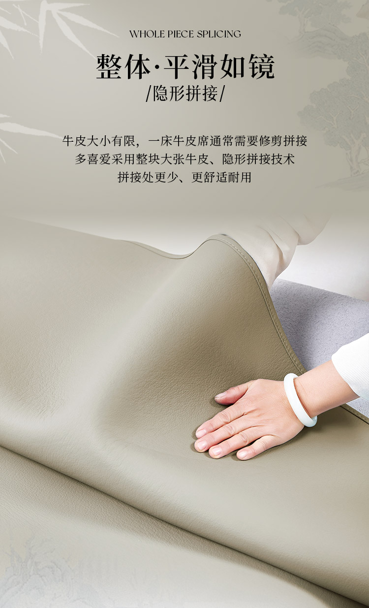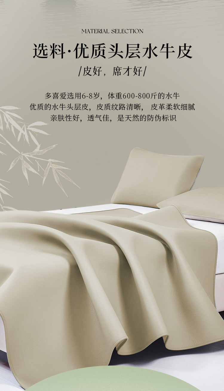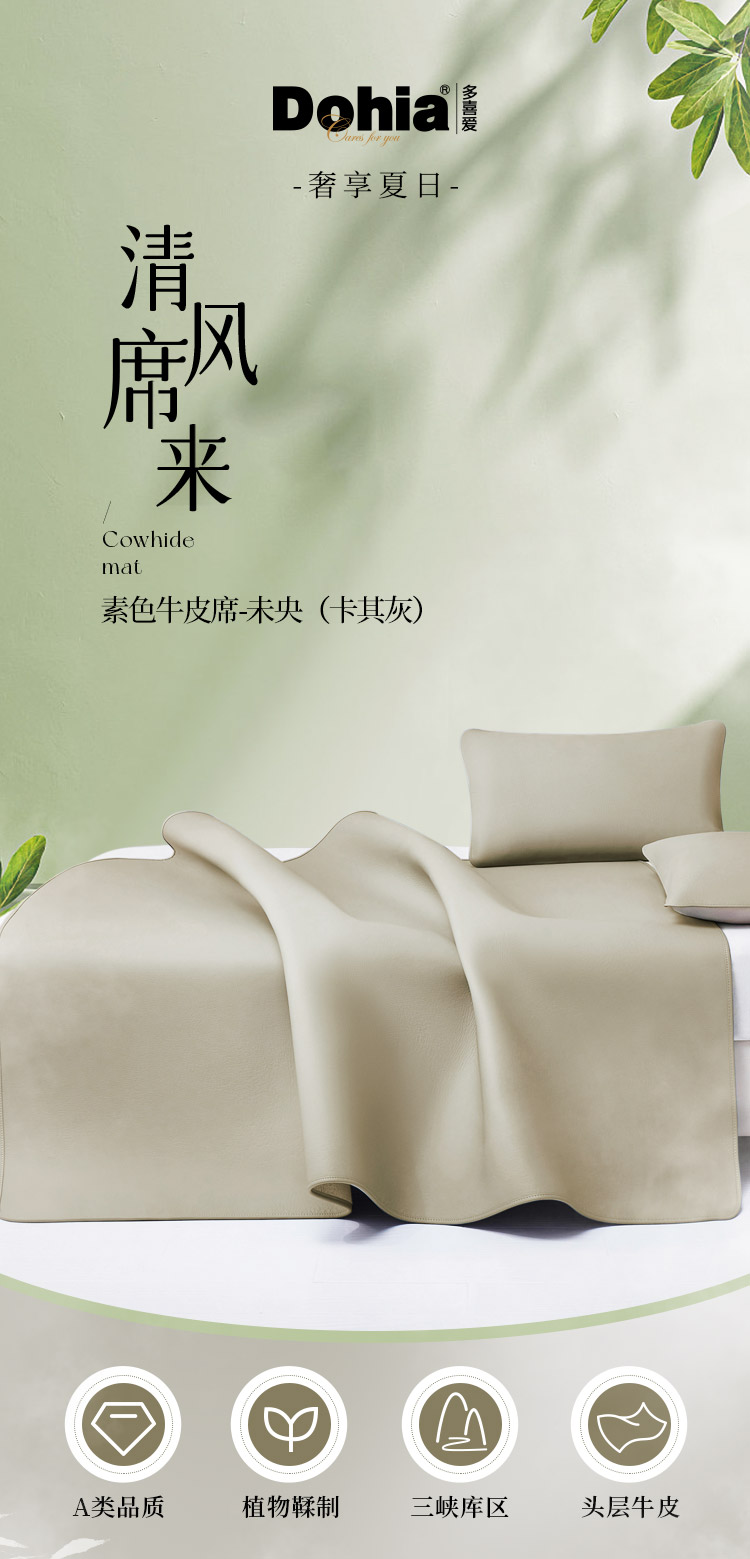 多喜爱 素色牛皮席-未央(卡其灰)席子 A类品质 植物鞣制 三峡牛皮 头层牛皮 58道工序 整张牛皮 包边工艺