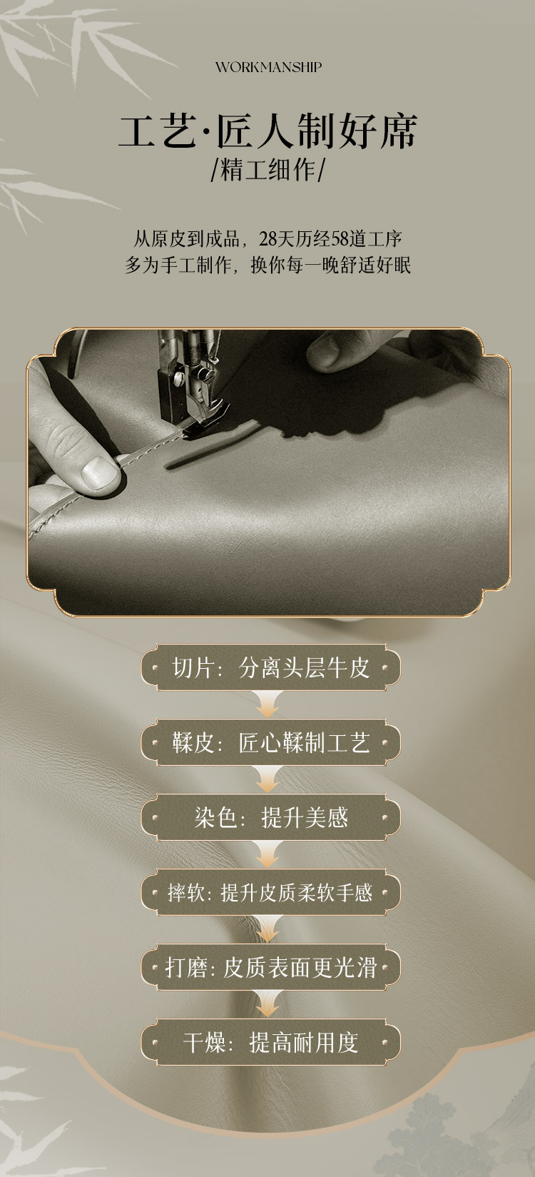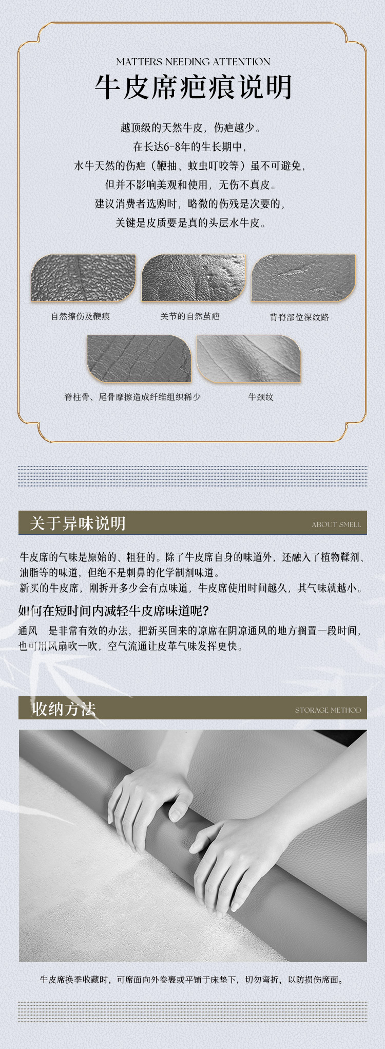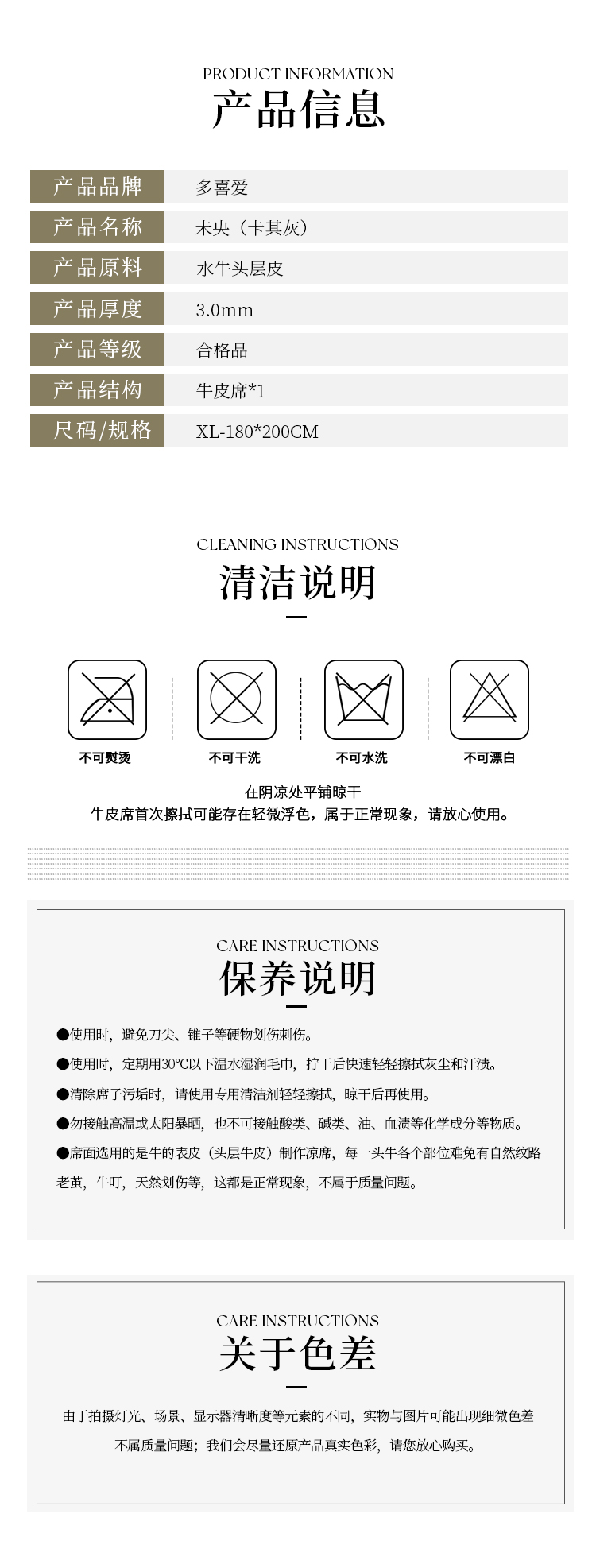 多喜爱 素色牛皮席-未央(卡其灰)席子 A类品质 植物鞣制 三峡牛皮 头层牛皮 58道工序 整张牛皮 包边工艺