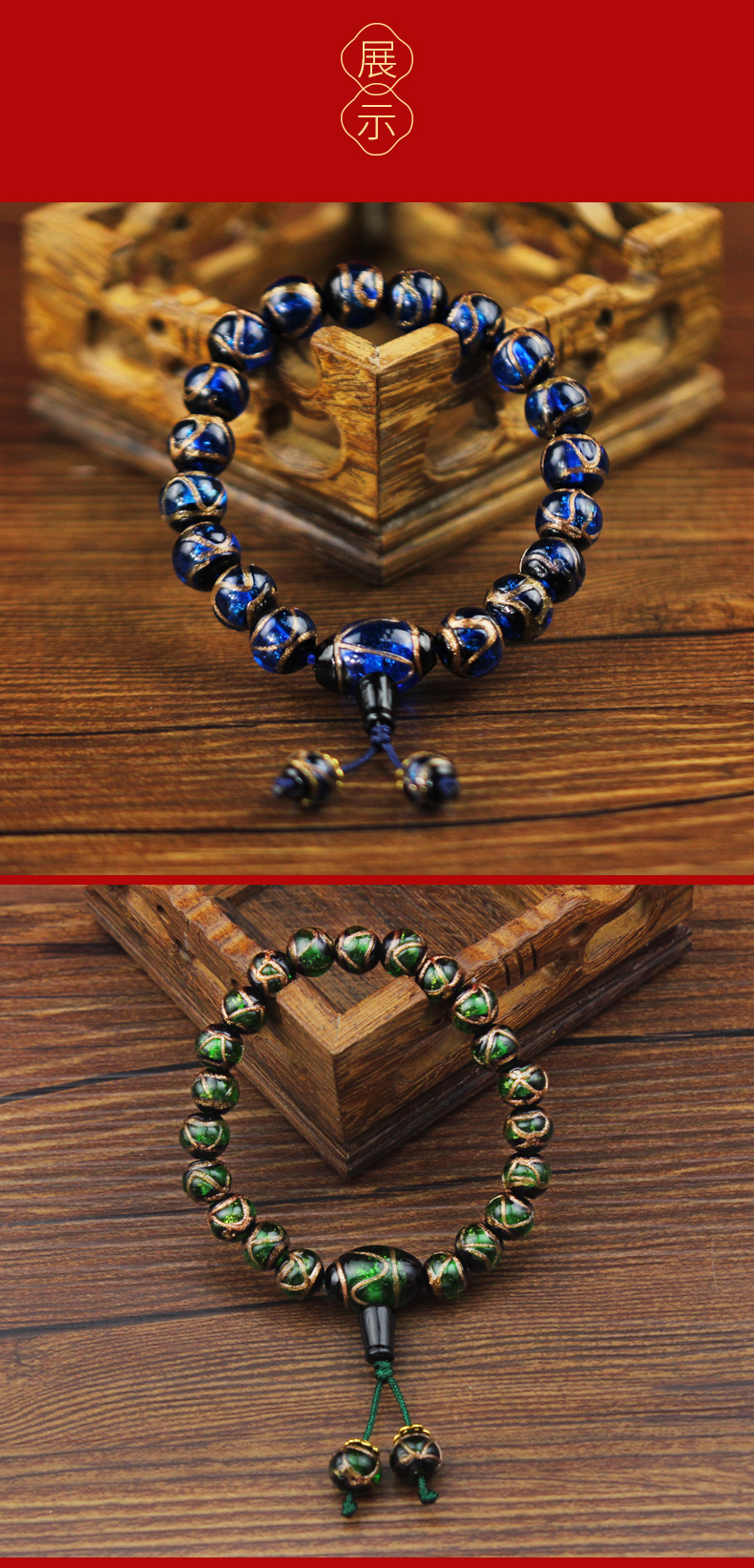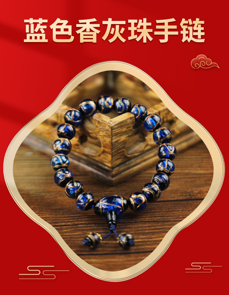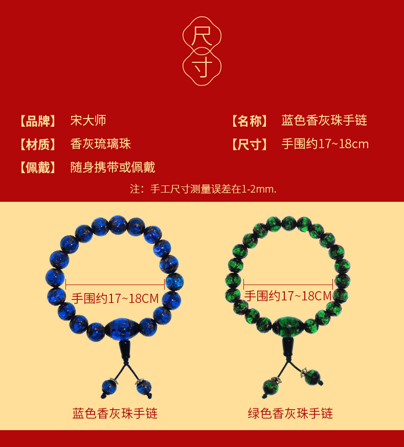 宋韶光大师 三通款 蓝色绿色黄色香灰琉璃珠手链 情侣饰物