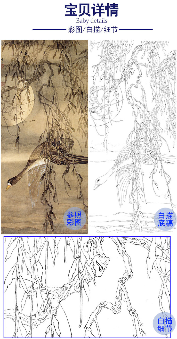 陈之佛竖幅工笔花鸟白描底稿《寒月孤雁》-多种白描尺寸可选-QA23