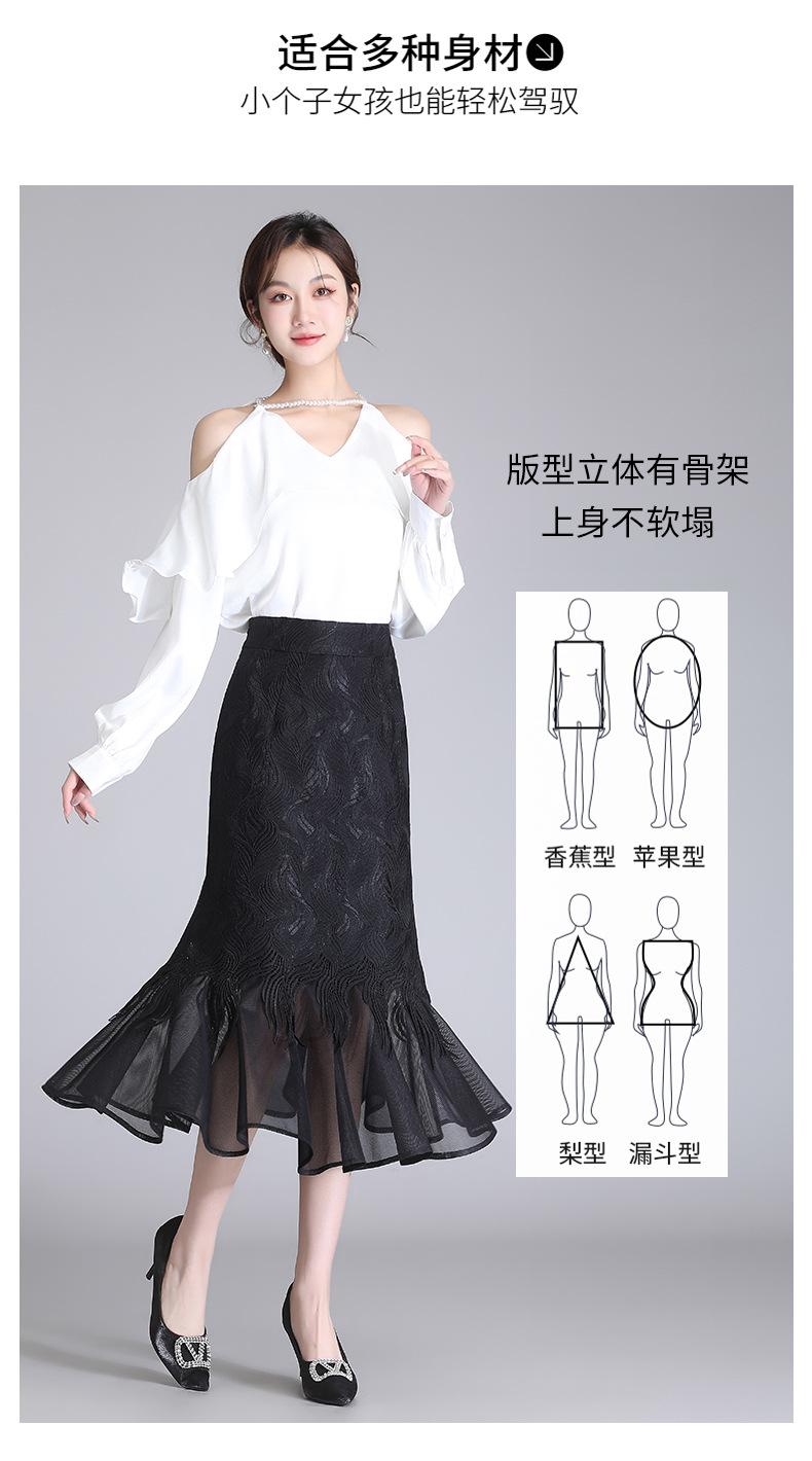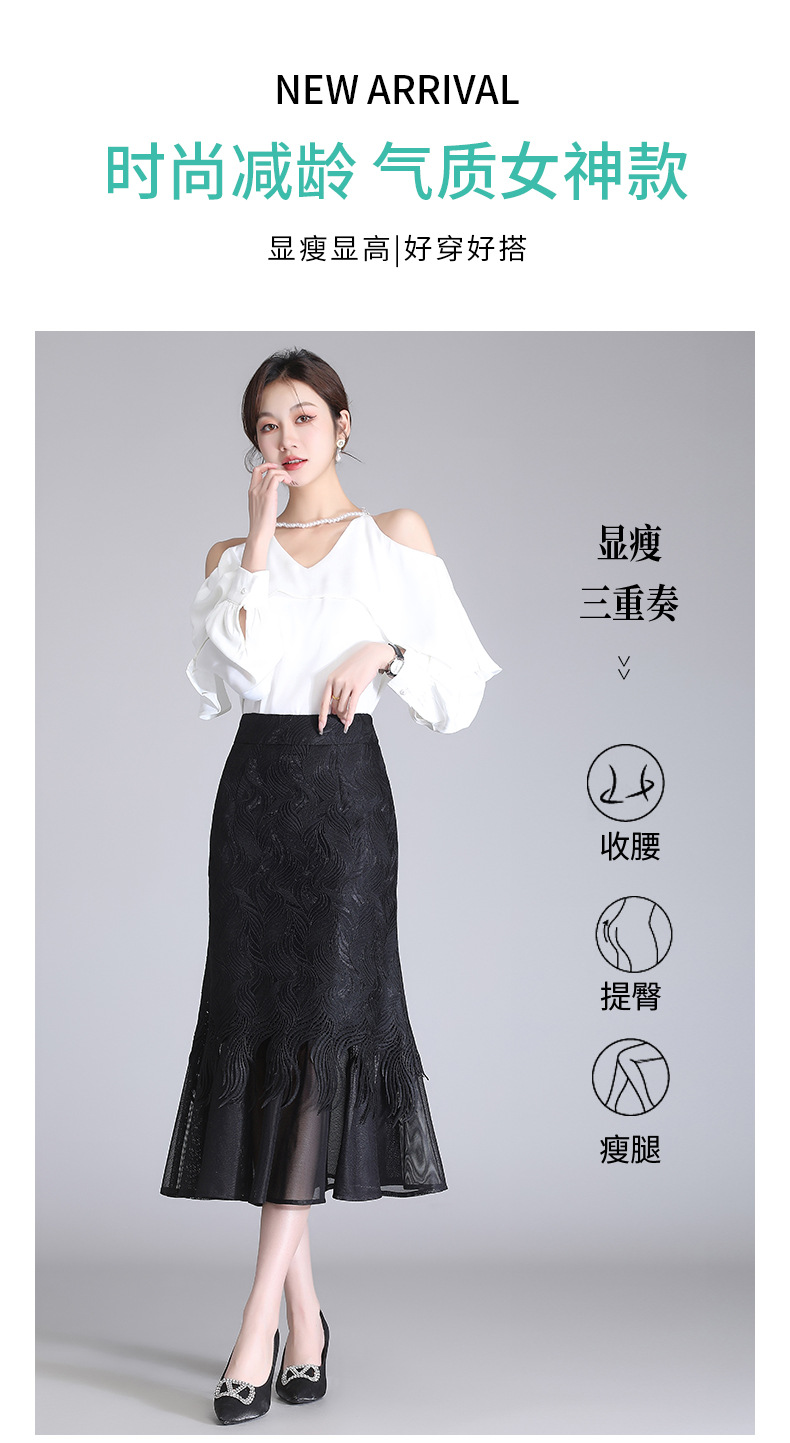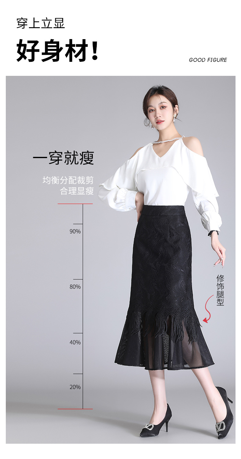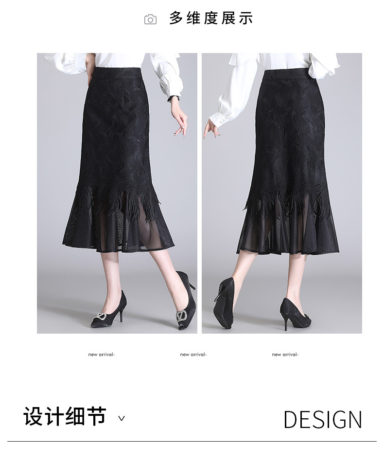 YY-2305蕾丝鱼尾半身裙女春季2023新款高腰显瘦中长款网纱边包臀裙一步裙