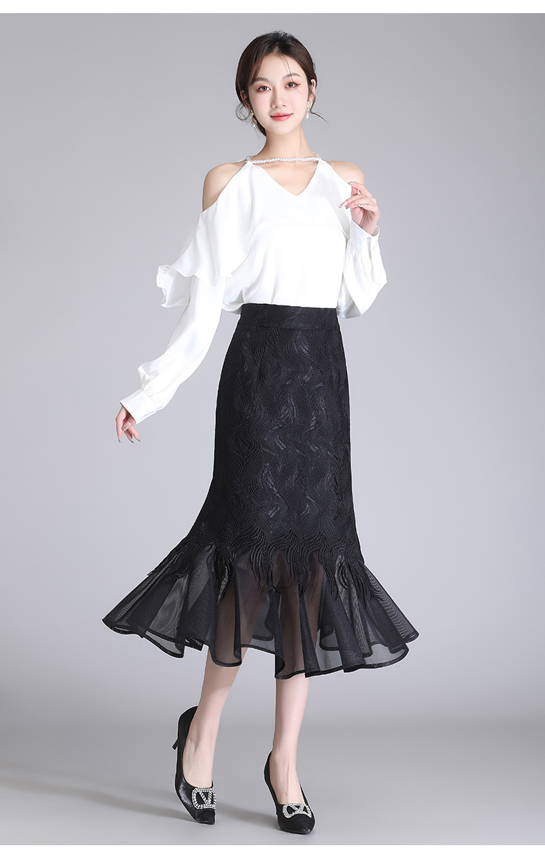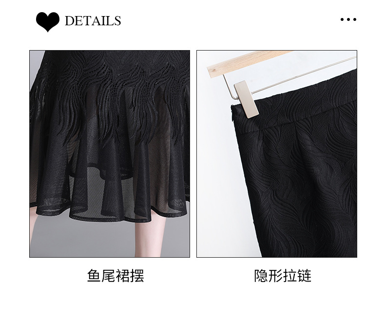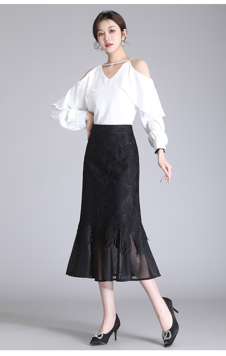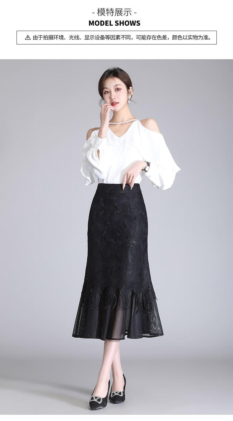 YY-2305蕾丝鱼尾半身裙女春季2023新款高腰显瘦中长款网纱边包臀裙一步裙