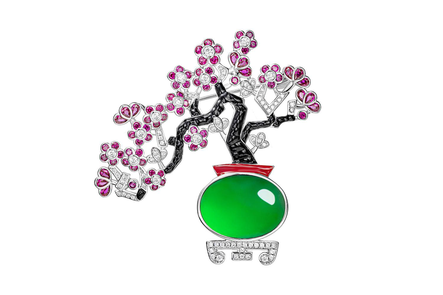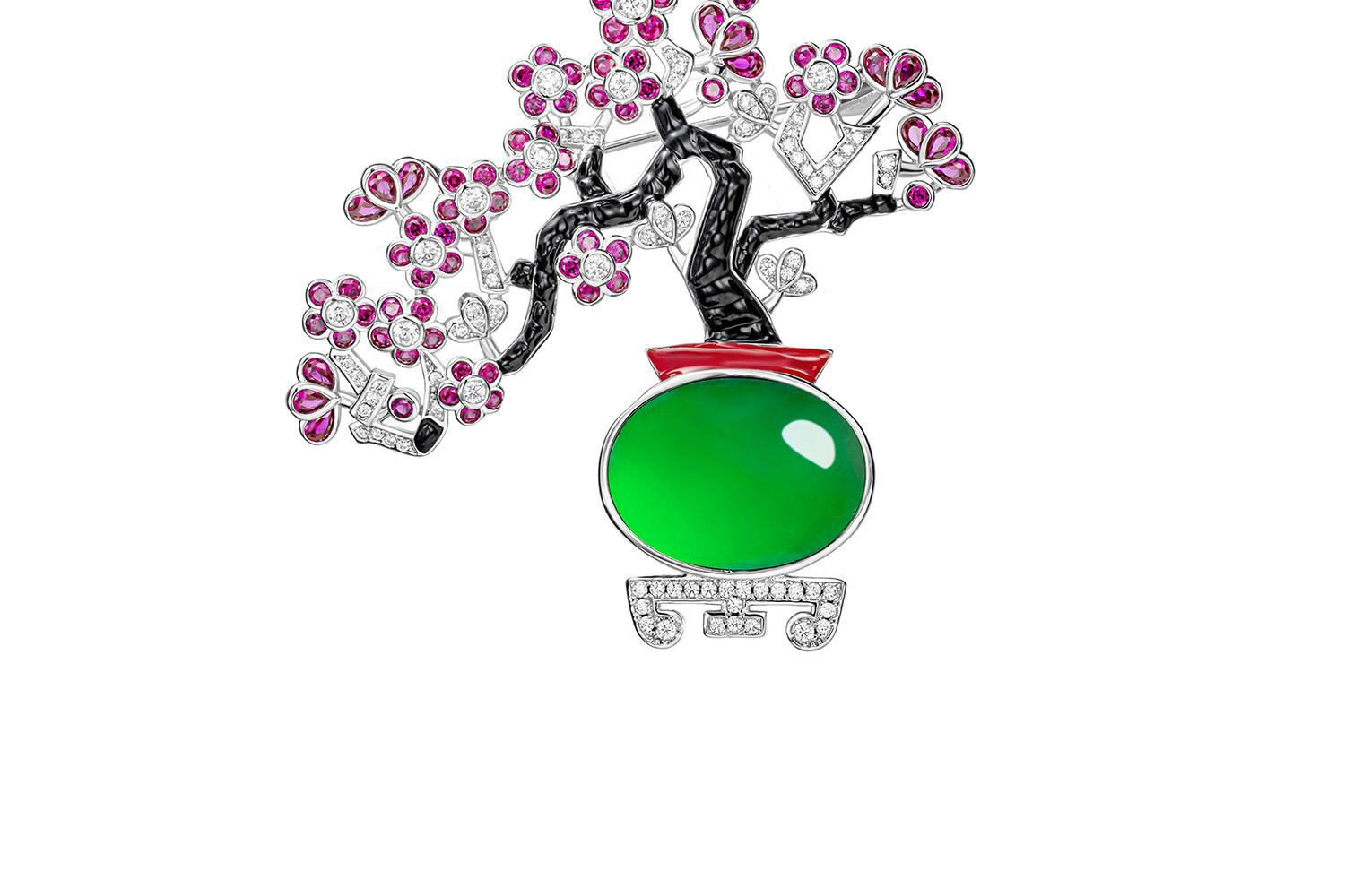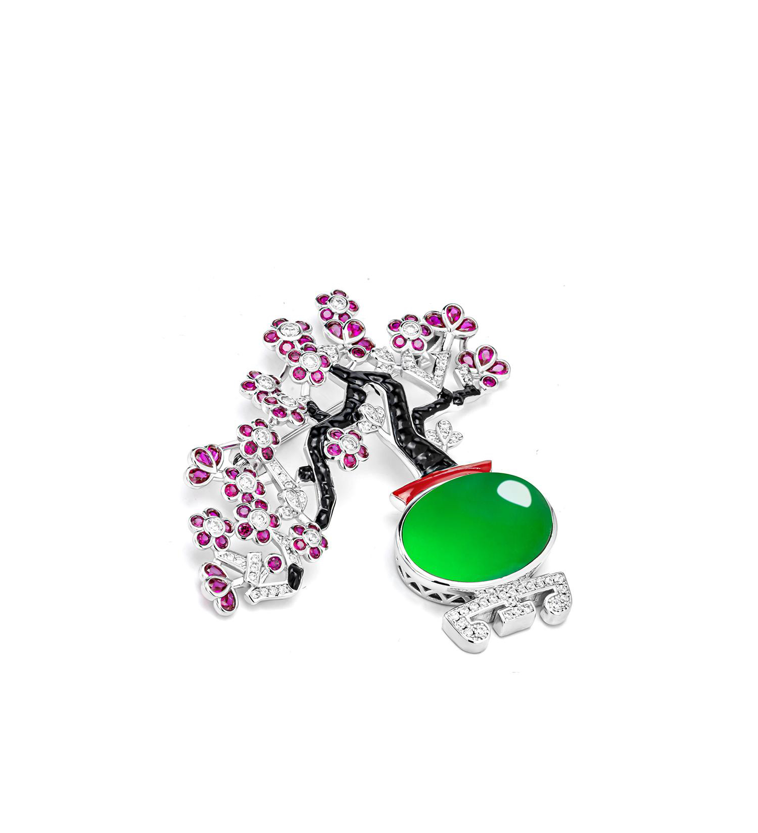 GAONAS 玲珑春色 中式盆景设计绿胸针11552ZG