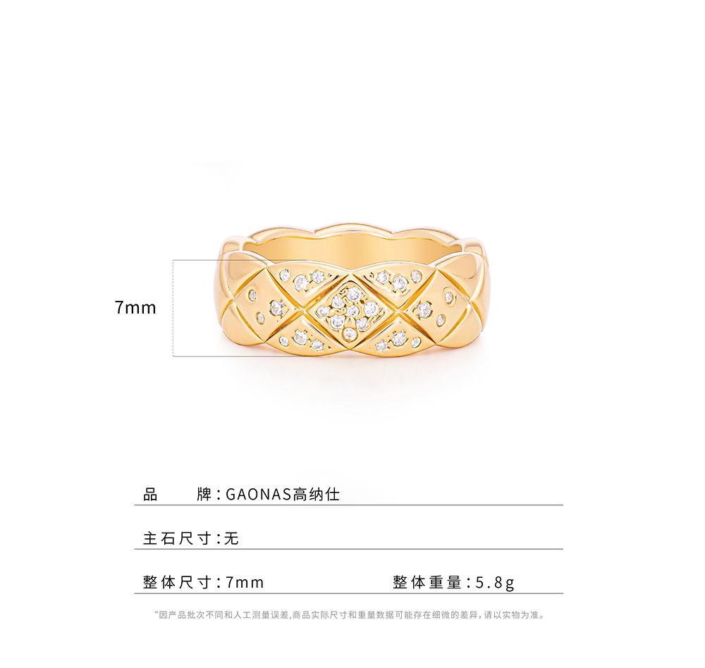 GAONAS 欧美时尚潮流金色设计戒指11007JRG