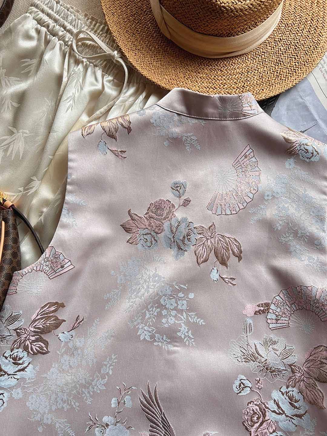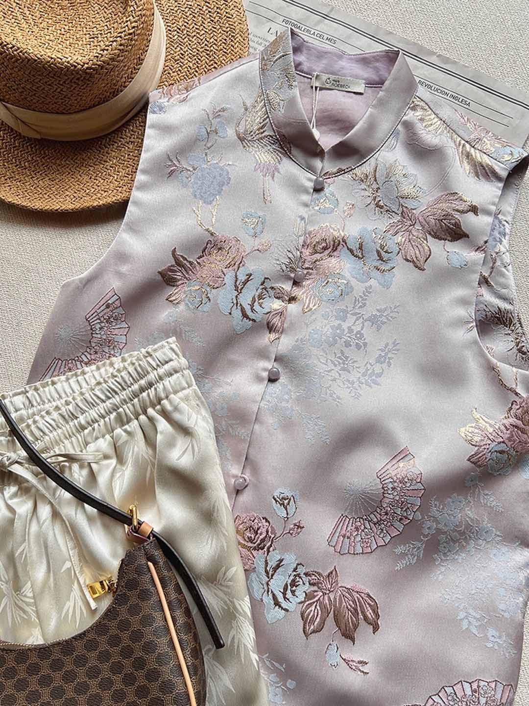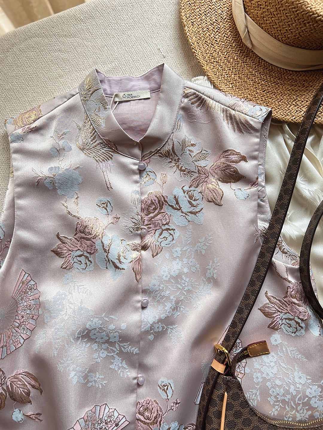 顺丰包邮洛诗琳40534轻奢新中式安稳提花小立领国风马甲101
