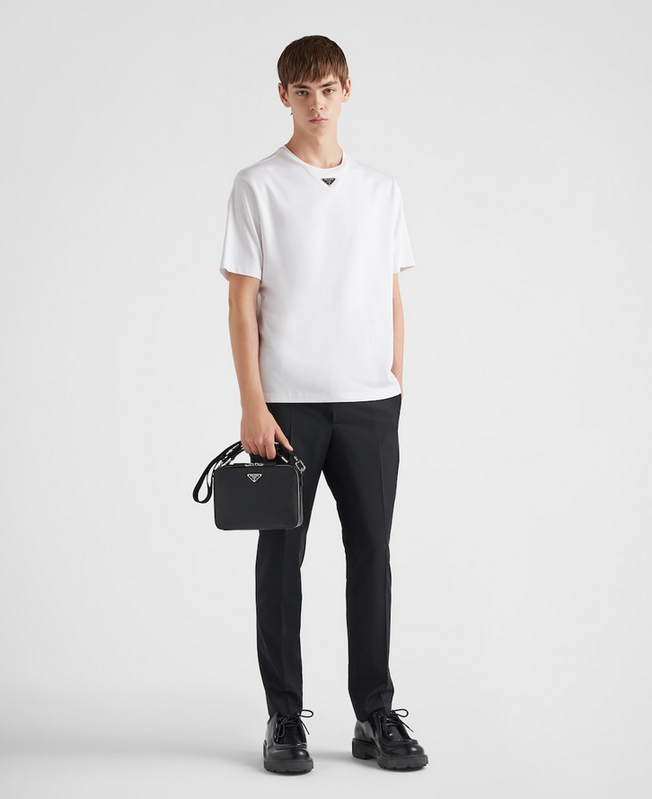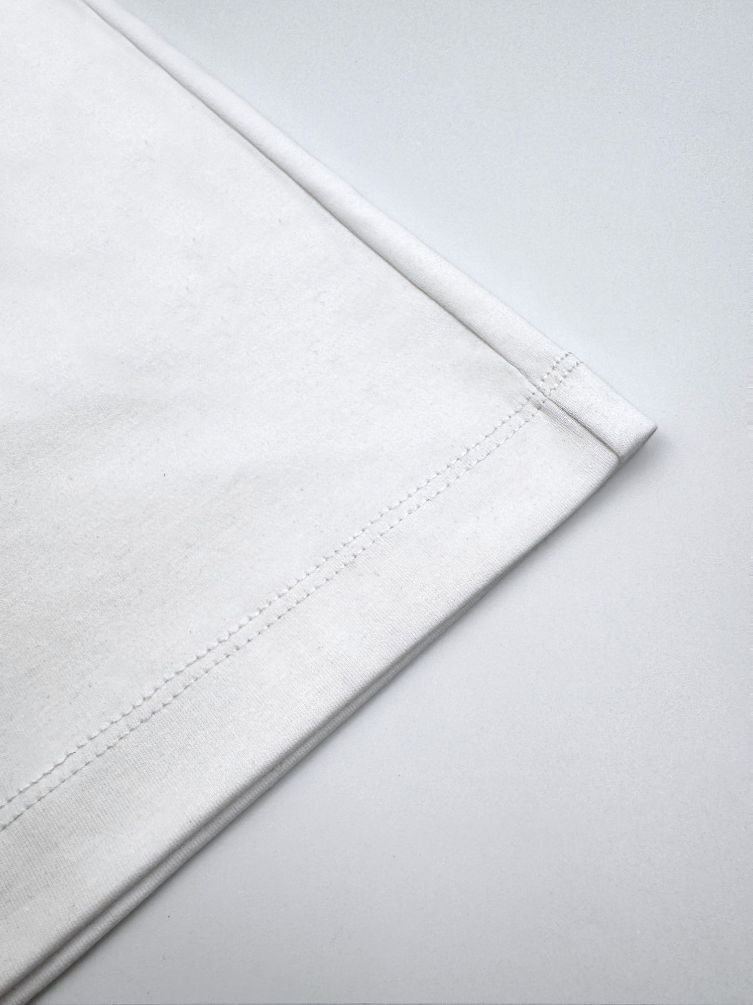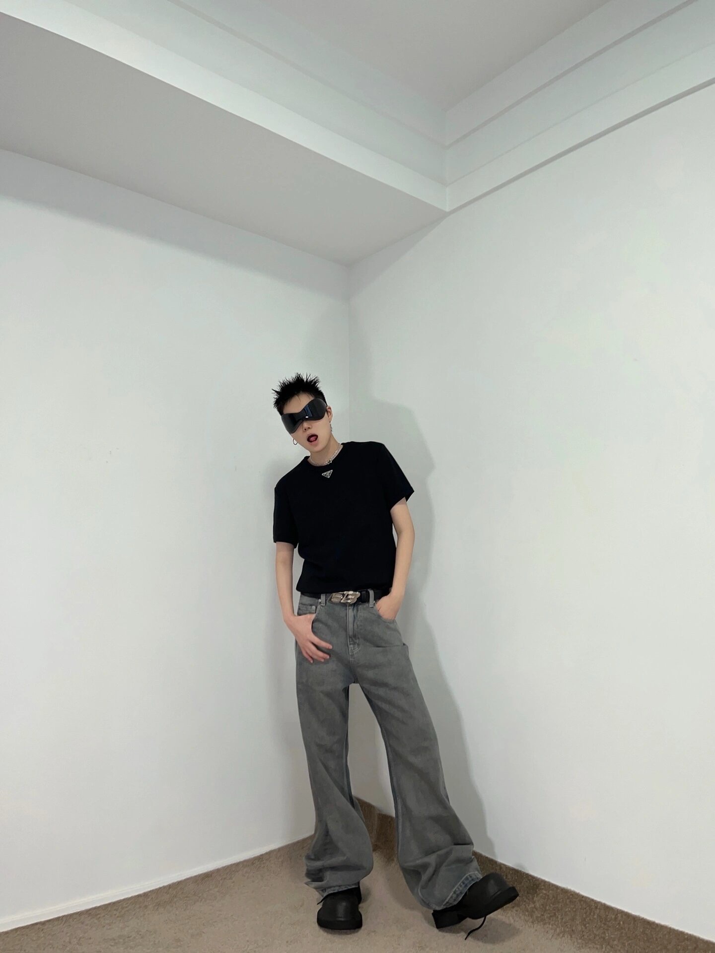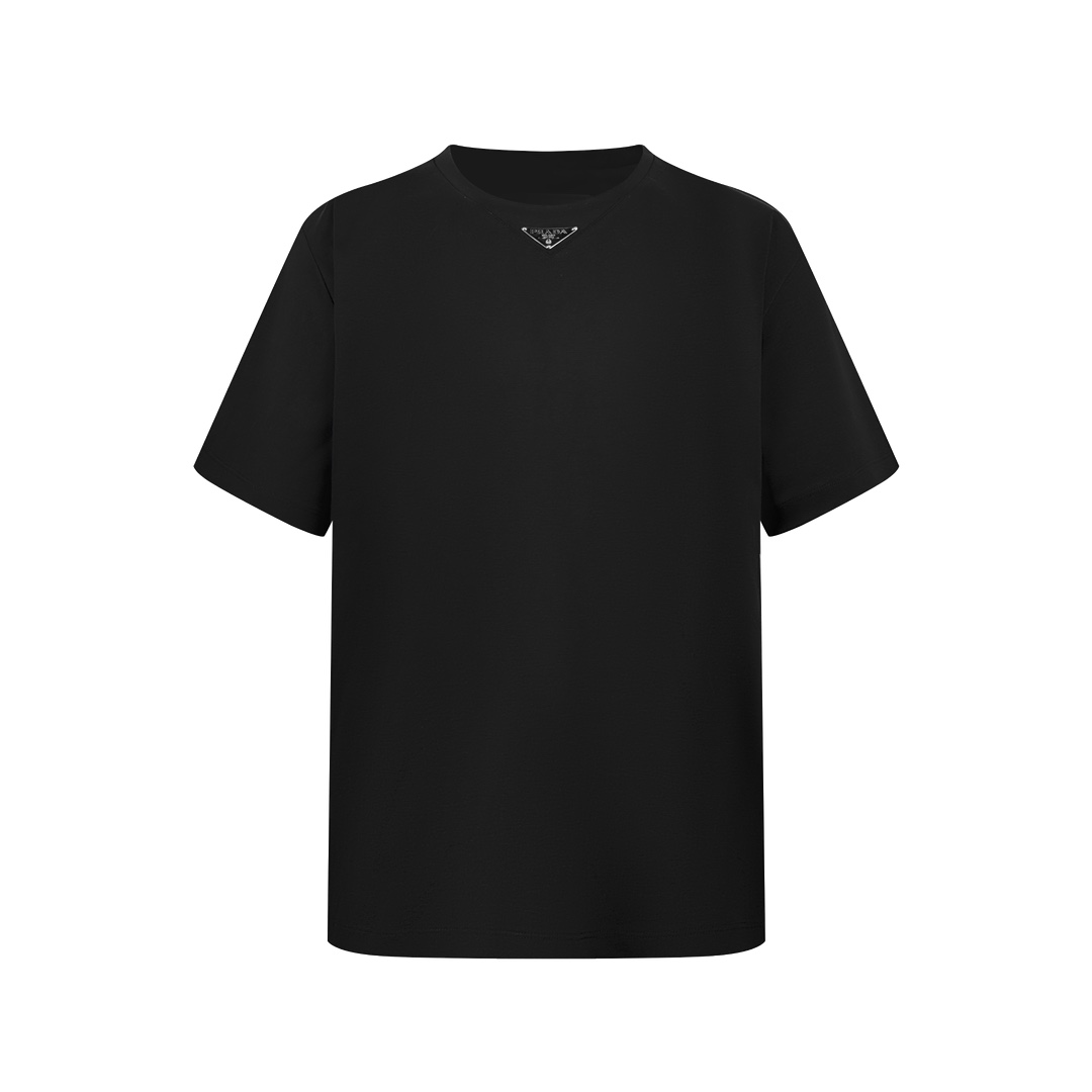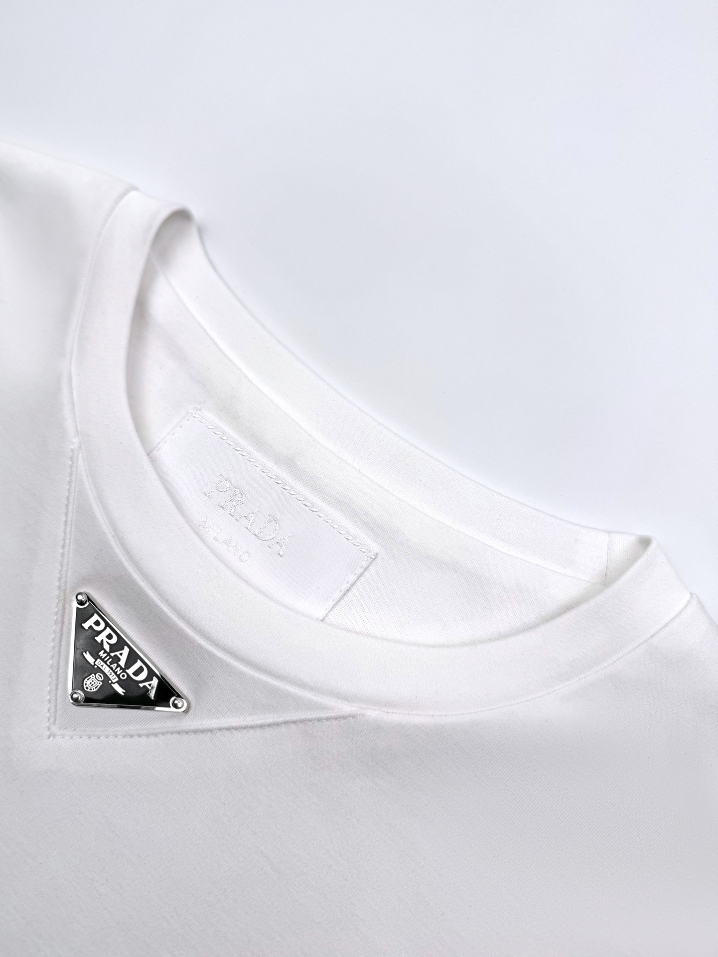 之前也卖过这种纯色脖子上三角标的T恤,那时候的版型是修身的版型